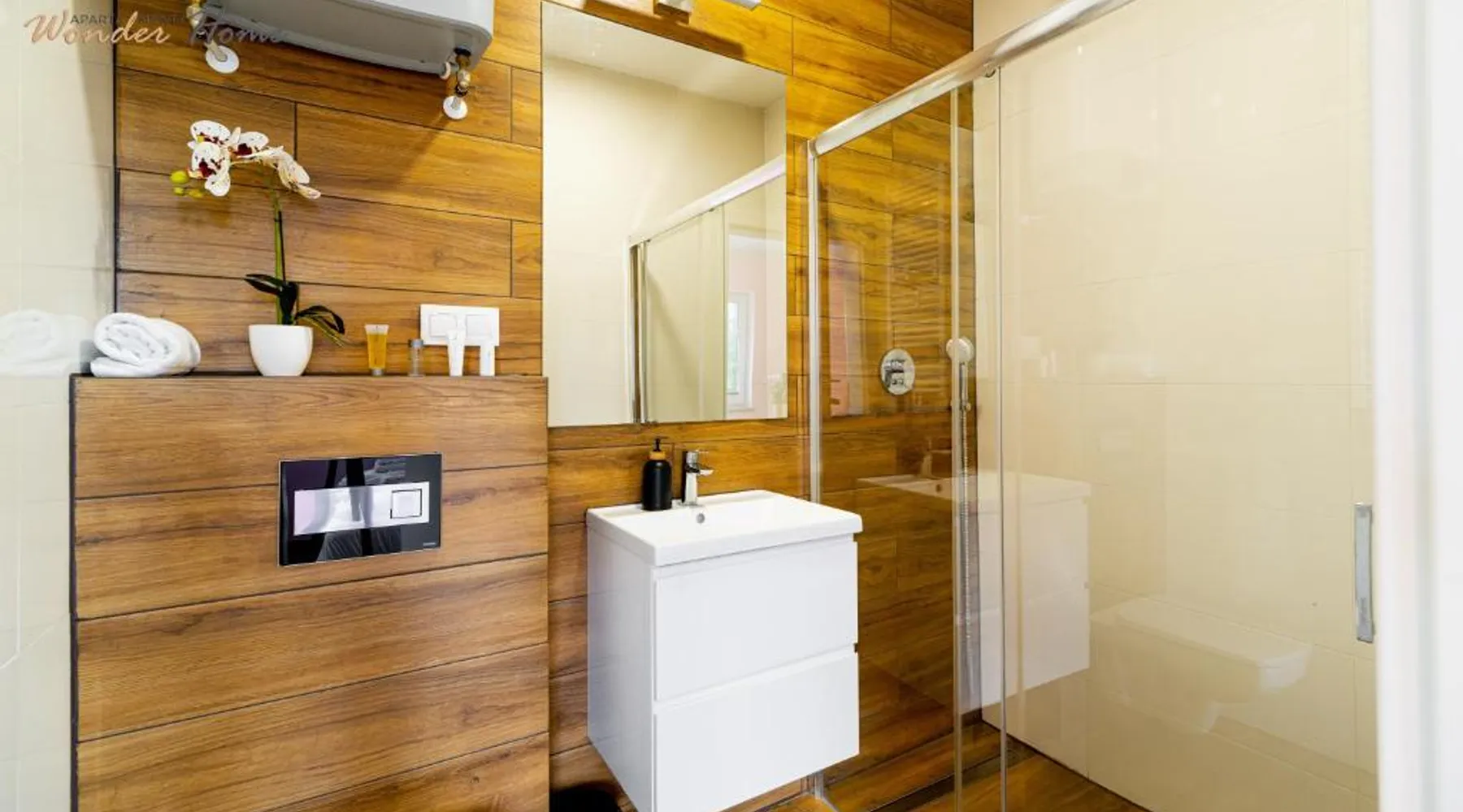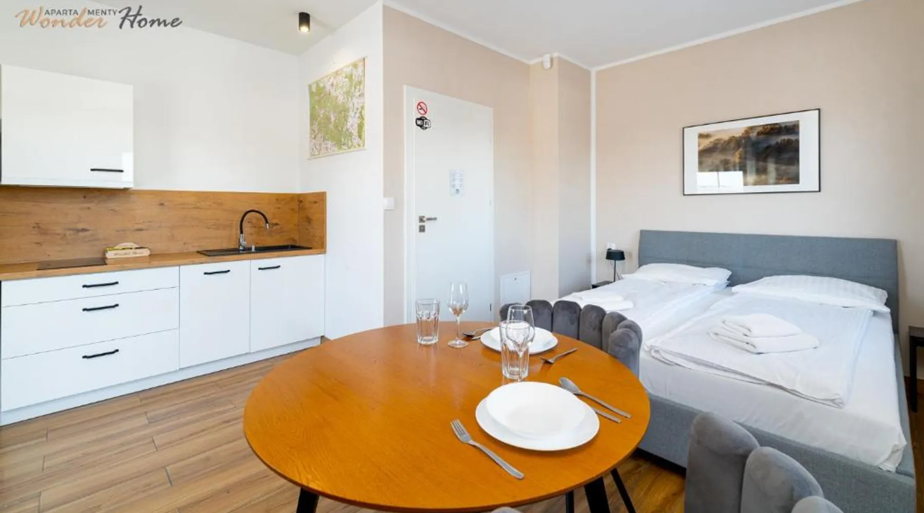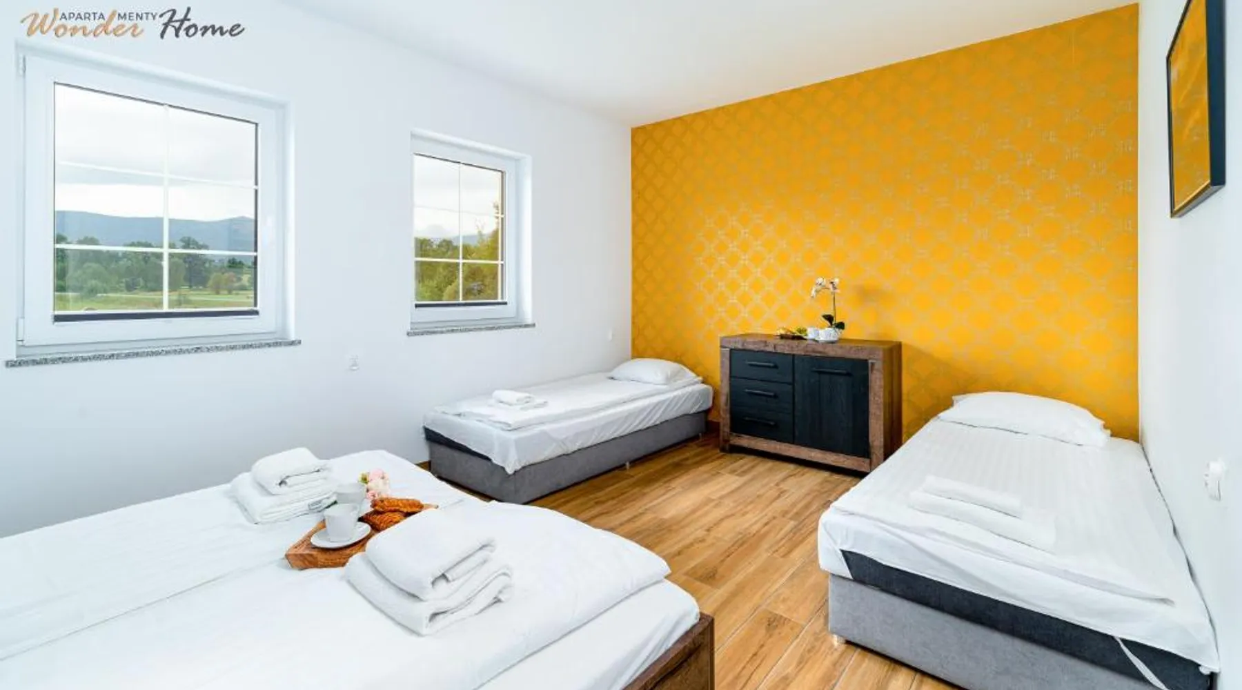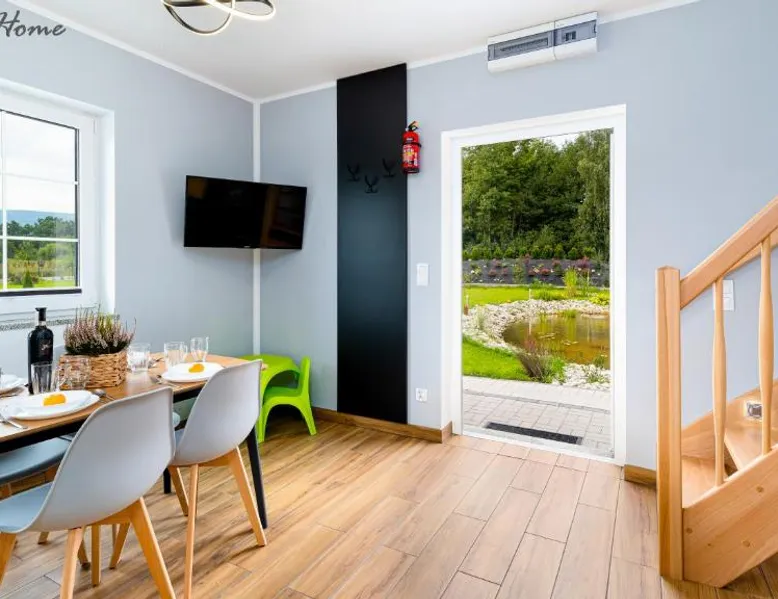 Comfortable Accommodations: Wonder Home - Apartamenty Halo Karkonosze z ogrodem, sezonowym basenem, placem zabaw i widokiem na Śnieżkę offers comfortable apartments in Mysłakowice. Each unit features a kitchenette, private bathroom, dining area, and free WiFi. Leisure Facilities: Guests can enjoy a swimming pool with a view, sun terrace, and garden. Additional amenities include an outdoor seating area, picnic area, family rooms, and a children's playground. Free on-site private parking is available. Local Attractions: Located 65 mi from Copernicus Wrocław Airport, the property is near Western City (6.2 mi), Wang Church (6.8 mi), and Dinopark (16 mi). Other attractions include Szklarska Poreba Bus Station and Szklarki Waterfall, each 18 mi away. Guest Satisfaction: Highly rated for its garden, children's playground, and room cleanliness, Wonder Home ensures a pleasant stay for all visitors. This apartment consists of 1 living room, 2 separate bedrooms and 1 bathroom with a shower and free toiletries. The well-fitted kitchenette features a stovetop, a refrigerator, a dishwasher and kitchenware. Featuring a terrace with garden views, this apartment also provides a private entrance and a flat-screen TV. The unit offers 3 beds.