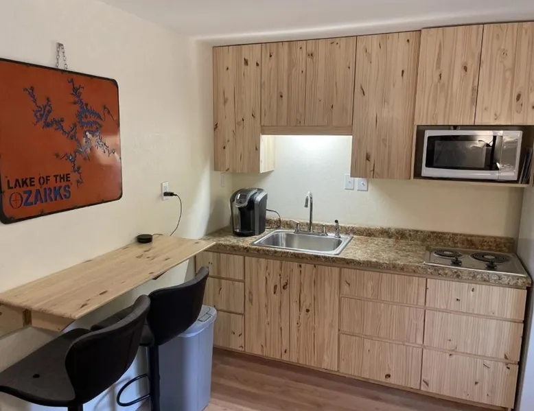 Spacious Accommodations: Loft in Gravois Mills offers a spacious apartment with two bedrooms and a private entrance. The property includes a fully equipped kitchen, balcony with lake views, and a dining area. Modern Amenities: Guests enjoy free WiFi in public areas, air-conditioning, and a work desk. The apartment features a kitchenette, coffee machine, microwave, and a TV. Free on-site private parking is available. Outdoor Spaces: A patio and outdoor dining area provide relaxing spaces. The balcony offers a perfect spot to unwind and take in the scenic views. Convenient Location: Waynesville-St. Robert Regional Airport is 78 mi away. The property is pet friendly, welcoming guests with their furry companions. Guests will find a stovetop, a refrigerator, kitchenware and a microwave in the well-equipped kitchen. The apartment also has a barbecue. The spacious air-conditioned apartment offers a flat-screen TV, a private entrance, a coffee machine, a seating area as well as lake views. The unit offers 2 beds.
