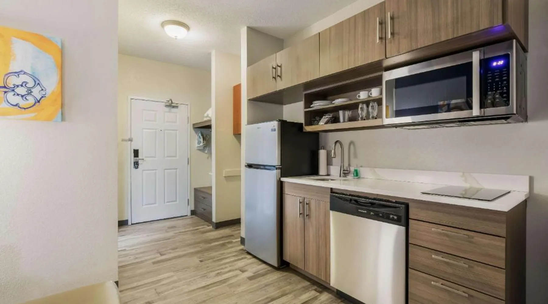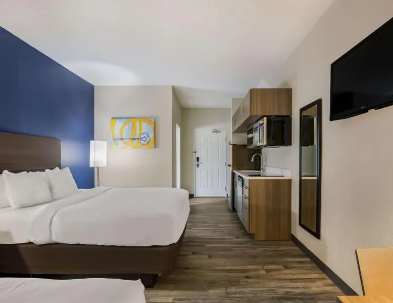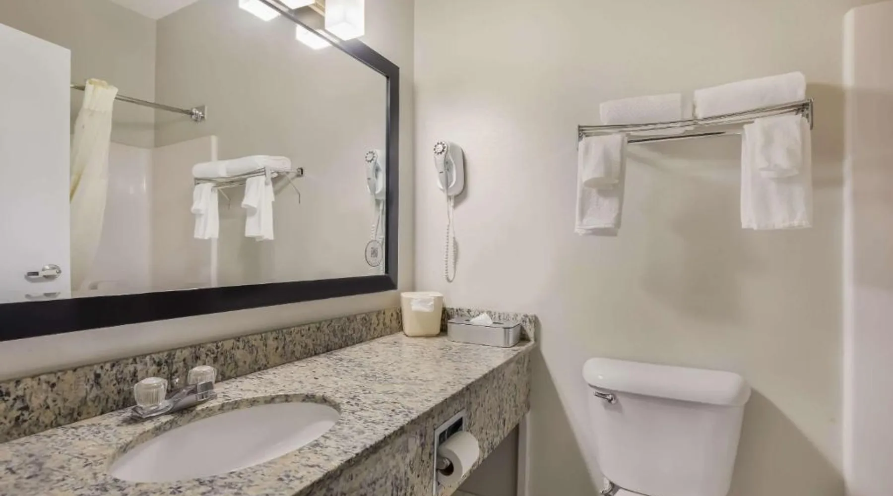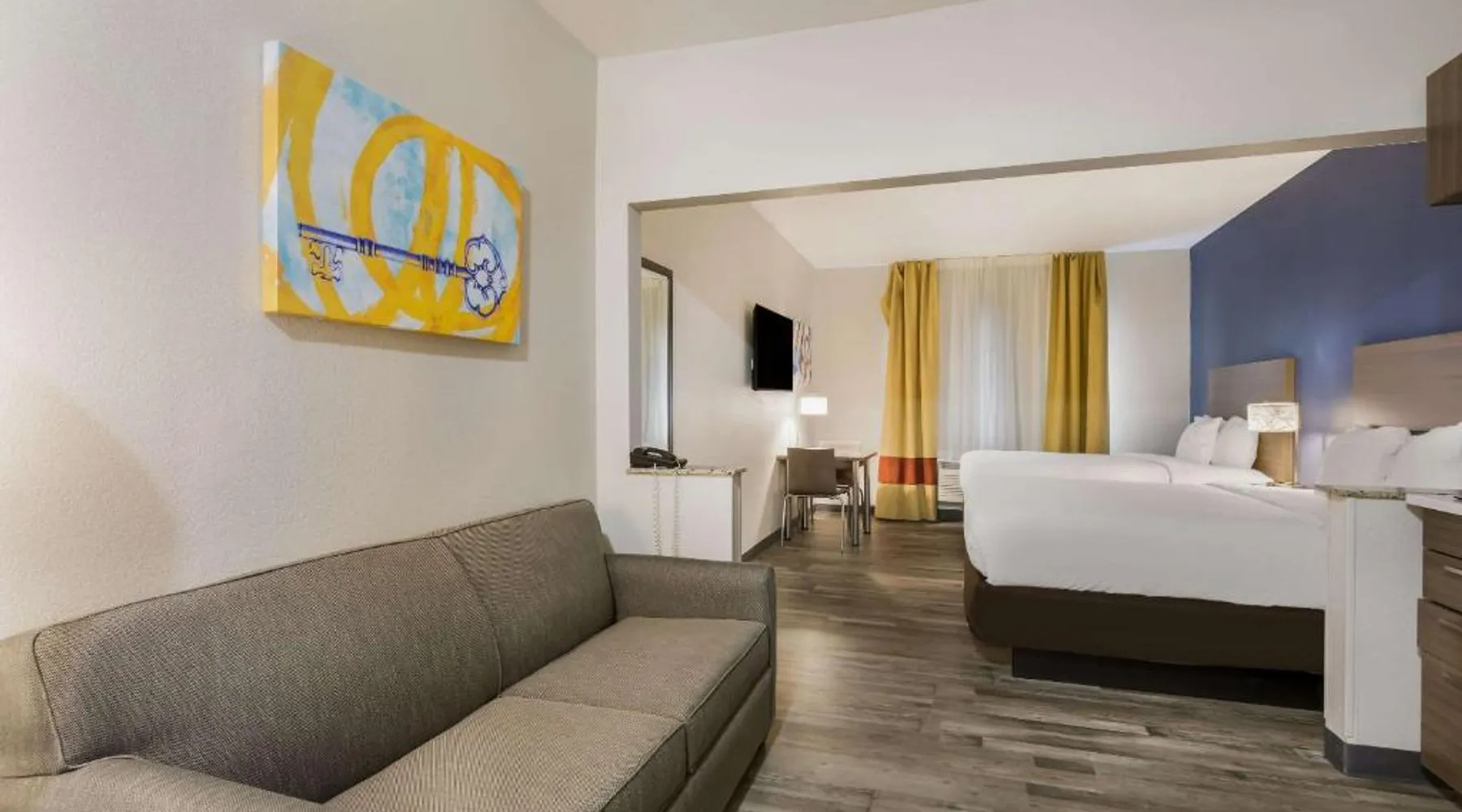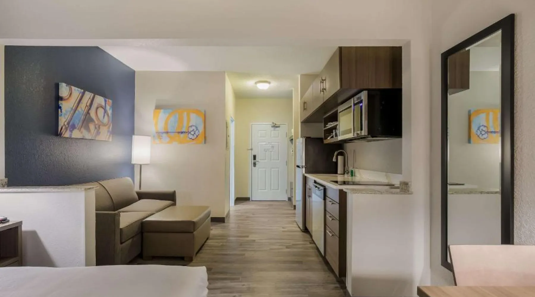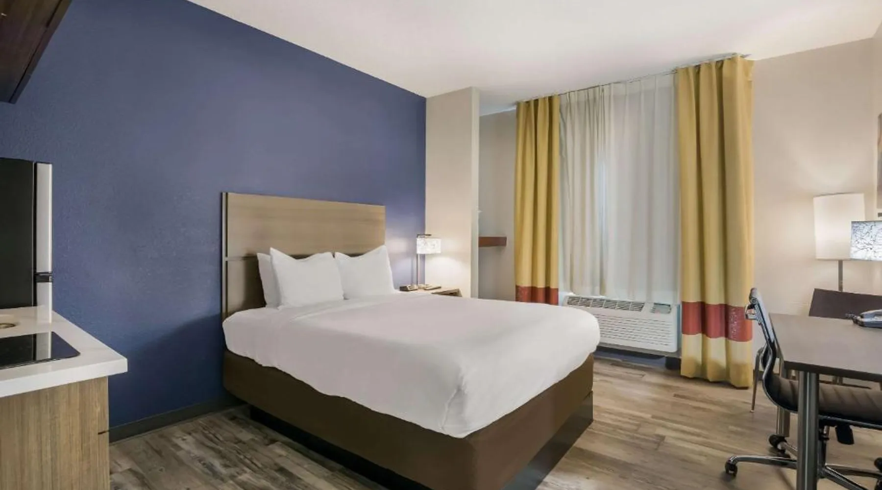 Comfortable Accommodations: MainStay Suites Joliet I-80 in Joliet offers air-conditioned rooms with private bathrooms, kitchenettes, and free WiFi. Each room includes a dining table, sofa bed, and TV. Convenient Facilities: Guests benefit from a elevator, 24-hour front desk, minimarket, and express check-in and check-out services. Free on-site private parking is available. Local Attractions: The hotel is 34 mi from Midway International Airport and near attractions such as Joliet Area Historical Museum (3.1 mi), Chicagoland Speedway (6.8 mi), and Ruffled Feathers Golf Course (16 mi). In the well-equipped kitchenette, guests will find a stovetop, a refrigerator, a dishwasher and kitchenware. This air-conditioned suite is consisted of of a flat-screen TV with cable channels and a private bathroom.