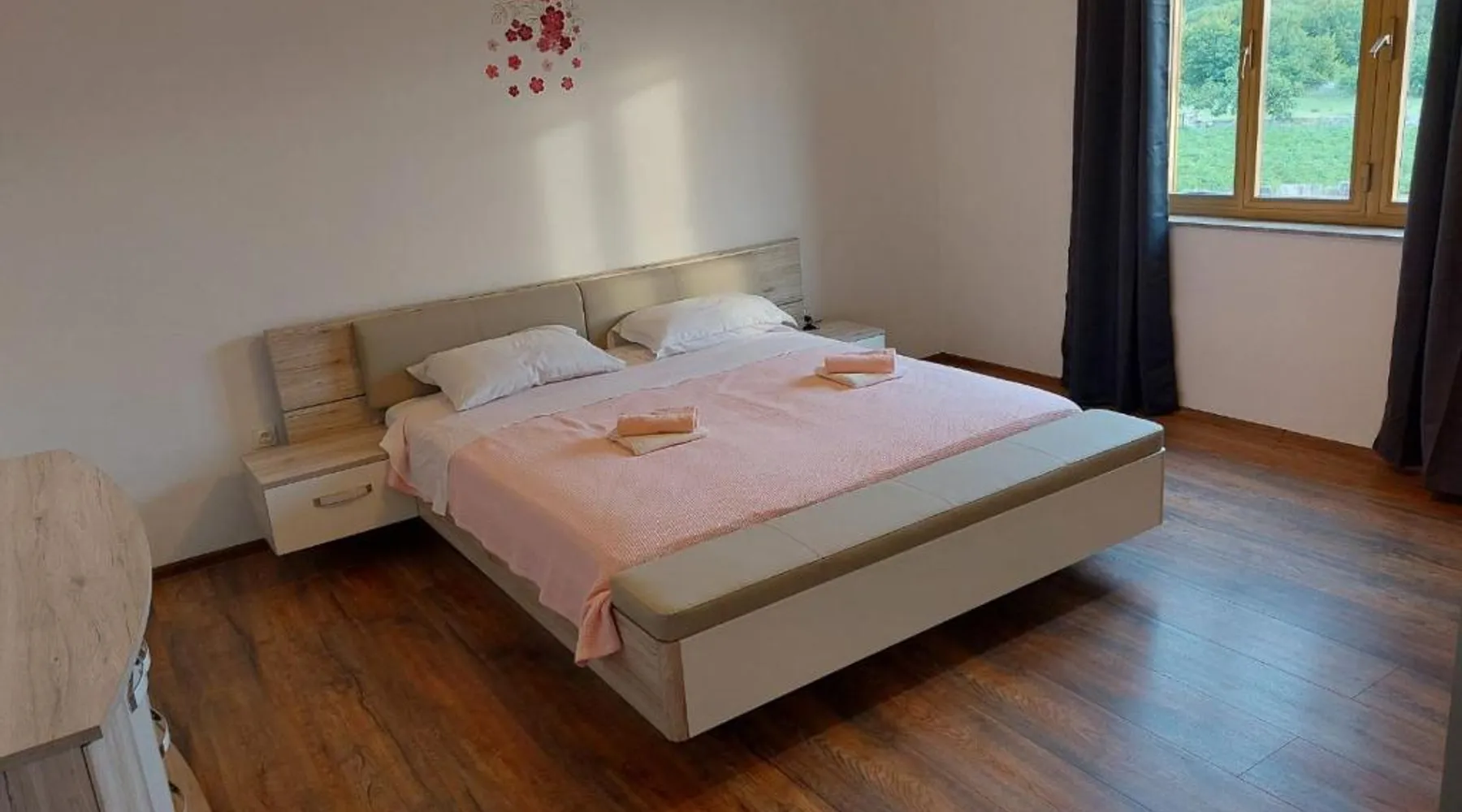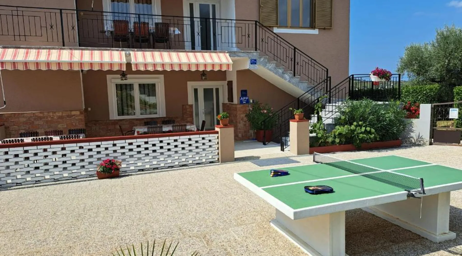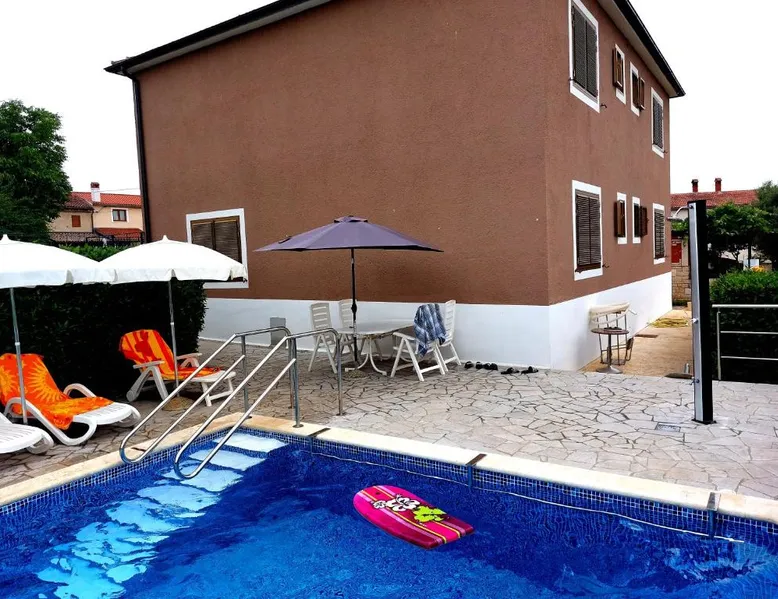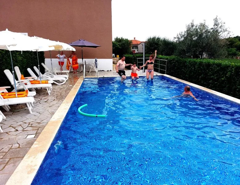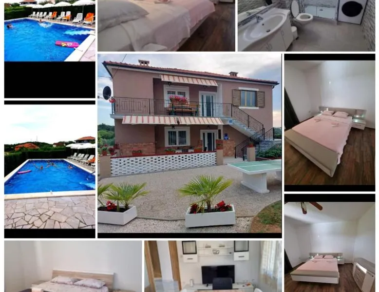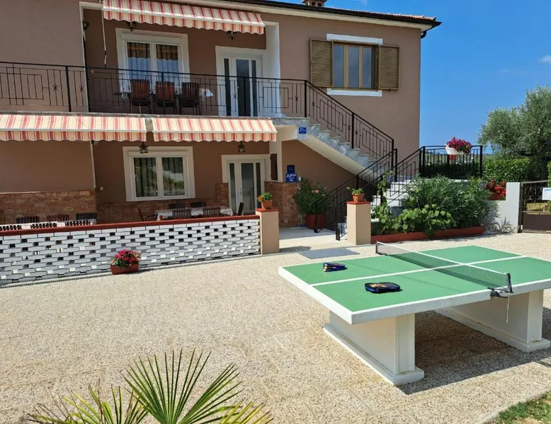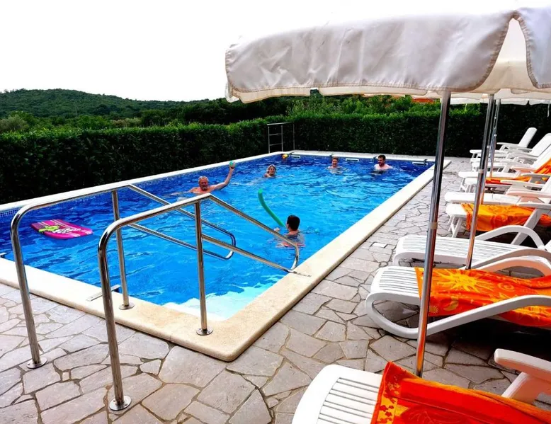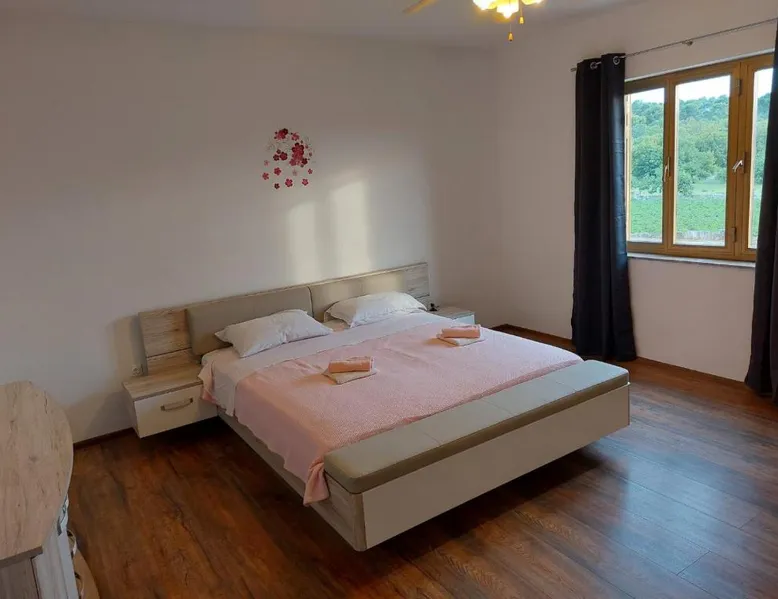 Comfortable Accommodations: Apartments Bakša in Kanfanar offers a sun terrace, garden, seasonal outdoor swimming pool, and free WiFi. Private check-in and check-out services ensure a smooth arrival and departure. Leisure Facilities: Guests can enjoy an outdoor fireplace, waterpark, outdoor play area, pool bar, and outdoor seating. Additional amenities include a children's playground, barbecue facilities, and free on-site private parking. Local Attractions: Located 22 mi from Pula Airport, the property is near attractions such as Cathedral St. Eufemia Rovinj (7.5 mi), Dvigrad Castle (6.8 mi), and Aquapark Istralandia (25 mi). Walking tours are available. Guest Satisfaction: Highly rated by guests, Apartments Bakša is praised for its friendly host. This apartment features a pool with a view. Boasting a private entrance, this air-conditioned apartment features 1 living room, 3 separate bedrooms and 2 bathrooms with a shower and a hairdryer. Guests will find a stovetop, a refrigerator, a dishwasher and kitchenware in the well-fitted kitchen. The apartment also comes with a barbecue. The spacious apartment features a washing machine, a tea and coffee maker, a seating area as well as a terrace with garden views. The unit has 4 beds.