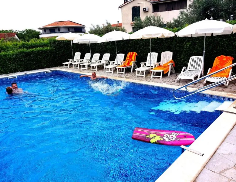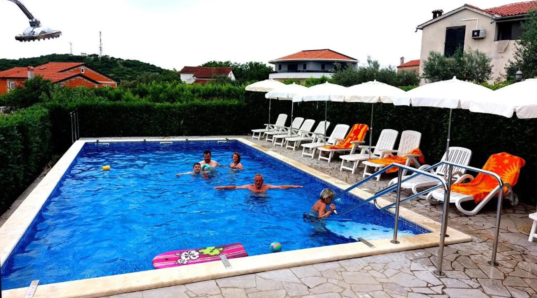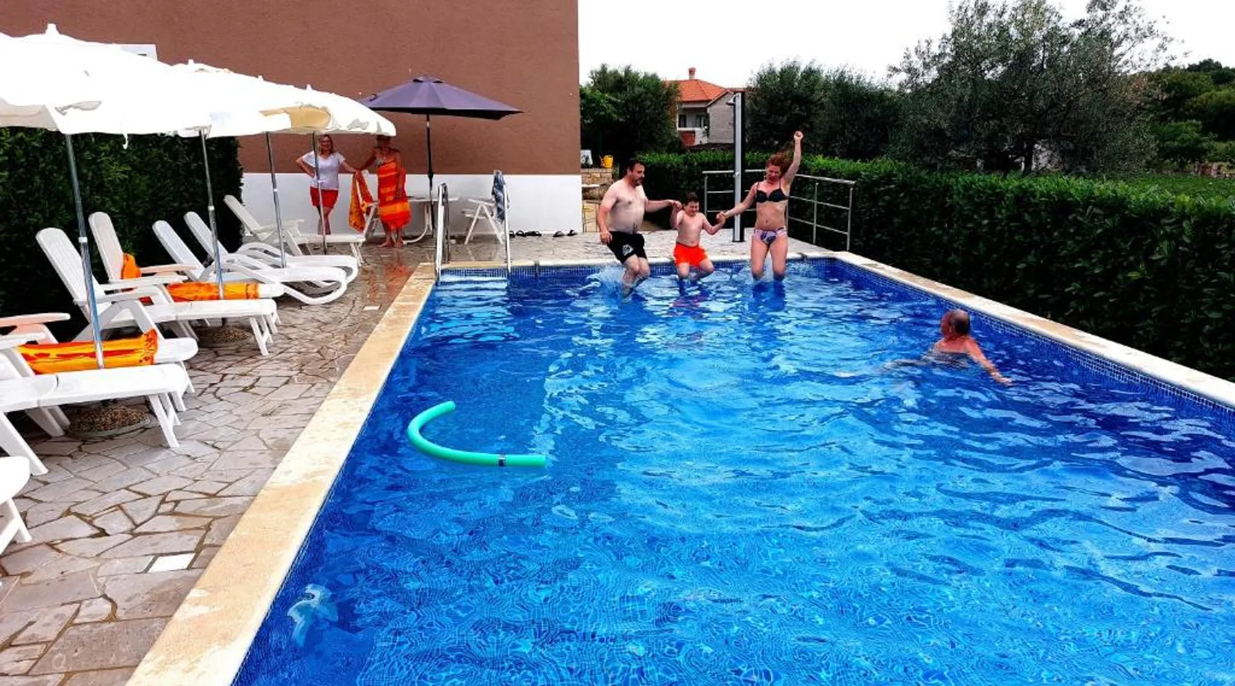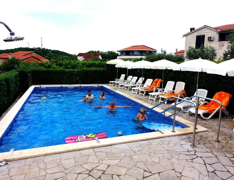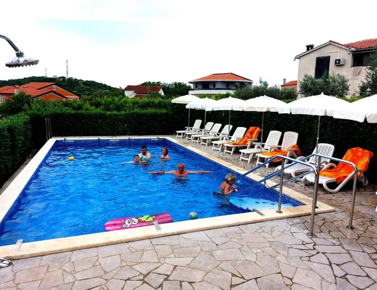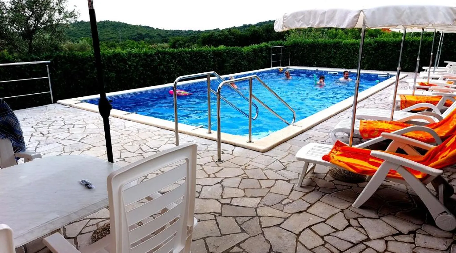 Comfortable Accommodations: Apartments Bakša in Kanfanar offers a sun terrace, garden, seasonal outdoor swimming pool, and free WiFi. Private check-in and check-out services ensure a smooth arrival and departure. Leisure Facilities: Guests can enjoy an outdoor fireplace, waterpark, outdoor play area, pool bar, and outdoor seating. Additional amenities include a children's playground, barbecue facilities, and free on-site private parking. Local Attractions: Located 22 mi from Pula Airport, the property is near attractions such as Cathedral St. Eufemia Rovinj (7.5 mi), Dvigrad Castle (6.8 mi), and Aquapark Istralandia (25 mi). Walking tours are available. Guest Satisfaction: Highly rated by guests, Apartments Bakša is praised for its friendly host. This apartment features a pool with a view. Boasting a private entrance, this air-conditioned apartment features 1 living room, 3 separate bedrooms and 2 bathrooms with a shower and a hairdryer. Guests will find a stovetop, a refrigerator, a dishwasher and kitchenware in the well-fitted kitchen. The apartment also comes with a barbecue. The spacious apartment features a washing machine, a tea and coffee maker, a seating area as well as a terrace with garden views. The unit has 4 beds.