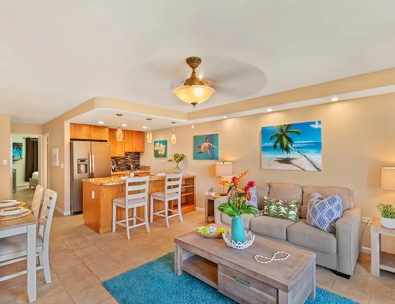 Napili Ridge A2 Updated Napili 1Bedroom Condo Close to Beaches and Restaurants. Amazing Location for the Chill Adventurer Away From Tourist Crowds. Relax and Slow Down with Locals The space FREE daily activities included with your stay value up to $570! Complimentary admission, every day of your stay*: Whale Watch (seasonal), Dinner Sunset Sail, Snorkel Sail, Alpaca Farm Tour, Pineapple Farm Tour, and All Day Electric Bike Rental. (W1) *One ticket per activity per day. Additional details provided after confirmed booking. Amazing value vacation location in West Maui! Close to world class beaches, snorkeling and restaurants. Napili Ridge A2 is a spacious one bedroom condo located in a two story low rise complex. Soak up the sun at the swimming pool and BBQ area or take a short stroll down to Napili Bay. Napili Ridge is a great home base to come home to after a long day of adventures. Condo Highlights: -1 Bedroom, 1 Bathroom, Sleeps 4 guests -No AC in condo -Ceiling fans throughout -King size bed in bedroom -Sleeper-sofa in living room -Open concept main living space -Smart TV in living room -Fully equipped kitchen -Dining table for 6 -Furnished patio and lawn area -Full bathroom with step-in shower Napili Ridge is a small quiet condo complex located in a rural setting away from the crowds and hustle and bustle of the resort areas and conveniently located by world class beaches, snorkel spots, restaurants and shopping. Live like a local and truly experience the Hawaiian lifestyle! Resort Highlights: • Gated pool and BBQ area • On-site parking included • On-site laundry facility (can pay with mobile app) • Amazing North-West Maui location • Close to Napili, Kapalua, Honolua Bay as well as famous Kaanapali Beach. Walking distance to Napili Bay and Kapalua Bay No Mail Allowed: We are unable to receive USPS mail, including letters and packages at this rental. For medical-related items, please contact our Reservations Team for assistance. Minimum age of primary renter: 25 We provide the following in every unit: -First Aid Kit -High Speed Internet -Linens and towels -Iron and ironing board -Hair dryer -Beach towels, Beach chairs, and Hard sided cooler -Starter Kit: Starter supply of shampoo, conditioner, body wash, lotion, hand soap, dish soap, laundry detergent, dishwasher tabs, toilet paper, paper towels, trash bags *We don’t provide beach umbrellas, toys, or gears, such as snorkeling, due to safety, health, and hygiene risks. BEACHES & CRITTERS: The beach size in Hawaii varies month to month due to weather, heavy surf, strong currents, and tides. Due to Maui’s rural setting, you may experience the occasional rooster, as well as harmless geckos. Geckos are friendly, eat insects, and are considered good luck in Hawaii. Please don’t kill them. Although the HOA schedules regular professional pest control services, pests such as ants, roaches and rodents simply cannot be completely controlled in the tropics. Maui is in a tropical climate. If our guest spot more than the normal expected pests, we always make our best efforts to contact and work with the HOA to minimize your interactions with these pests. Any contact with such pests within or outside the unit does not constitute a breach of this Agreement or give Guest any right to any refund or rental adjustment. **We make no guarantee that properties adjacent to the Unit will be free from disturbances, including but not limited to noise or inconvenience from construction, traffic or other guests or neighbors. Any such disturbance shall not constitute a breach of this Agreement or give Guest any right to any refund or rental adjustment. By booking your stay with us, you accept that Host is not liable for any inconveniences arising from any temporary defect or stoppage in supply of water, electricity, air conditioning or plumbing that is beyond their control. Host is not liable for any loss or damage to Tenants’ personal property caused by weather conditions, natural disasters, or other events beyond their control. Tenants accept that the cable and internet service at the Rental can be sporadic and unreliable at times, and Tenant shall not be entitled to any refund of the rental fee in the event either of these services are unavailable or not operating properly during Tenants’ stay. Registration Details 430160060002, TA-181-312-5120-01