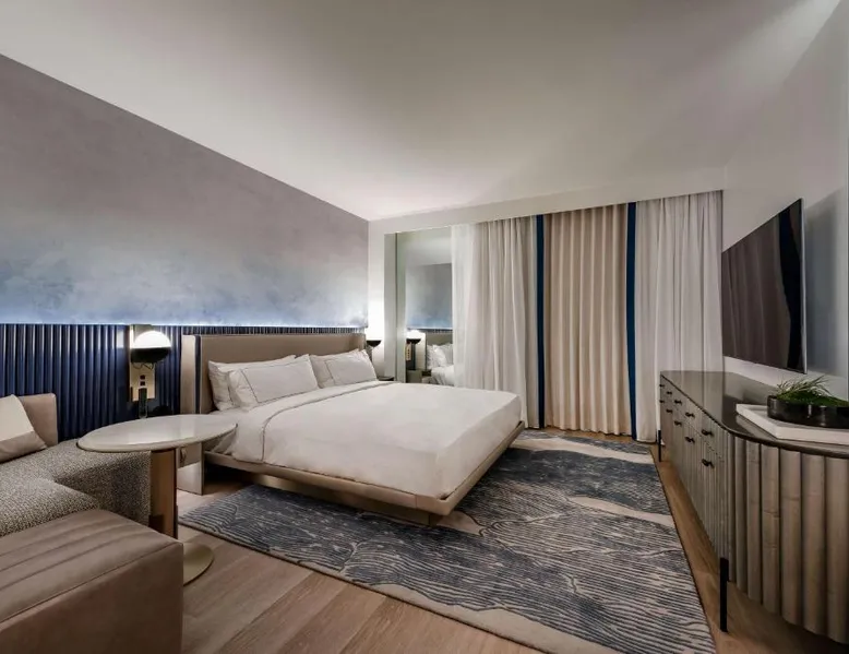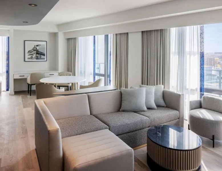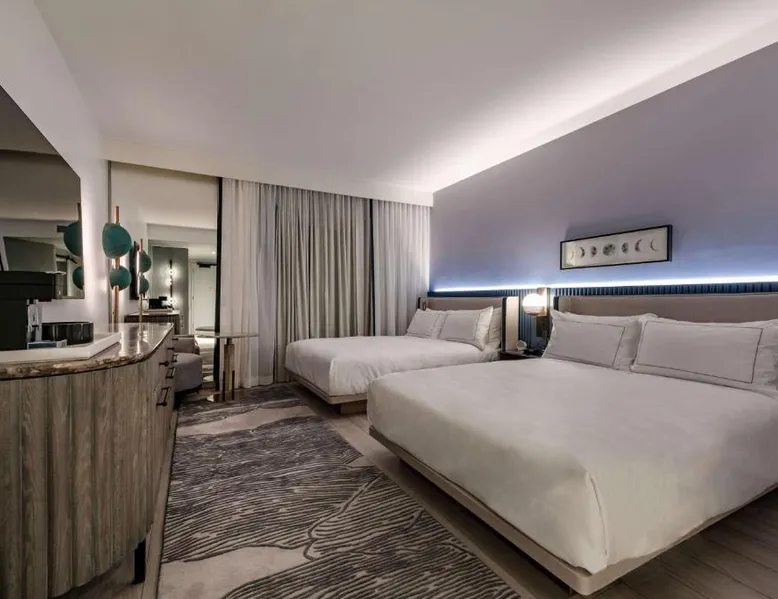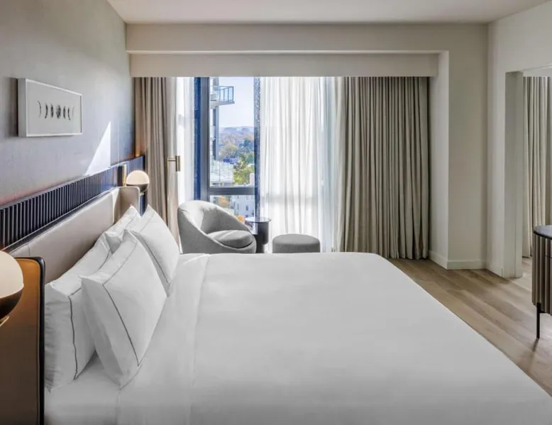 Comfortable Accommodations: Rooms feature air-conditioning, balconies with city views, free WiFi, and modern amenities such as tea and coffee makers, work desks, and flat-screen TVs. Dining Experience: The modern restaurant serves American cuisine with vegetarian, vegan, gluten-free, and dairy-free options. Breakfast includes champagne, local specialties, pancakes, and more. Leisure Facilities: Guests can enjoy a terrace, fitness room, yoga and cycling classes, and free bicycles. Additional services include massage, room service, and paid on-site private parking. Prime Location: Located 8.1 mi from Ronald Reagan Washington National Airport, the hotel is near attractions like the National Air & Space Museum (1.2 mi) and Washington Union Station (16-minute walk). An ice-skating rink is also nearby. The spacious air-conditioned double room provides a flat-screen TV with cable channels, a tea and coffee maker, a safe deposit box and heating. The unit offers 1 bed.