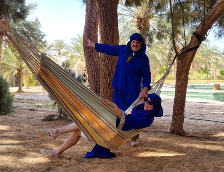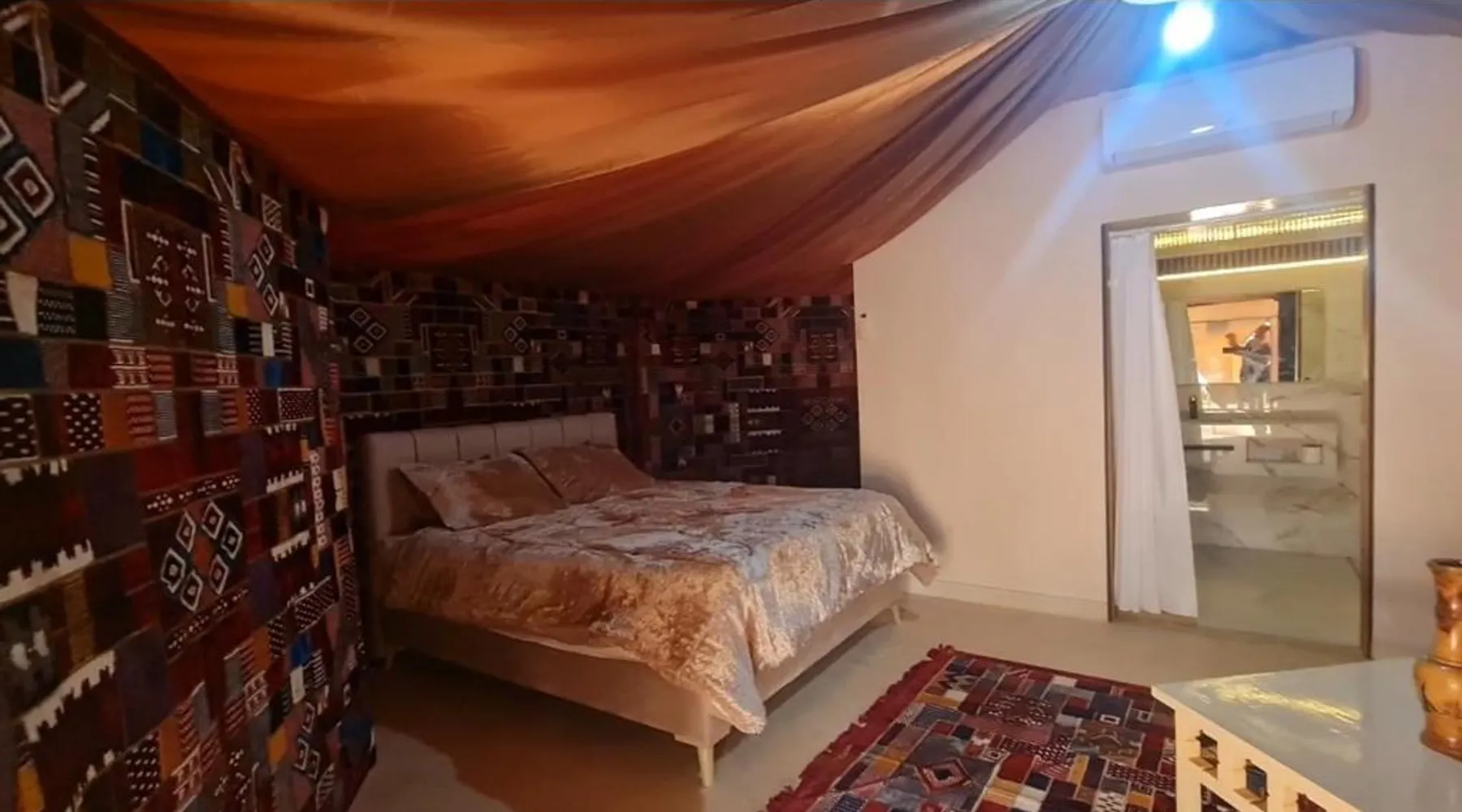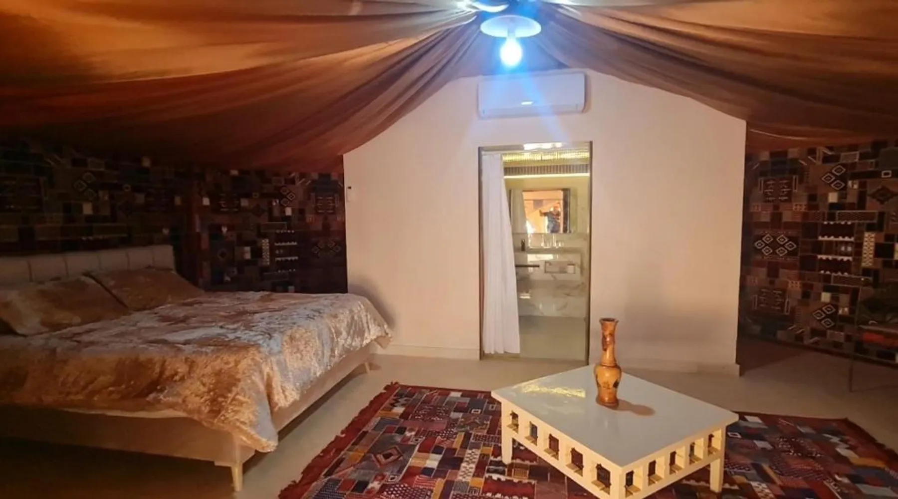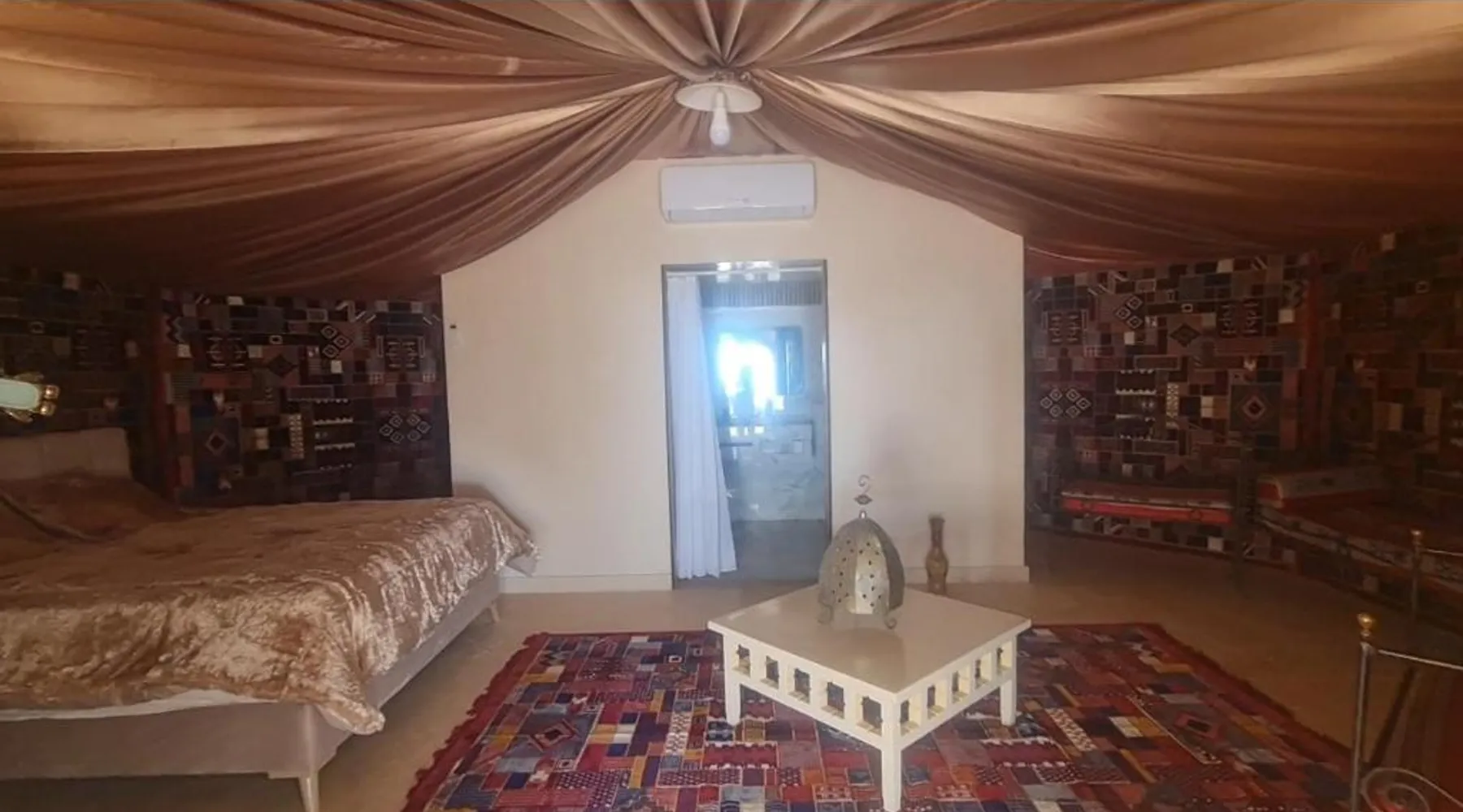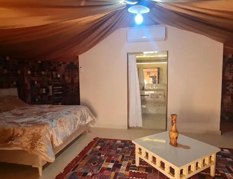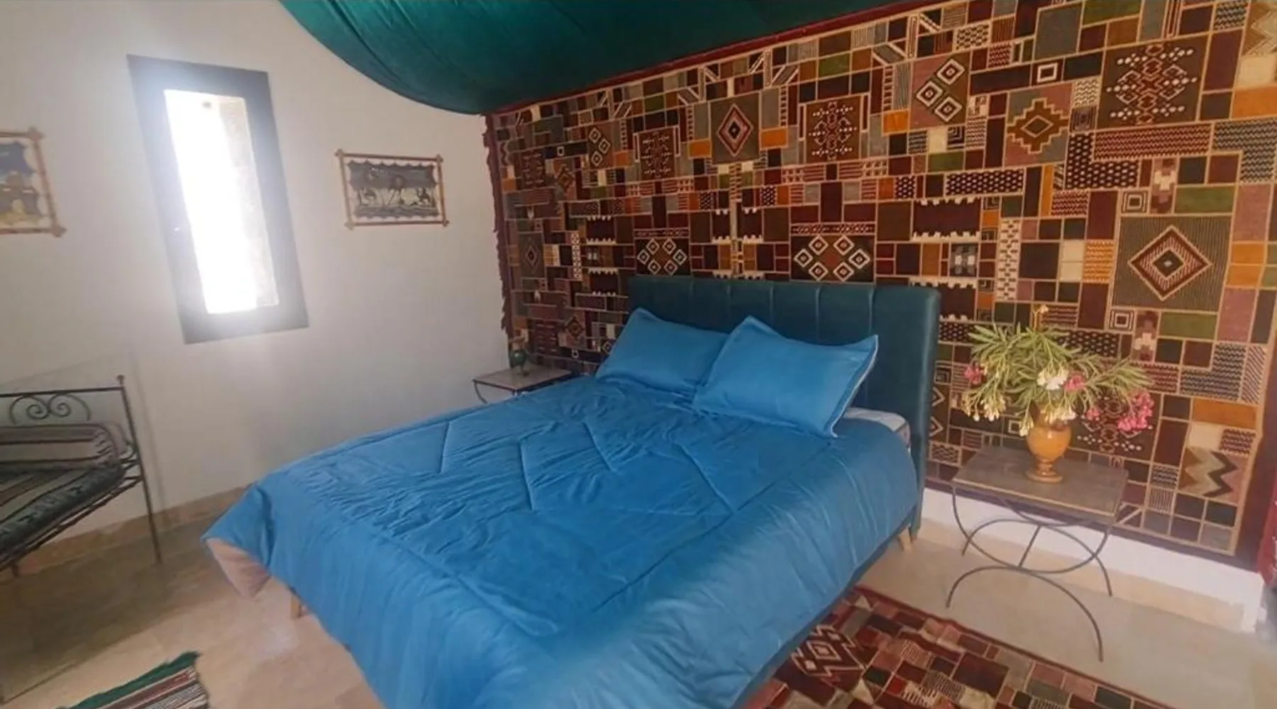 Comfortable Accommodations: Hotel Pansy in Ksar Ghilane offers family rooms with air-conditioning, private bathrooms, and garden views. Each room includes a patio, outdoor furniture, and free toiletries. Exceptional Facilities: Guests can enjoy a sun terrace, garden, restaurant, bar, and a year-round outdoor swimming pool. Additional amenities include a coffee shop, outdoor seating area, picnic area, and bicycle parking. Dining Experience: The restaurant serves local cuisine with halal and vegetarian options. Breakfast includes local specialties, juice, cheese, and fruits. Room service and a buffet are also available. Convenient Services: Private check-in and check-out, a 24-hour front desk, and free on-site private parking enhance the stay. Additional services include a coffee shop, outdoor dining area, and luggage storage. The spacious double room provides air conditioning, a private entrance, as well as a private bathroom featuring a walk-in shower and a bath. The double room features a seating area, a patio and garden views. The unit offers 3 beds.