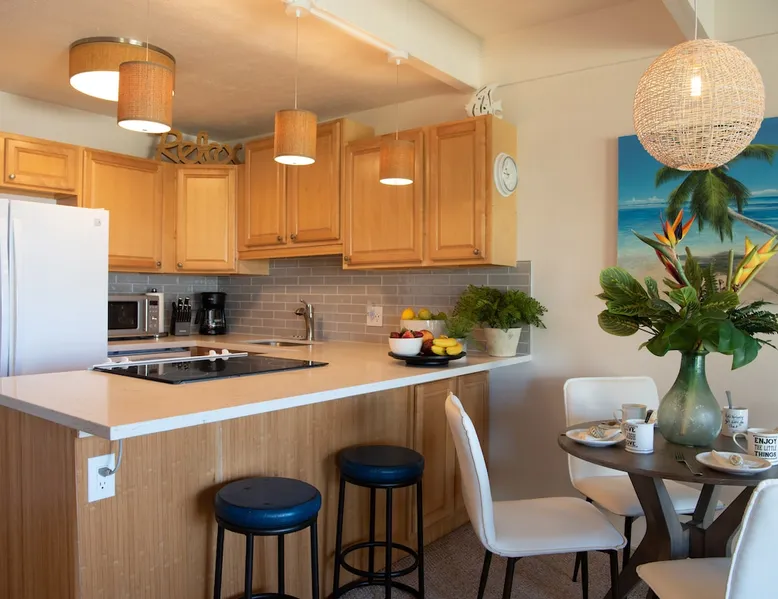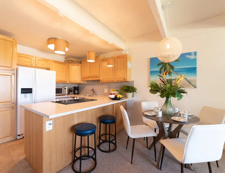 Shores of Maui109 Remodeled 1Bedroom Condo with Beautiful Ocean Views, Pool and Hot Tub, and Across Street From Beach with Great Surfing and Standup Paddling for All Levels The space FREE daily activities included with your stay value up to $554! Complimentary admission, every day of your stay*: Whale Watching (seasonal), Sunset Dinner Cruise, Molokini Snorkel Trip, Alpaca Farm Tour, Pineapple Farm Tour, and Tea Farm Tour. (S1) *One ticket per activity per day. Additional details provided after confirmed booking. Shores of Maui 109 is the perfect location for your next Maui vacation! Located on the south coast of Maui, directly across the street from Cove Park. This convenient central Kihei location is minutes from the sandy beaches, luxury of the Wailea resort area, and walking distance to many more amazing beaches. Spend your day on the beach, or surfing waves at The Cove and return back to the condo to relax on the lanai for sunset with your favorite cocktail and dinner fresh off the poolside grill! Condo Highlights: -1 Bedroom,1 bathroom, Sleeps 4 guests -Split AC in the livingroom and bedroom -Patio with seating for 4 and ocean views -King size bed in bedroom -Sleeper-sofa in living room -Ceiling fans throughout -Smart streaming TV’s in living room and bedroom -Fully equipped kitchen with granite countertops -Indoor dining table for 4, bar seating for 2 -Bathroom with tiled walk-in shower -In-unit washer/dryer -Steps to the pool and hot tub Shores of Maui is a low rise condominium complex on Maui's South shore in the town of Kihei. Close to surfing, beaches, activities, restaurants and shopping and about 20 minutes from the airport. The friendly atmosphere makes Shores of Maui such a wonderful place to spend your vacation, and with BBQ grills by the pool sunset is a very special time of day! Resort Highlights: • Swimming Pool • Hot Tub • 3 Gas BBQ grills • Poolside dining tables and chairs • Tennis courts • On-site parking included • Pedestrian gate to South Kihei Rd. • Across the street from The Cove Beach Park • Surfboard rental shop in walking distance • Convenient central Kihei location No Mail Allowed: We are unable to receive USPS mail, including letters and packages at this rental. For medical-related items, please contact our Reservations Team for assistance. Minimum age of primary renter: 25 We provide the following in every unit: -First Aid Kit -High Speed Internet -Linens and towels -Iron and ironing board -Hair dryer -Beach towels, Beach chairs, and Hard sided cooler -Starter Kit: Starter supply of shampoo, conditioner, body wash, lotion, hand soap, dish soap, laundry detergent, dishwasher tabs, toilet paper, paper towels, trash bags *We don’t provide beach umbrellas, toys, or gears, such as snorkeling, due to safety, health, and hygiene risks. BEACHES & CRITTERS: The beach size in Hawaii varies month to month due to weather, heavy surf, strong currents, and tides. Due to Maui’s rural setting, you may experience the occasional rooster, as well as harmless geckos. Geckos are friendly, eat insects, and are considered good luck in Hawaii. Please don’t kill them. Although the HOA schedules regular professional pest control services, pests such as ants, roaches and rodents simply cannot be completely controlled in the tropics. Maui is in a tropical climate. If our guest spot more than the normal expected pests, we always make our best efforts to contact and work with the HOA to minimize your interactions with these pests. Any contact with such pests within or outside the unit does not constitute a breach of this Agreement or give Guest any right to any refund or rental adjustment. **We make no guarantee that properties adjacent to the Unit will be free from disturbances, including but not limited to noise or inconvenience from construction, traffic or other guests or neighbors. Any such disturbance shall not constitute a breach of this Agreement or give Guest any right to any refund or rental adjustment. By booking your stay with us, you accept that Host is not liable for any inconveniences arising from any temporary defect or stoppage in supply of water, electricity, air conditioning or plumbing that is beyond their control. Host is not liable for any loss or damage to Tenants’ personal property caused by weather conditions, natural disasters, or other events beyond their control. Tenants accept that the cable and internet service at the Rental can be sporadic and unreliable at times, and Tenant shall not be entitled to any refund of the rental fee in the event either of these services are unavailable or not operating properly during Tenants’ stay Registration Details 390170030009, TA-188-754-9952-01