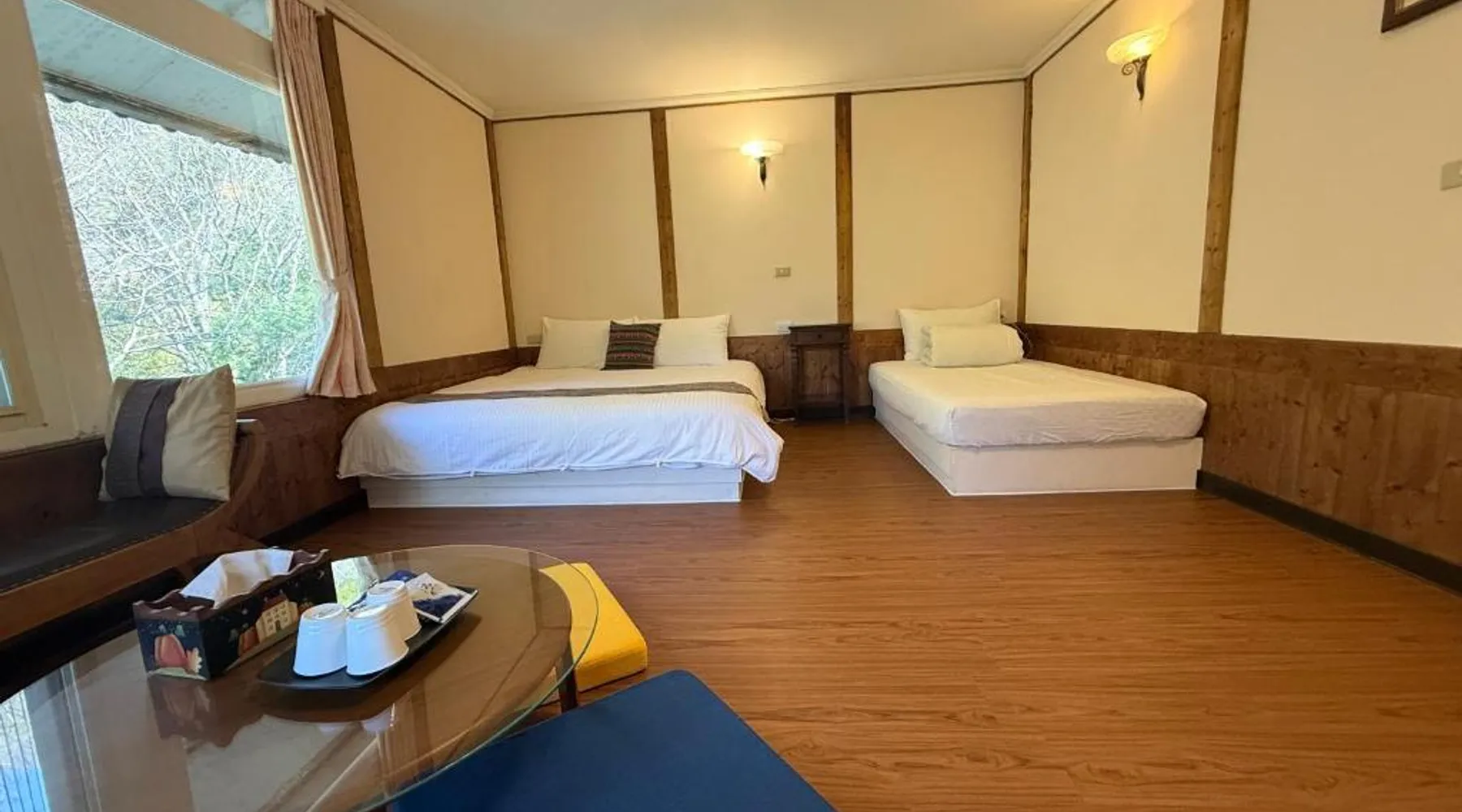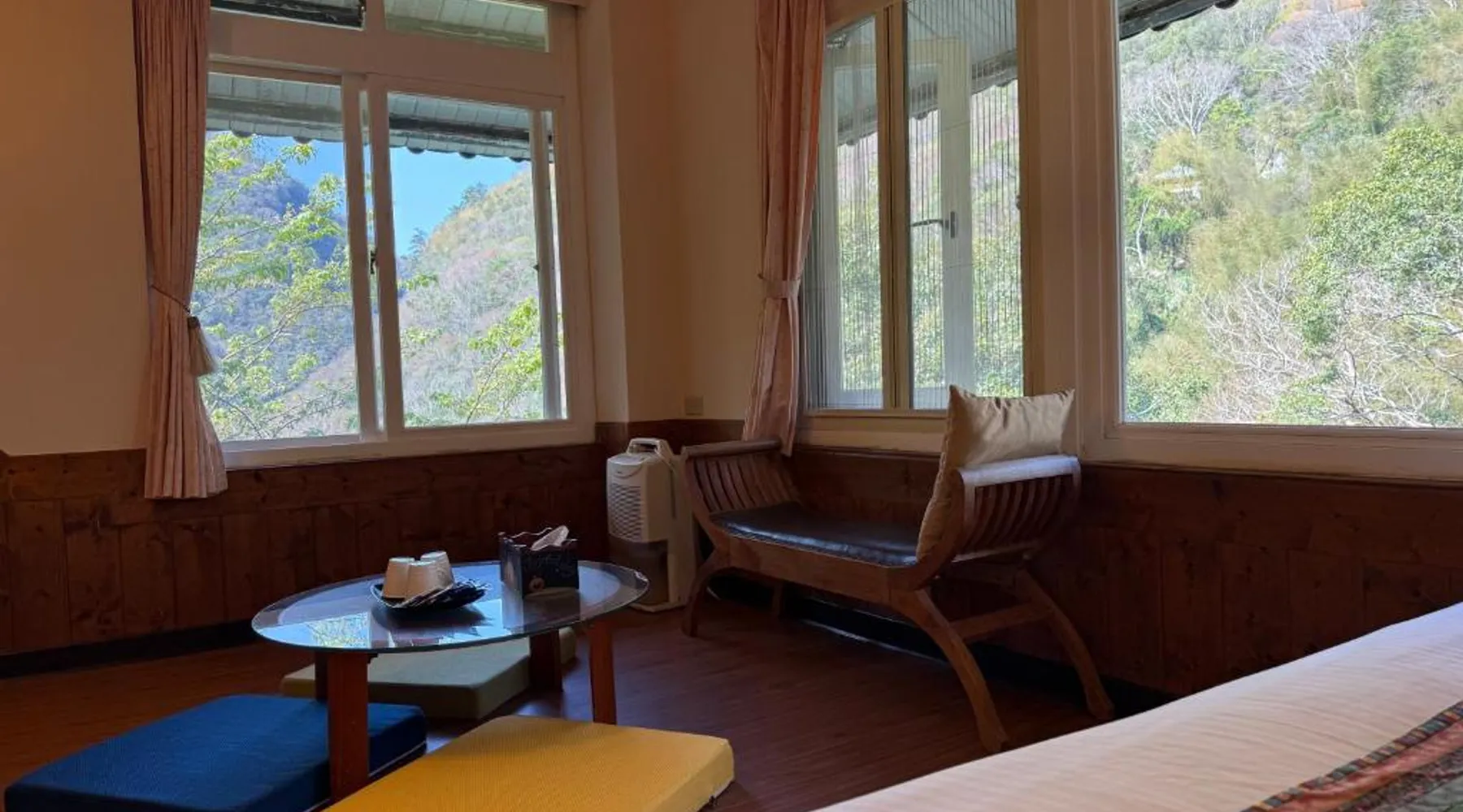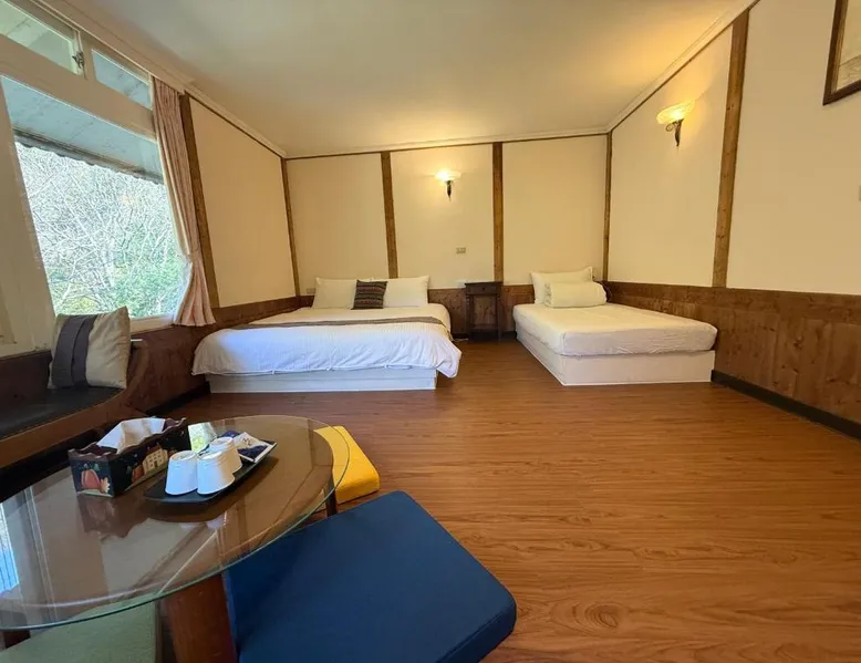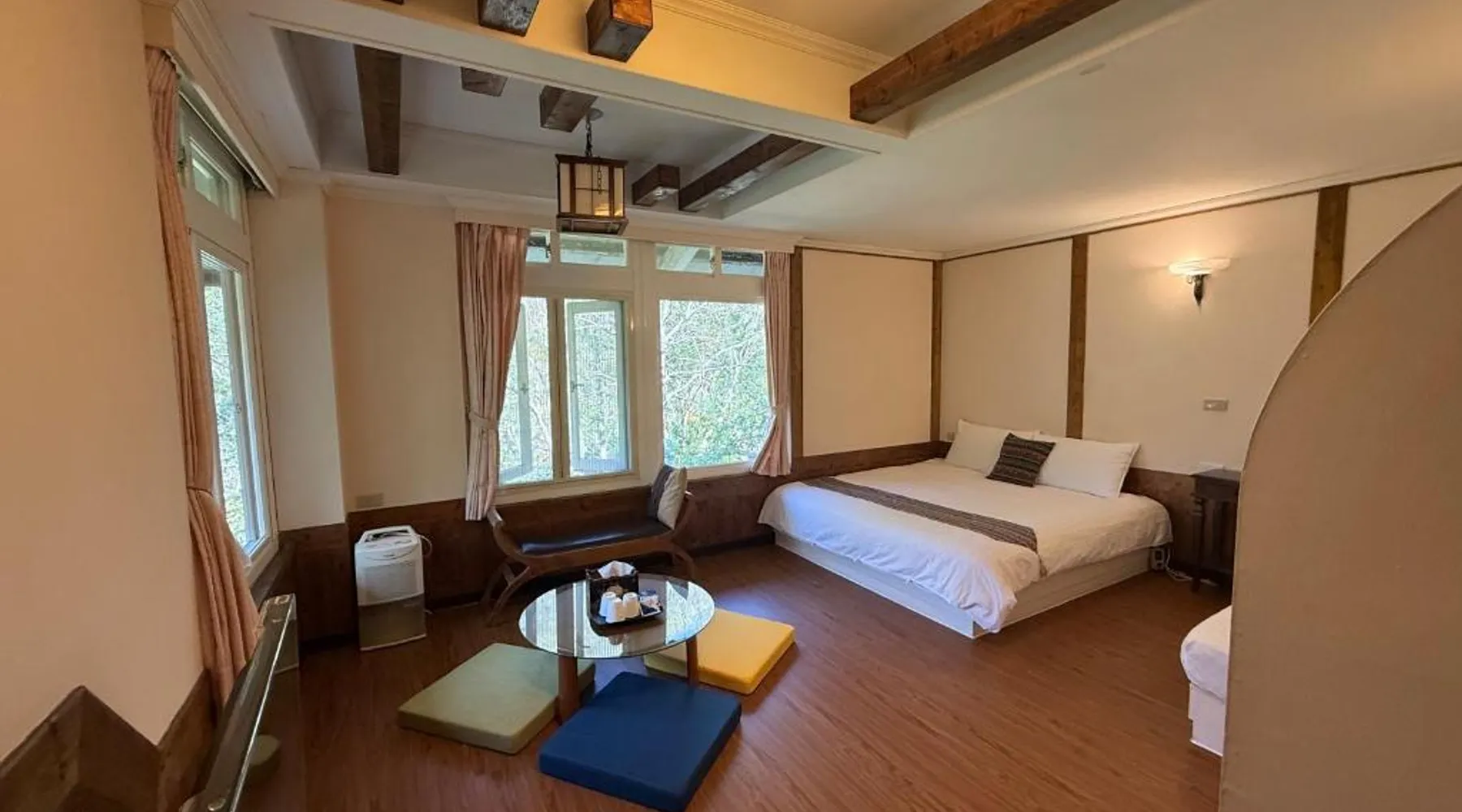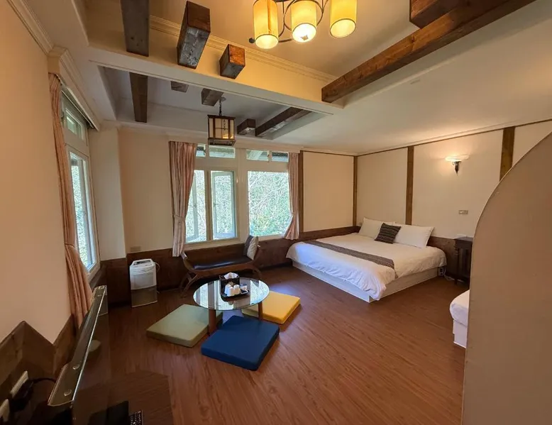 Comfortable Accommodations: 福緣山莊 桃園市民宿004號 in Miaoli offers private bathrooms with garden or mountain views. Each room includes a tea and coffee maker, free toiletries, and a wardrobe. Dining Experience: The modern restaurant serves Asian cuisine with vegetarian and vegan options. Guests can enjoy breakfast with Asian flavors and relax in the lounge or games room. Leisure Facilities: The lodge features a sun terrace, garden, and free WiFi. Additional amenities include a balcony, TV, and parquet floors. Location and Activities: Located 55 mi from Taiwan Taoyuan International Airport, the property is near hiking trails. Guests can enjoy mountain and river views from their rooms. Offering free toiletries, this double room includes a private bathroom with a shower, a hairdryer and slippers. The double room offers a private entrance, a tea and coffee maker, a wardrobe, a TV with cable channels, as well as garden views. The unit offers 1 bed.