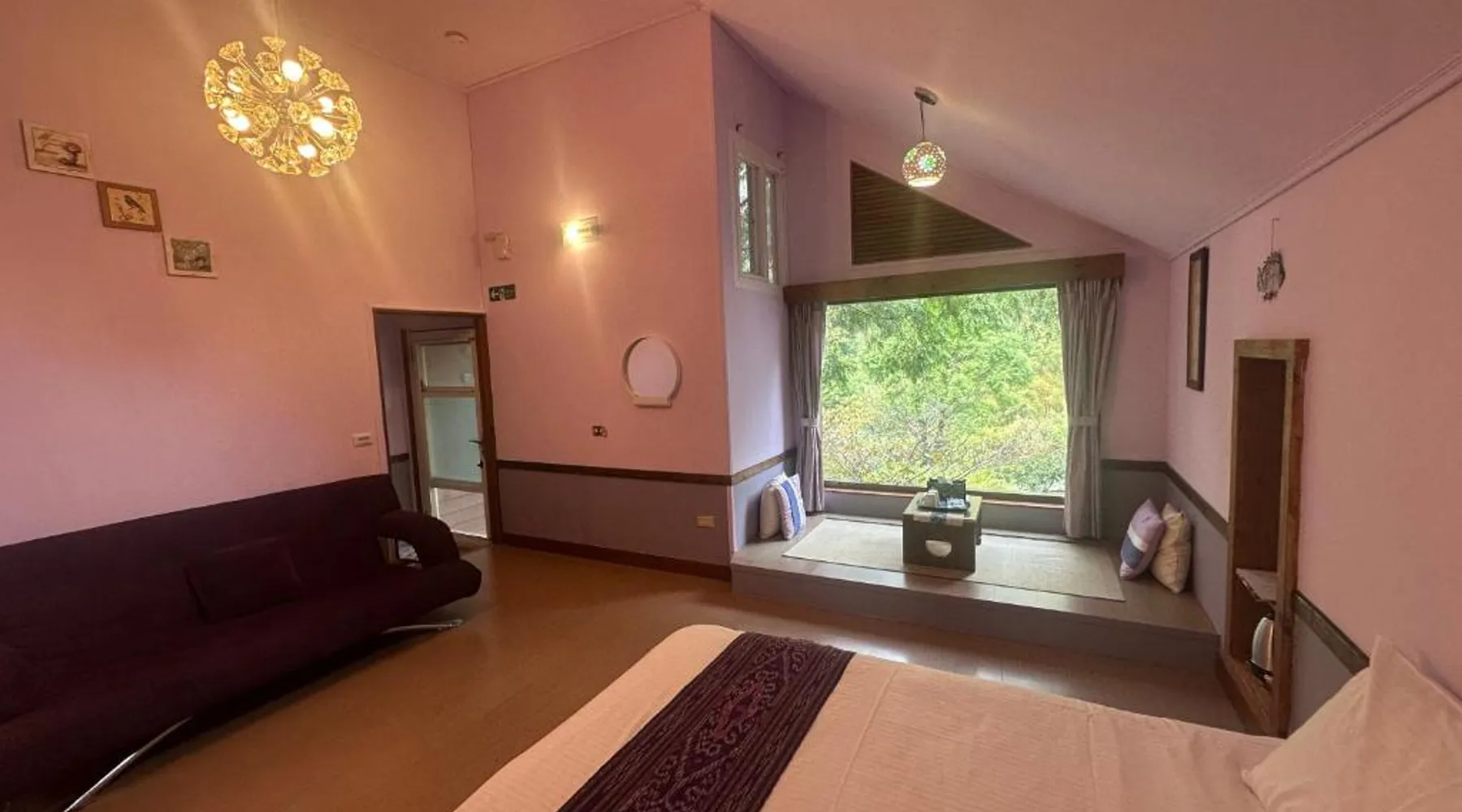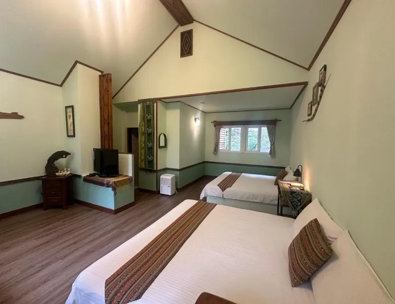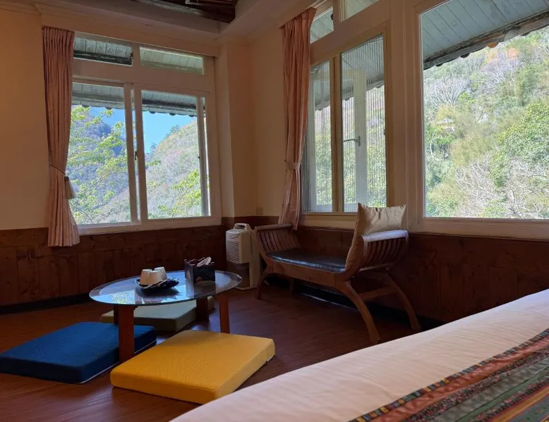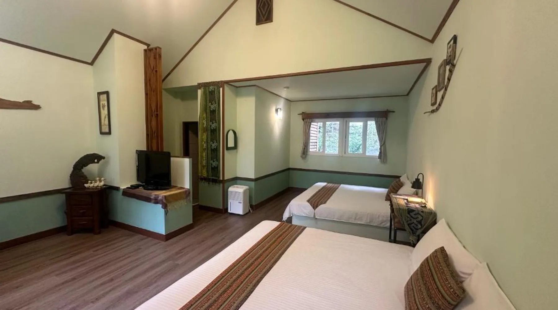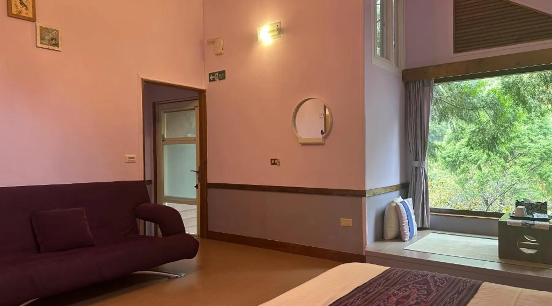 Comfortable Accommodations: 福緣山莊 桃園市民宿004號 in Miaoli offers private bathrooms with garden or mountain views. Each room includes a tea and coffee maker, free toiletries, and a wardrobe. Dining Experience: The modern restaurant serves Asian cuisine with vegetarian and vegan options. Guests can enjoy breakfast with Asian flavors and relax in the lounge or games room. Leisure Facilities: The lodge features a sun terrace, garden, and free WiFi. Additional amenities include a balcony, TV, and parquet floors. Location and Activities: Located 55 mi from Taiwan Taoyuan International Airport, the property is near hiking trails. Guests can enjoy mountain and river views from their rooms. Offering free toiletries, this double room includes a private bathroom with a shower, a hairdryer and slippers. The double room offers a private entrance, a tea and coffee maker, a wardrobe, a TV with cable channels, as well as garden views. The unit offers 1 bed.
