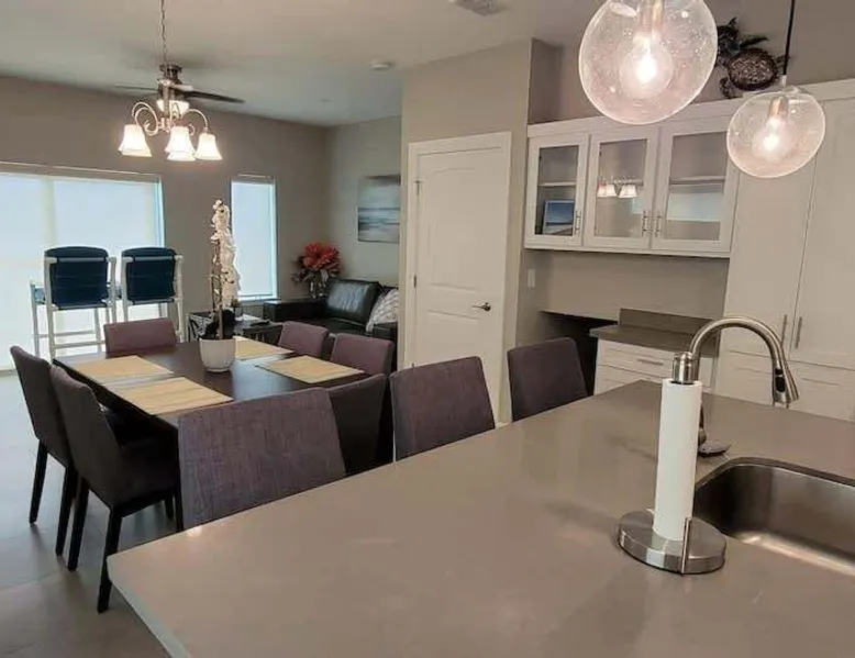 New Waterfront Bungalow * Fisherman's Paradise Waterfront Luxury Bungalow * Fisherman's Retreat Description: Let’s go fishing! *Near new & modern *High-end finishes *2 amazing levels *Two decks – 1 first floor & 1 second floor. Directly OVER water *Fully equipped kitchen + all towels & linens included *Walk to nearby fishing pier OR fish from 1st floor deck *Truck & trailer parking on street in front *Walk to 6+ nearby restaurants & dozen shops Please read and agree to all house rules before booking. The Space Waterfront? YES! Can’t get closer than at our Bungalow #1 on Tarvana Street in Port Isabel Just 2 blocks from the historical Port Isabel you & your kids can climb the stairs to the top, as well as the square with all of it’s unique shopping, dining, and more right there no car needed You will see South Padre Island as you walk thru the front door, with spectacular views from both of the over water decks. At night, the sunsets here = incredible, along with weekend fireworks in the summer. While this Luxe townhome has no pool, the beaches of South Padre Island are just across the causeway bridge in a matter of minutes whether you drive or taka cheap cap there are more than a dozen public beach access points. Port Isabel locally offers a more calm & peaceful experience than you generally would find on South Padre Island if you are looking to unwind. Walmart + HEB are less than 2.5 miles away. Like to fish? You can do it from the deck right over the water. Or walk 2 blocks to Pirate's Landing pier and pay $8 to go out on the 150-yard pier over the Laguna Madre it is particularly good at night there. This pier is one of the longest in Texas This bungalow features 2 off-street parking spots, with plenty of on-street parking for a truck with boat and trailer directly in front of this space to keep your stuff close to watch over it. While we allow up to 6 guests, that’s not really optimal for this space for bedding as it I a queen in master, 2 singles in 2nd bedroom and very small pull out couch. Unregistered guests and/or visitors are not allowed at this property and do result in eviction. Loud music, parties, and "get-togethers" are not allowed here – please note you cannot BBQ from the deck nor on the front stoop – but you can bring you BBQ and set it up on the street about 15 feet from your front door and BBQ FYI. This is one of 5 private bungalows completed in 2021 and is brand new now as a short-term rental. You can stay here for less of the the Island, yet enjoy a luxury level that will satisfy even the most discerning tastes in décor and remodel. Our fishing guides book this over South Padre Island as the White Sands boat launch is just 3 blocks away for quick fishing trips if you have a boat, or to book a guide. If you need a guide with a flats boat, we can recommend a few local hot shots. High-speed Wi-Fi included although it can be spotty at times as Spectrum (generally ok) and contactless check-in thru our e lock system Don't hesitate to message us for advice on the Island or local attractions. Please read, understand, and agree to ALL house rules on this property before booking. 6 is the max number of humans here, and no pets are allowed. Two dedicated off-street parking spaces are described below: As you pull into the parking lot, look for spot marked #1. 1- Under cover of carport (far right side) 1- Behind the covered spot (uncovered) Be aware towing is enforced here strictly. Our listing requires the primary tenant to be 25 years of age or older to book and must be present at check-in. You must contact us prior to booking if you are under 25—exceptions may be possible with additional requirements. Property is managed locally by South Padre Island Trips at 2600 Padre Blvd, 78597 with our office open 9 am to 5 pm if you should need anything. We do provide a starter pack of toiletries like soaps etc and trash bags, dishwasher pods but it is not replenished nor unlimited so please plan accordingly. We require an e-sign rental agreement with an attached photo ID after booking. This is necessary to maintain our City of South Padre Island Rental License. Please e-sign the rental agreement via DocuSign prior to arrival to receive your door code. Provide your email address and attach a photo of your ID, or upload it to messaging to verify your age. An electronic door code is provided to enter the property via text message to the cell phone number on file by 3 pm on day of check in. We do not provide door codes earlier as we cannot have guests attempting to park nor slowing down maid service of course ïŠ If you need a somewhat earlier check in, contact our office on day of check in around 11 am and we can check for you. Our short term City of South Padre Rental License can be provided upon request. Please contact us prior to booking with questions about these stipulations, as we have a strict cancel policy. We fully disclose this prior to booking and require all guests to read and agree to all house rules. Thank you for considering Bungalow Tarvana #1 a two bedroom 2 level townhome at 404 n tarvana! Let us know if you have any questions. We hope you and your family create lasting memories. **Special Terms for Spring Break Dates: March 8 through March 23** Main guest must be 25+ OR you are required to pay both the $1000-1500 refundable damage deposit .This is per HOA requirements.