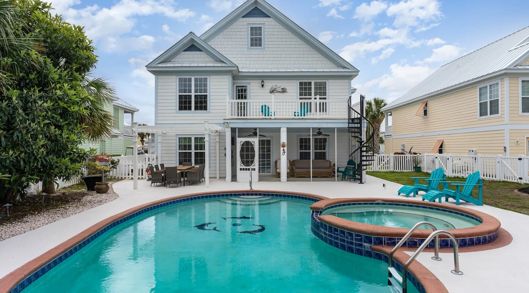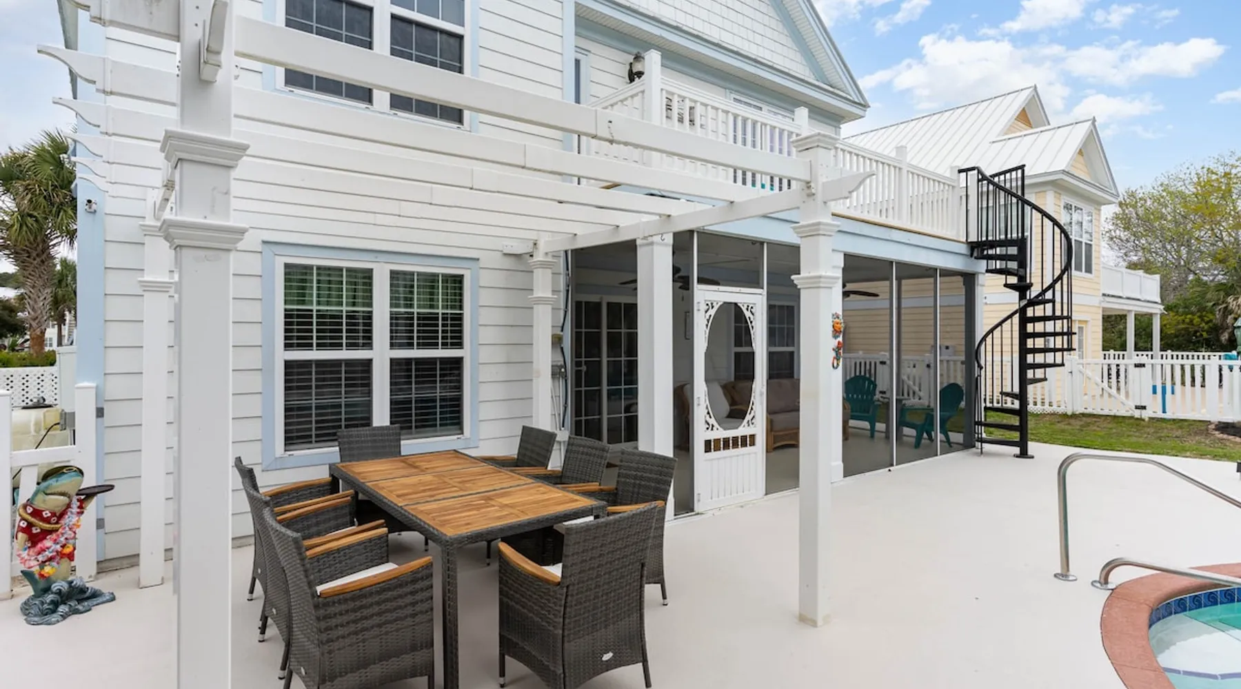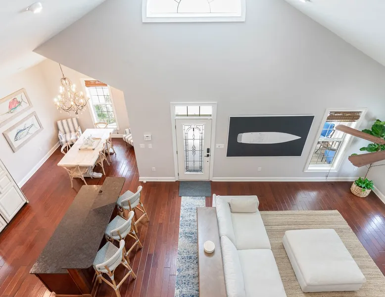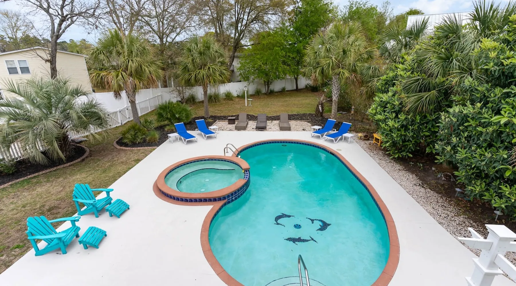 Welcome to our spacious 5-bedroom, 4.5-bath coastal retreat in Surfside Beach, SC- designed for families and groups seeking both comfort and convenience. Whether you're relaxing by the private saltwater pool, cooking in one of two full kitchens, or heading to the beach just minutes away, this home has everything you need for an unforgettable stay. Booking Saturday to Saturday only during June, July and Aug. Other month's off peak please inquire. The space This luxurious 5-bedroom home is perfect for a family vacation or a group getaway. With 4.5 bathrooms, there is plenty of space for everyone to get ready without feeling cramped. The two living rooms and two kitchens allow for plenty of space to relax and entertain, with all the necessary appliances and amenities provided. Take a dip in the salt water private pool or relax on one of the two outdoor decks while enjoying the beautiful backyard area. The spacious back yard is perfect for playing games like corn hole. Inside, the home is beautifully decorated and features a 75" Smart TV in the living room, making it a great place to gather and watch movies or TV shows. The fully equipped kitchen features a gas stove with 4 burners, large refrigerator, dishwasher, microwave, and coffee maker, allowing you to easily prepare meals and snacks for your group. The bedrooms are all spacious and well-appointed, with comfortable beds and smart TVs in all of them. BR 1 has 2 twins over queen bunk beds and a private bathroom, making it perfect for kids. BR 2 has a king bed and a twin day bed with trundle, as well as a private bathroom. BR 3 has a king bed and its own bathroom, while BR 4 has a king bed and BR 5 has 2 queen beds. BR 4 & BR 5 share a full bathroom. All bedrooms have plenty of closet space. One of the best features of this home is the easy access to the lower level without having to walk up any stairs. The lower level features a full living room with a pull-out queen sleeper sofa, a kitchen with all the necessary appliances, and a dining area. BR 4 & BR 5 and a full bathroom are also located on this level. Enjoy the beautiful weather on the full enclosed screened porch with a TV and fans. With central A/C throughout the home, you will stay comfortable no matter what the weather is like outside. Book your stay in this luxurious and spacious home for your next vacation and create unforgettable memories with your loved ones. Guest access Access to entire home except inside the garages. Other things to note Requested mandatory information needed 48 hours prior to your arrival for security protocol for access into the community. Renters must be 25 and older to book our home no exception, Hoa rules. Number of adults & children, First & Last Name, Email address, home address, phone number, make, model and color of vehicles, tag information and state. Street parking is prohibited at this property. There is no parking garage available for this property. Overflow parking is available with a pass from the security gate. Driveway (5 vehicles), no street parking, no parking garage. 2 golf cart allowed max. If you need to rent more than 2 golf carts during your stay you will have to park your vehicles in overflow lot to allow more space for golf carts. Golf carts are only allowed to be parked on the driveway. No golf carts allowed on the grass. The property requires no steps for entry if you use the lower bottom right entry door. The lower level features a 2-bedroom, 1 bathroom, living room, dining area, kitchen and screen in porch on the lower level; however, all other bedrooms/bathrooms, a 2nd living room, and main kitchen require stair to access.