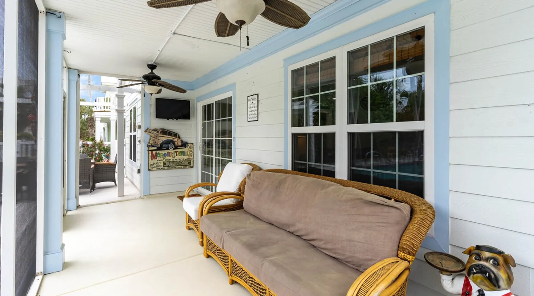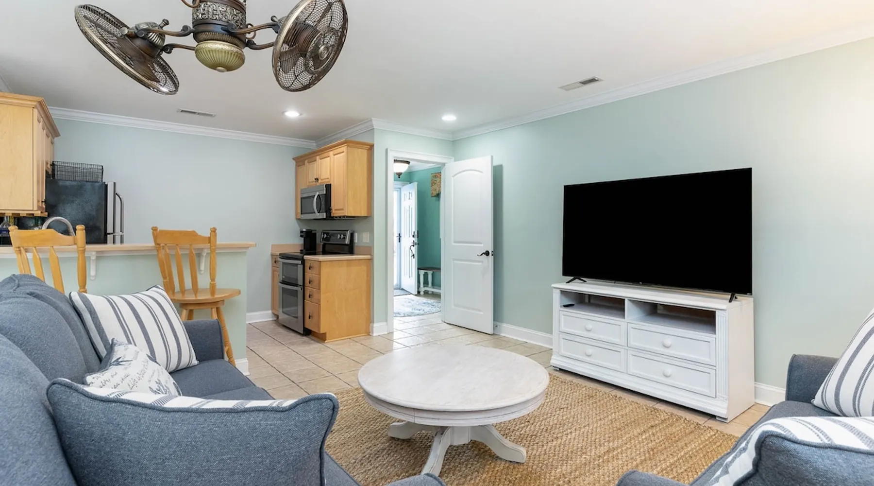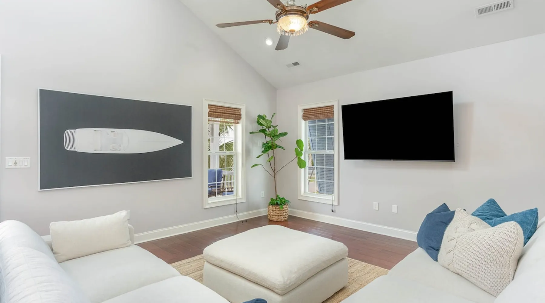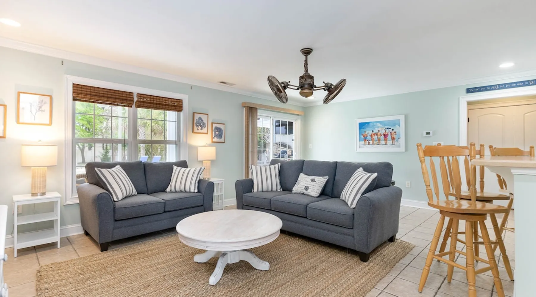 Welcome to our spacious 5-bedroom, 4.5-bath coastal retreat in Surfside Beach, SC- designed for families and groups seeking both comfort and convenience. Whether you're relaxing by the private saltwater pool, cooking in one of two full kitchens, or heading to the beach just minutes away, this home has everything you need for an unforgettable stay. Booking Saturday to Saturday only during June, July and Aug. Other month's off peak please inquire. The space This luxurious 5-bedroom home is perfect for a family vacation or a group getaway. With 4.5 bathrooms, there is plenty of space for everyone to get ready without feeling cramped. The two living rooms and two kitchens allow for plenty of space to relax and entertain, with all the necessary appliances and amenities provided. Take a dip in the salt water private pool or relax on one of the two outdoor decks while enjoying the beautiful backyard area. The spacious back yard is perfect for playing games like corn hole. Inside, the home is beautifully decorated and features a 75" Smart TV in the living room, making it a great place to gather and watch movies or TV shows. The fully equipped kitchen features a gas stove with 4 burners, large refrigerator, dishwasher, microwave, and coffee maker, allowing you to easily prepare meals and snacks for your group. The bedrooms are all spacious and well-appointed, with comfortable beds and smart TVs in all of them. BR 1 has 2 twins over queen bunk beds and a private bathroom, making it perfect for kids. BR 2 has a king bed and a twin day bed with trundle, as well as a private bathroom. BR 3 has a king bed and its own bathroom, while BR 4 has a king bed and BR 5 has 2 queen beds. BR 4 & BR 5 share a full bathroom. All bedrooms have plenty of closet space. One of the best features of this home is the easy access to the lower level without having to walk up any stairs. The lower level features a full living room with a pull-out queen sleeper sofa, a kitchen with all the necessary appliances, and a dining area. BR 4 & BR 5 and a full bathroom are also located on this level. Enjoy the beautiful weather on the full enclosed screened porch with a TV and fans. With central A/C throughout the home, you will stay comfortable no matter what the weather is like outside. Book your stay in this luxurious and spacious home for your next vacation and create unforgettable memories with your loved ones. Guest access Access to entire home except inside the garages. Other things to note Requested mandatory information needed 48 hours prior to your arrival for security protocol for access into the community. Renters must be 25 and older to book our home no exception, Hoa rules. Number of adults & children, First & Last Name, Email address, home address, phone number, make, model and color of vehicles, tag information and state. Street parking is prohibited at this property. There is no parking garage available for this property. Overflow parking is available with a pass from the security gate. Driveway (5 vehicles), no street parking, no parking garage. 2 golf cart allowed max. If you need to rent more than 2 golf carts during your stay you will have to park your vehicles in overflow lot to allow more space for golf carts. Golf carts are only allowed to be parked on the driveway. No golf carts allowed on the grass. The property requires no steps for entry if you use the lower bottom right entry door. The lower level features a 2-bedroom, 1 bathroom, living room, dining area, kitchen and screen in porch on the lower level; however, all other bedrooms/bathrooms, a 2nd living room, and main kitchen require stair to access.