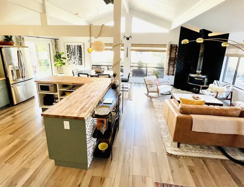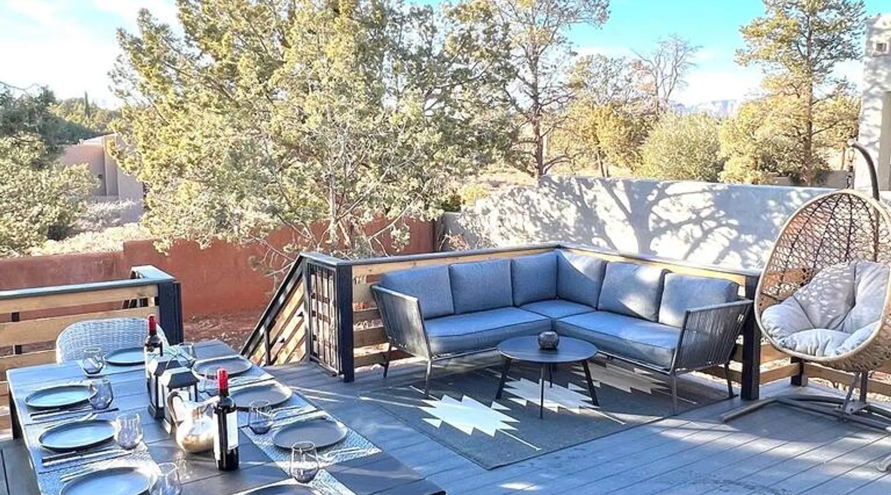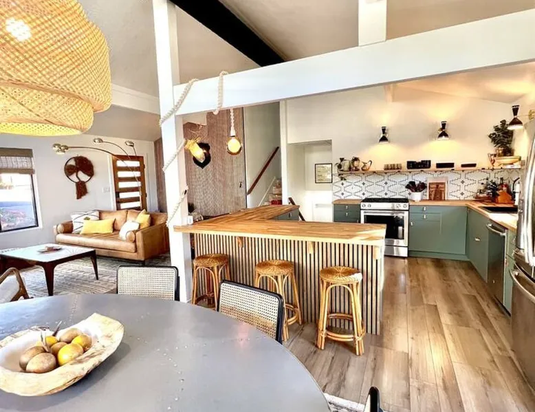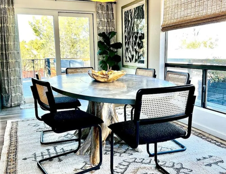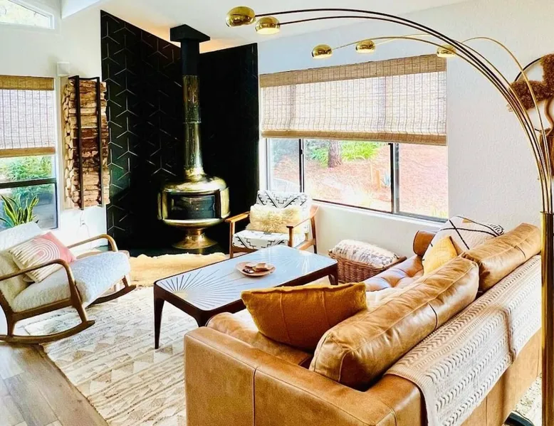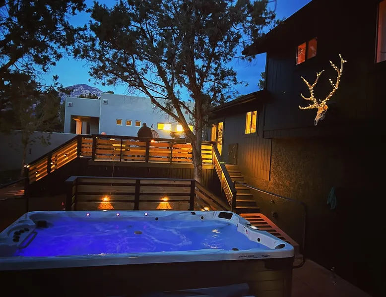 The Essex House Sedona is gorgeously appointed in desert modern style, curated with original art, and features a 17ft long Hydro-pool (addtl nightly fee for spa heat), fire pit, outdoor shower, tetherball, and back deck perfect for entertaining. Great room has a gorgeous vintage Malm fireplace, dining area, and a fully stocked chef's kitchen. Plush bedroom furnishings inspired by Arizona sunsets. Game room with a sectional sofa bed, retro video games & s'mores fixin's. The space THE ESSEX HOUSE SEDONA OVERVIEW Check out ig@essexhousesedona PROS: Multiple large communal areas, fully stocked chef's kitchen, huge hydro-pool, outdoor shower. CONS: Small bedrooms, older windows that sometimes stick. PLEASE NOTE: There is a new house being built on the empty lot behind the Essex House Sedona. Construction started in Oct 2025. Unfortunately, Sedona allows work crews to start at 7am, including Saturdays. There may be potential noise during your stay. As a result, we are waiving our nightly spa heating fee while outdoor construction takes place on the new house. Please reach out prior to booking, and I can update you on the building stage and potential noise. OUTSIDE •Private back yard with a luxe 17ft long Hydro-pool. (Please read detailed Hydro-pool description below regarding extra fee for spa heat) •Outdoor Shower that enhances the backyard vibe •Fire pit with 6 Adirondack chairs for roasting s'mores. (S'mores supplies provided) •Large deck for dining al fresco and adjacent lounge area •Grill *Tetherball GAME ROOM •New sectional sofa bed with memory foam Queen mattress •Smart TV with Sonos sound bar speaker •Game table and games •2 person video game console table with over 30 old school video games •Selection of exercise equipment, including yoga mats and weights •Lower leg and foot massager to help with sore muscles after a day of hiking •Smore's supplies •Washer and dryer *Pack n' Play and highchair •Mini fridge •Sun hat lending library and re-chargable bug zappers •Direct access out to the swim spa, stocked with spa towels and a towel warmer. BEDROOMS: •Master Suite: Queen bed, ensuite bath with oversized shower, Smart TV •Bedroom 2: Queen bed, Smart TV •Bedroom 3: Two twin beds •Game Room: Fold-out memory foam queen bed, Frontgate automatic air mattress (single), Pack n' Play KITCHEN •Fully stocked chef's kitchen •Standard appliances include gas burner stove, toaster, microwave, oven and refrigerator •Extra appliances include air fryer, crockpot, instant pot, electric kettle, blender, mini food processor, electric citrus juicer •Le Creuset dutch oven, baking dishes, baking pans, roasting pan, serving platters, pancake griddle that fits on the stovetop, spaetzle maker, microwave popcorn maker and popcorn supplies •Coffee making supplies include ground coffee and sugar, espresso machine with milk frother attachment, large drip coffee maker with thermos, French press and an Italian Moka pot. •Large tea selection and hot chocolate provided •Other supplies include: drawer full of various spices, olive oil, salt and pepper •Knife block has sharpeners built into it. Naturally, the kitchen is also stocked with basic dining, cooking and serving essentials including plates, bowls, silverware, stemless wine and drinking glasses, cooking utensils and kitchen accessories, such as can opener, wine opener, meat thermometer, measuring spoons and more. There is a set of plastic plates and cups if you wish to dine outside. No other cooking supplies are guaranteed, but likely to include oil, sprays or other cooking ingredients, foil, cling wrap, etc. We recommend assessing current kitchen stock before shopping for any meals you plan to prepare! LIVING ROOM •Open plan great room with kitchen, dining area and living area combined. •Siding doors with direct access to the back deck •Vintage 1960's brass Malm fireplace with electric fireplace insert. Heat optional. Turns on with a touch of a button. •Sonos speakers connected on the Essex House wifi Hydro-Pool 17-foot CalSpa Hydro Pool with waterfalls (Vegas package!) and LED lighting. It is a cross between a hot tub and a pool. High resistant jets enable you to swim in place. Normal resting temp is 85F - 95F. If you prefer to soak after hiking, and would like us to heat up the swim spa (to 104F) for your stay, please contact the house manager 24 hours in advance of your arrival. Heating fee is $50 per night or $200 for stays 4 nights or longer in a given week. During the hotter months of the year, guests normally do not request any additional spa heat. The Hydro-pool requires maintenance visits twice weekly on various days. The service tech needs access to the back yard to maintain water balance. The tech will access the back yard using the padlocked side gate. It usually takes around 15-20 min to service the Hydro-pool. Note: You will be charged $250 if your usage results in the hydro-pool needing extraordinary cleaning or to be drained. Please shower before using. No food and drink in the hydro-pool. Please follow the hydro-pool rules as posted in the game room and on the front of the hydro-pool itself. OTHER THINGS TO NOTE: •We require all of our guests to sign a rental agreement before staying at the Essex House Sedona. We send it out after booking and you will be able to do an electronic signature online. WE ALSO HAVE: •Fast Starlink Satellite Internet •Built-in work desk with a landscape mural painted by your hostess. •Whole house water softening system •2 outside security cameras. One is positioned on front door entrance and one on the back gate entrance. Camera actively records video and audio when it senses motion. •Essex House Sedona does not have any child safety setups. However, the back deck has closable gates at each set of stairs. The hydro-pool does not have any safety baby gates. We do provide a pack n' play, a high chair, and a few baby plates, cups and utensils. INCLUD