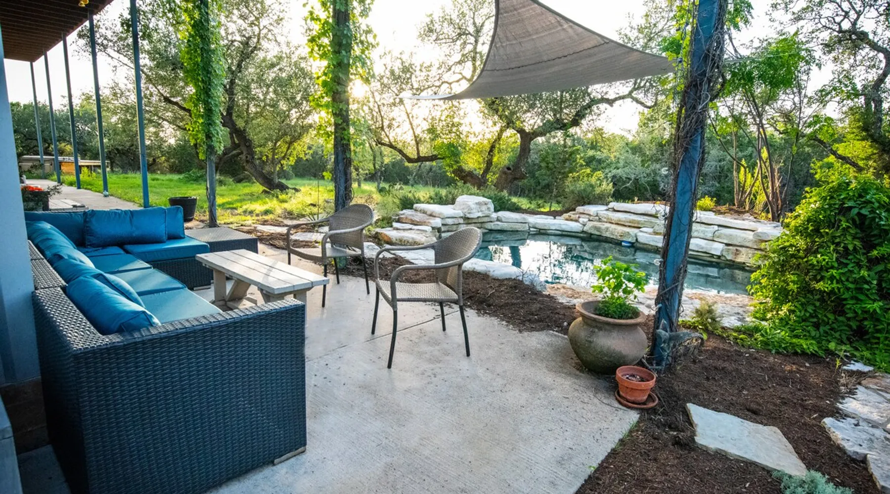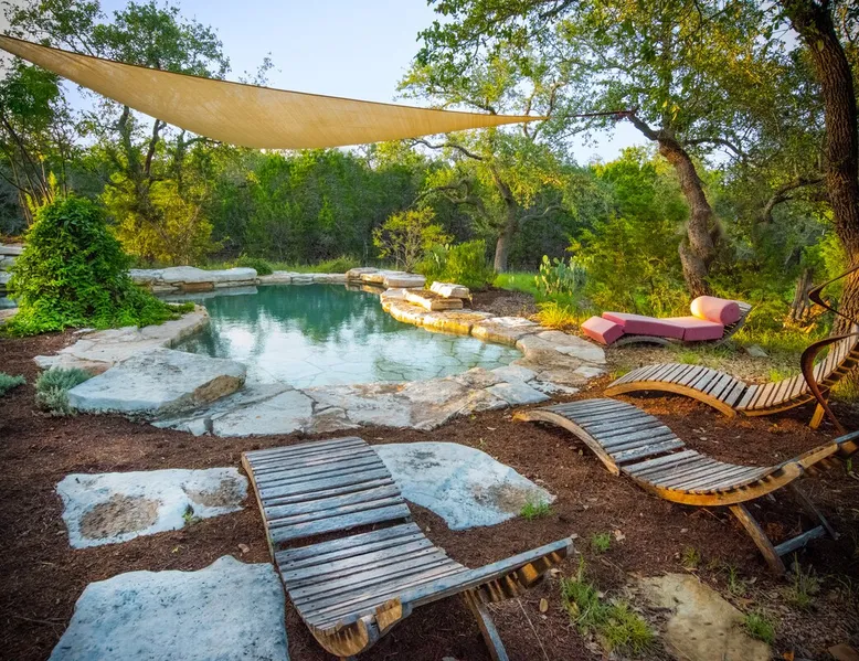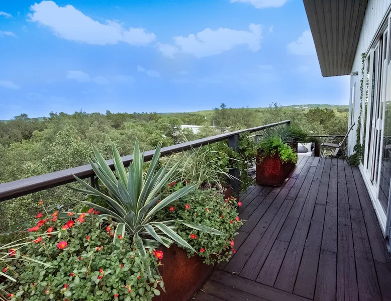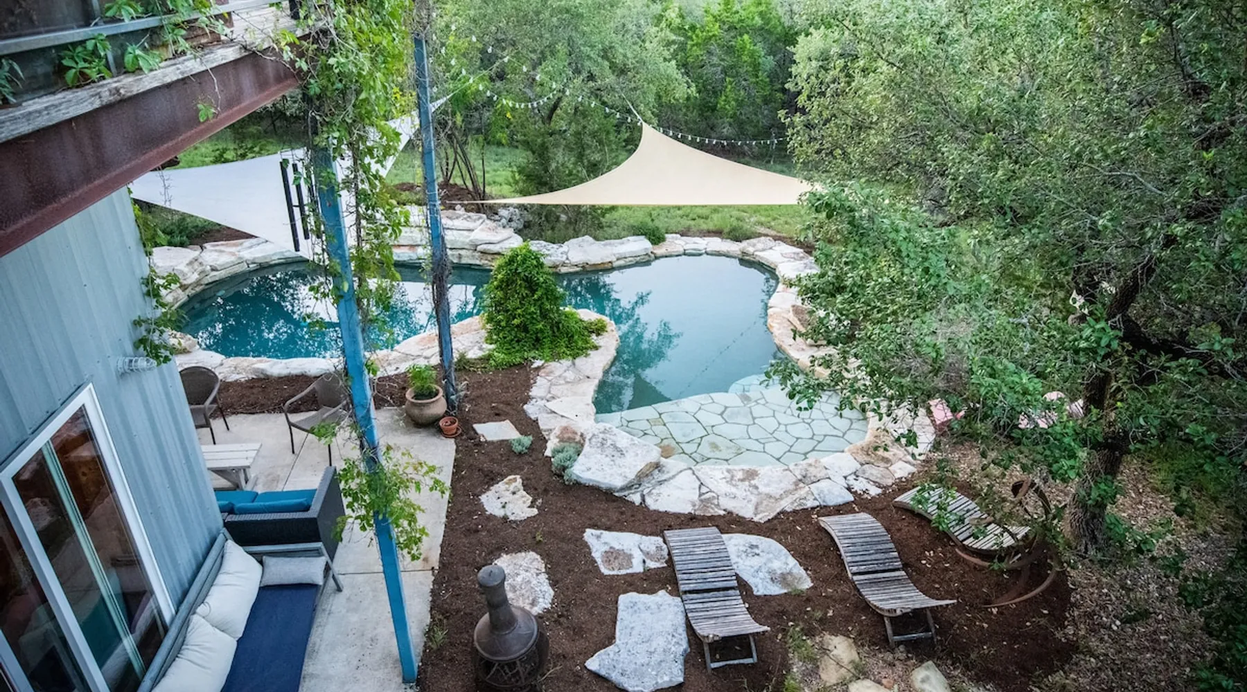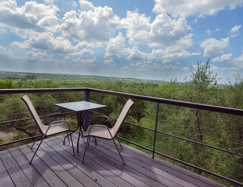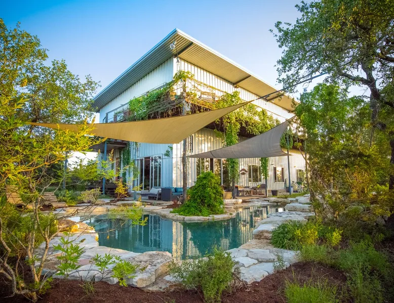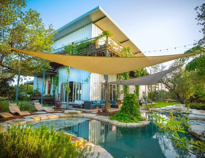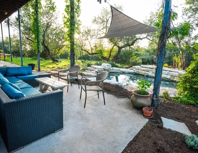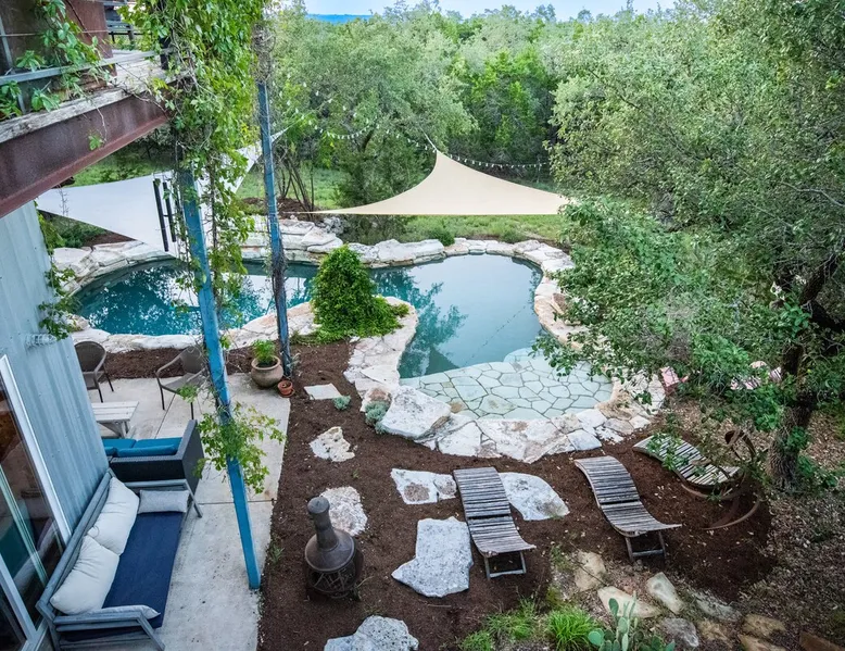 Private 3-acre retreat bordering 7,000 acres of conservation land. Surrounded by gardens, sitting areas, a natural pool, and fire-pits. Enjoy 1,200+ sf of wraparound decks with panoramic views. A 30’ atrium serves as a stunning studio or sitting room. The open, airy second-floor living space is filled with natural light and blends seamlessly with the outdoors. Just 25 minutes from downtown—offering a rare mix of total privacy, natural beauty, and easy access to the city. The space Our home sits on the second floor overlooking the hill country. Watch the sunsets, listen to nature and witness the shooting stars. Our house is perfect for family and large groups. We have a great kitchen for food prep and cooking that is open to the dining and living area. We have 4 bedrooms and 3 full bathrooms upstairs, and a full bathroom with dressing area for the pool downstairs. The space downstairs in the atrium and studio is a great place to get away to paint, read, or relax by the pool. While un air-conditioned, sleeping in the atrium can be quite pleasant. Sonos sound system is avalible. Guest access 75% of the house is guest access. The other 25% is our personal storage that remains locked while we are away. Other things to note Our property is not completely fenced. It is not recommended to bring pets who tend to roam as there are predators, like coyotes and snakes that visit our area. Only small dogs who are well-trained and house broken are welcome. Pet deposit required. Our house is not equipped with an elevator. It's important to know that we do not have handicapped access to the second floor. We are open to inquires for dates not listed as available or longer stays or special events. Just ask about what you have in mind. We are on a septic tank and we collect rain water for the entire home! This means nothing but water and septic friendly tp goes down our drains and it's important to only use water that you need. So please don't let the faucet run and remember to turn off the hoses. Our pool does not have a fence around it so please no children or pets who can not swim. Swimming and Playing around the pool requires adult supervision.