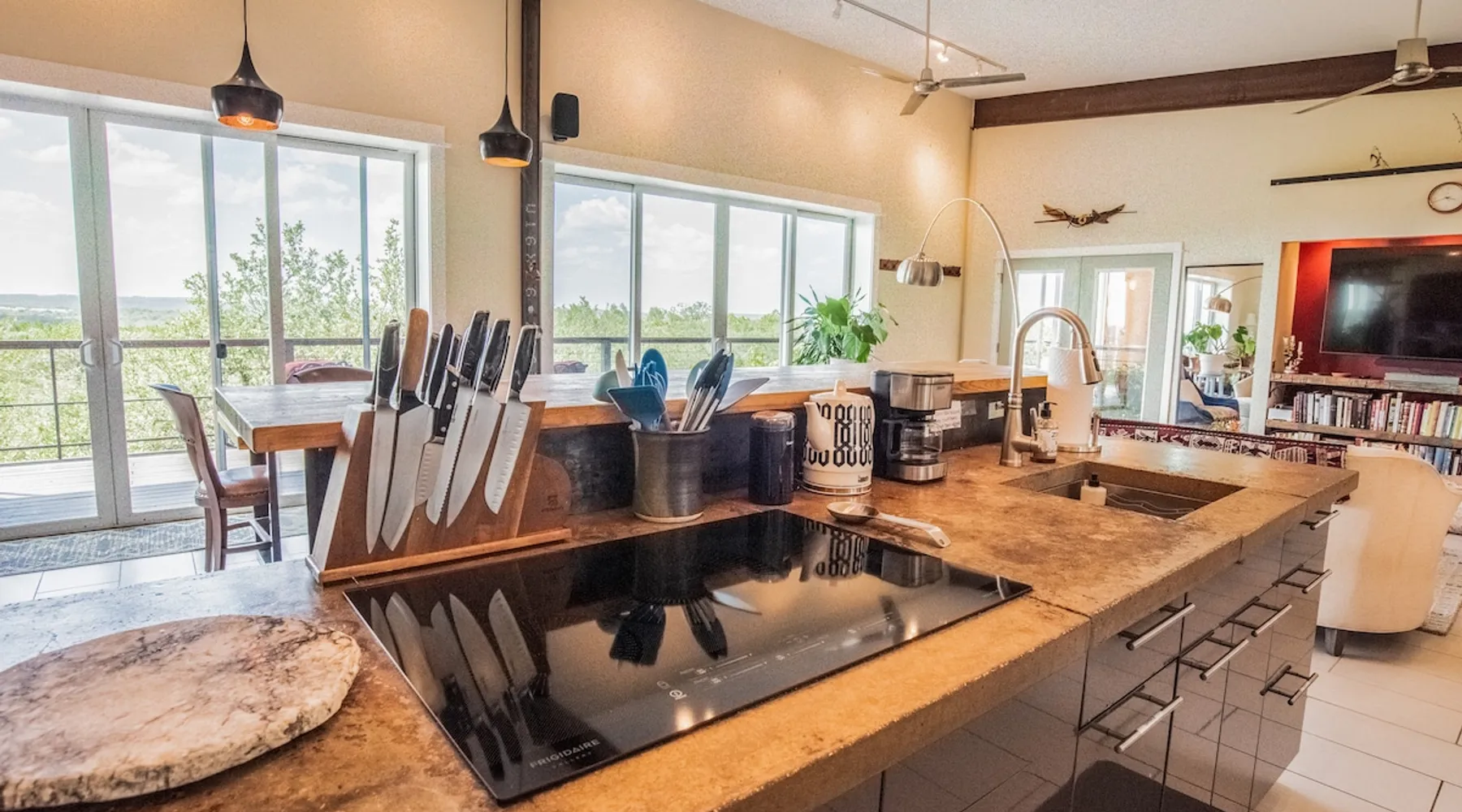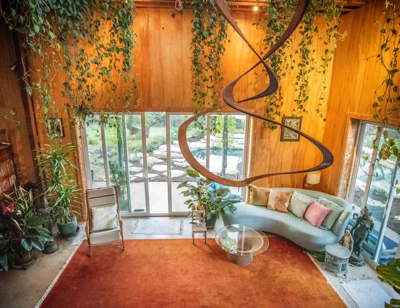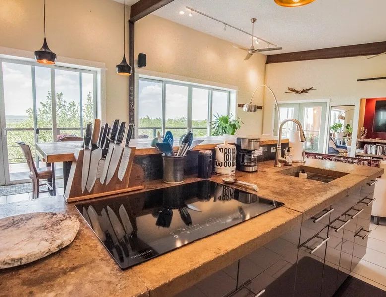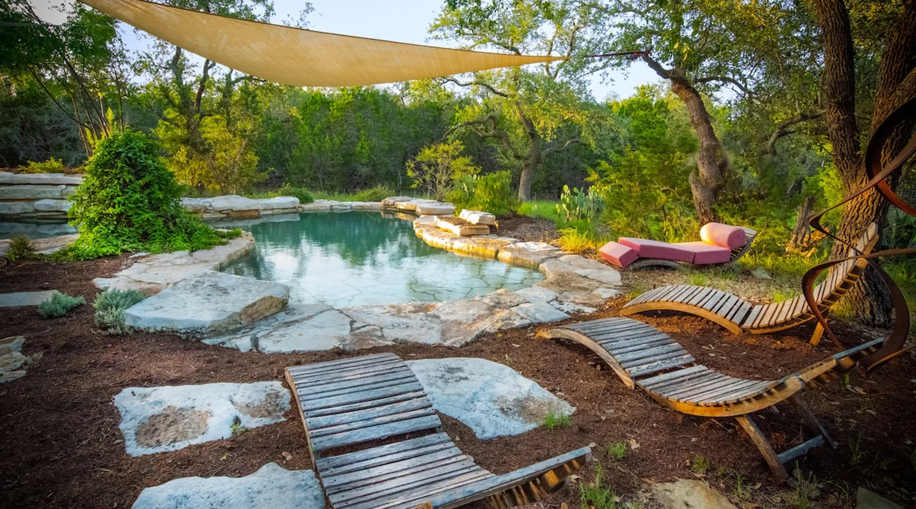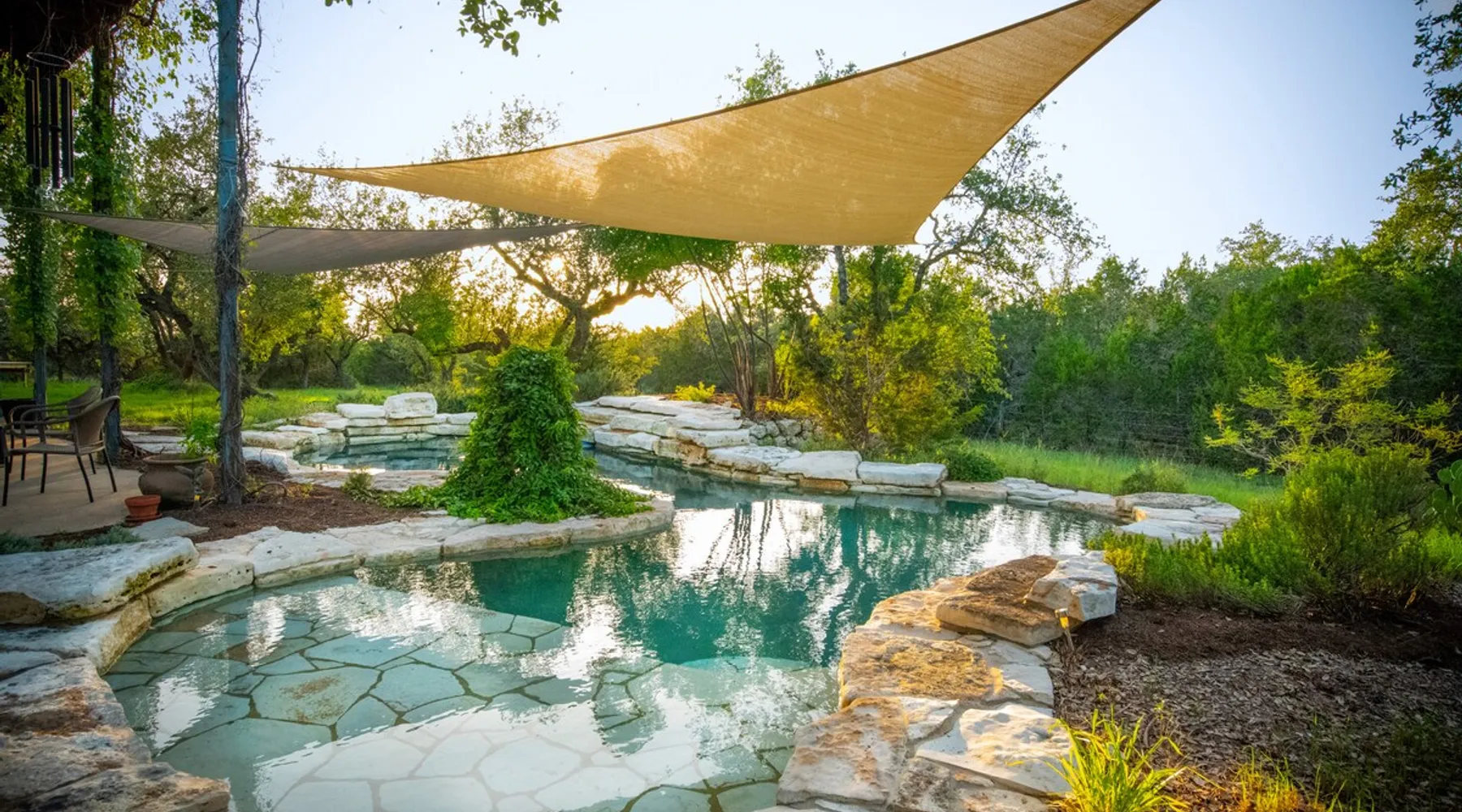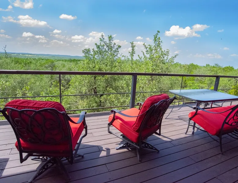Private 3-acre retreat bordering 7,000 acres of conservation land. Surrounded by gardens, sitting areas, a natural pool, and fire-pits. Enjoy 1,200+ sf of wraparound decks with panoramic views. A 30’ atrium serves as a stunning studio or sitting room. The open, airy second-floor living space is filled with natural light and blends seamlessly with the outdoors. Just 25 minutes from downtown—offering a rare mix of total privacy, natural beauty, and easy access to the city. The space Our home sits on the second floor overlooking the hill country. Watch the sunsets, listen to nature and witness the shooting stars. Our house is perfect for family and large groups. We have a great kitchen for food prep and cooking that is open to the dining and living area. We have 4 bedrooms and 3 full bathrooms upstairs, and a full bathroom with dressing area for the pool downstairs. The space downstairs in the atrium and studio is a great place to get away to paint, read, or relax by the pool. While un air-conditioned, sleeping in the atrium can be quite pleasant. Sonos sound system is avalible. Guest access 75% of the house is guest access. The other 25% is our personal storage that remains locked while we are away. Other things to note Our property is not completely fenced. It is not recommended to bring pets who tend to roam as there are predators, like coyotes and snakes that visit our area. Only small dogs who are well-trained and house broken are welcome. Pet deposit required. Our house is not equipped with an elevator. It's important to know that we do not have handicapped access to the second floor. We are open to inquires for dates not listed as available or longer stays or special events. Just ask about what you have in mind. We are on a septic tank and we collect rain water for the entire home! This means nothing but water and septic friendly tp goes down our drains and it's important to only use water that you need. So please don't let the faucet run and remember to turn off the hoses. Our pool does not have a fence around it so please no children or pets who can not swim. Swimming and Playing around the pool requires adult supervision.