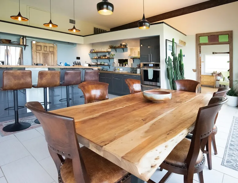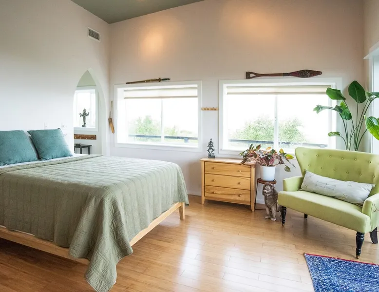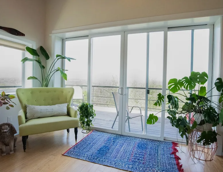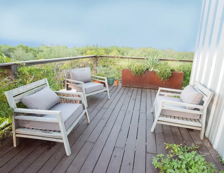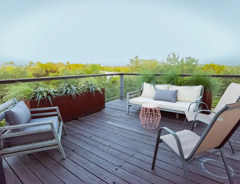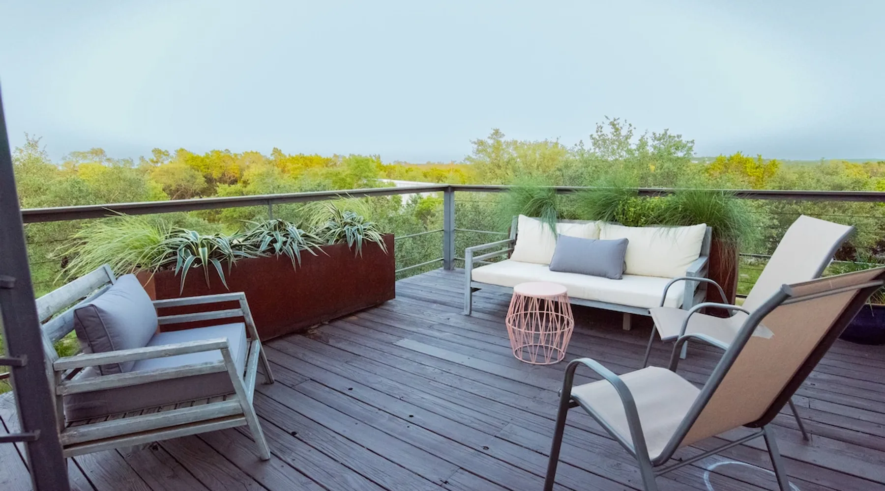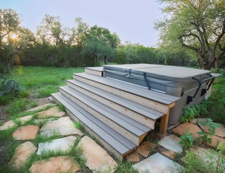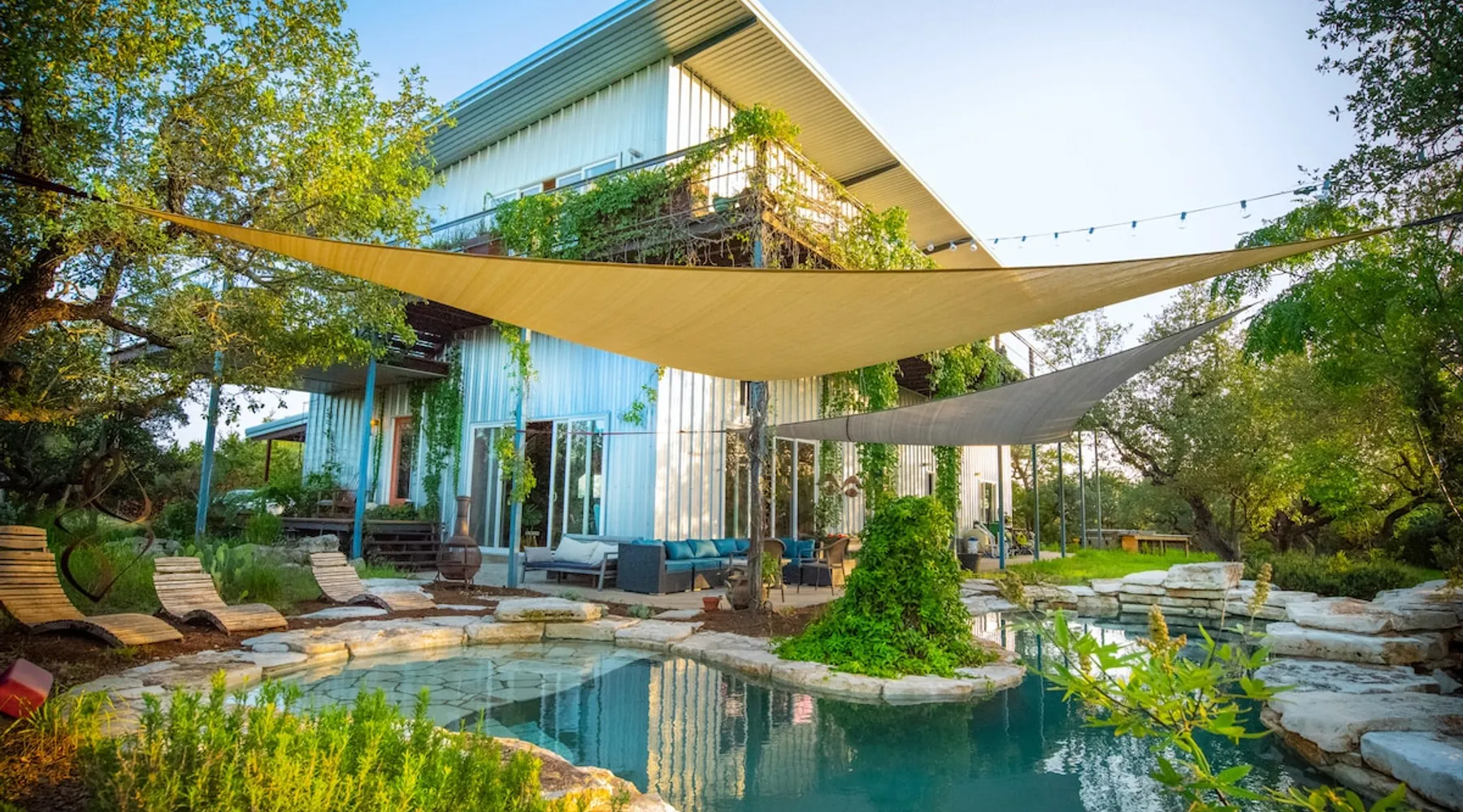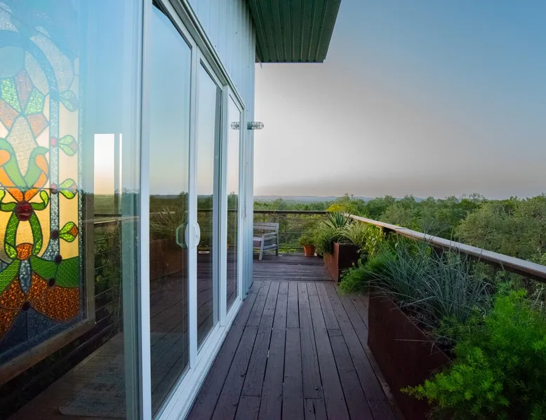Private 3-acre retreat bordering 7,000 acres of conservation land. Surrounded by gardens, sitting areas, a natural pool, and fire-pits. Enjoy 1,200+ sf of wraparound decks with panoramic views. A 30’ atrium serves as a stunning studio or sitting room. The open, airy second-floor living space is filled with natural light and blends seamlessly with the outdoors. Just 25 minutes from downtown—offering a rare mix of total privacy, natural beauty, and easy access to the city. The space Our home sits on the second floor overlooking the hill country. Watch the sunsets, listen to nature and witness the shooting stars. Our house is perfect for family and large groups. We have a great kitchen for food prep and cooking that is open to the dining and living area. We have 4 bedrooms and 3 full bathrooms upstairs, and a full bathroom with dressing area for the pool downstairs. The space downstairs in the atrium and studio is a great place to get away to paint, read, or relax by the pool. While un air-conditioned, sleeping in the atrium can be quite pleasant. Sonos sound system is avalible. Guest access 75% of the house is guest access. The other 25% is our personal storage that remains locked while we are away. Other things to note Our property is not completely fenced. It is not recommended to bring pets who tend to roam as there are predators, like coyotes and snakes that visit our area. Only small dogs who are well-trained and house broken are welcome. Pet deposit required. Our house is not equipped with an elevator. It's important to know that we do not have handicapped access to the second floor. We are open to inquires for dates not listed as available or longer stays or special events. Just ask about what you have in mind. We are on a septic tank and we collect rain water for the entire home! This means nothing but water and septic friendly tp goes down our drains and it's important to only use water that you need. So please don't let the faucet run and remember to turn off the hoses. Our pool does not have a fence around it so please no children or pets who can not swim. Swimming and Playing around the pool requires adult supervision.