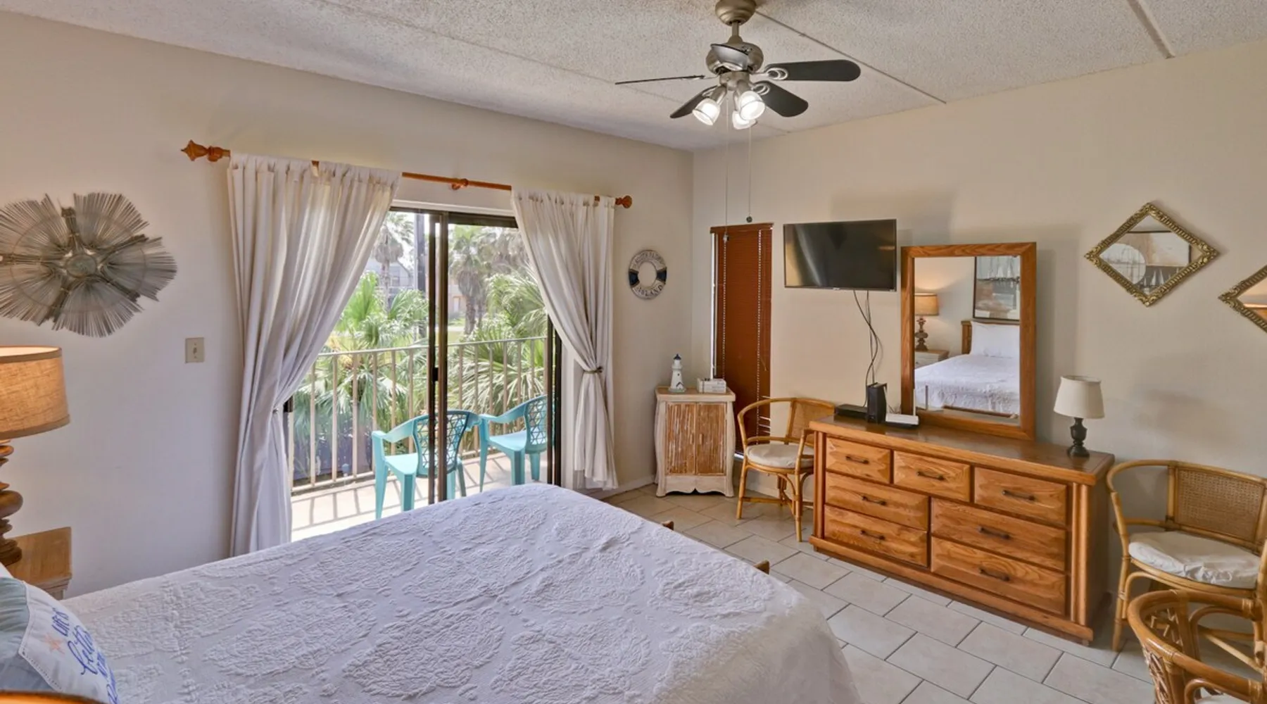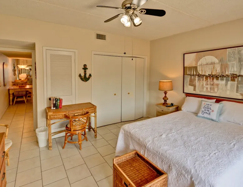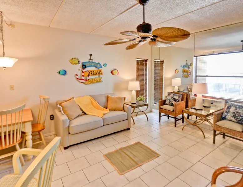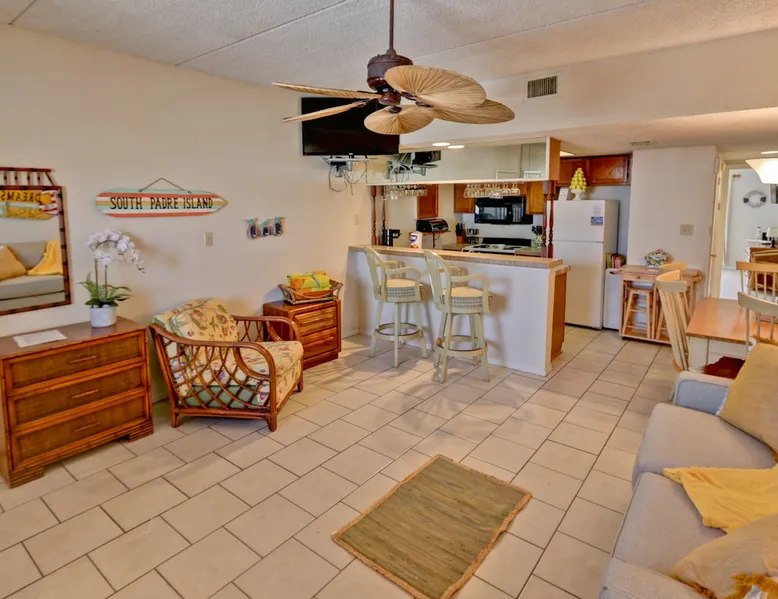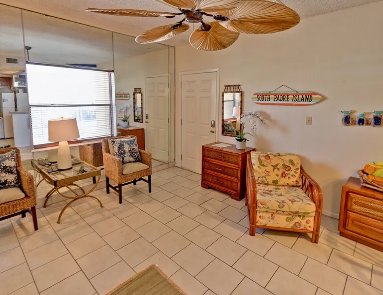 Enjoy easy access to the Gulf of Mexico when you escape to this one-bedroom South Padre Island vacation rental, where you'll find a private balcony with lovely views of a shared swimming pool, hot tub, and a beautifully landscaped garden. With one bedroom and one full bathroom, can accommodate as many as four guests for the night. The bright bedroom offers a queen-size bed and a second cable TV, as well as private access to the balcony. A sofa bed in the living room provides additional sleeping Check in is easy and available 24 hours a day with a smart lock on the entrance door. The smart keypad door code will be provided to the guest about 48-24 hours before arrival. Hosts will be available for check-in assistance up until 10 pm, we ask that guests arriving late please let us know via text. Local management. We live on the Island and are usually only a few minutes away. We give our guests their own space but are available when needed. GPS to 121 E VENUS LN, SOUTH PADRE ISLAND TX 78597
