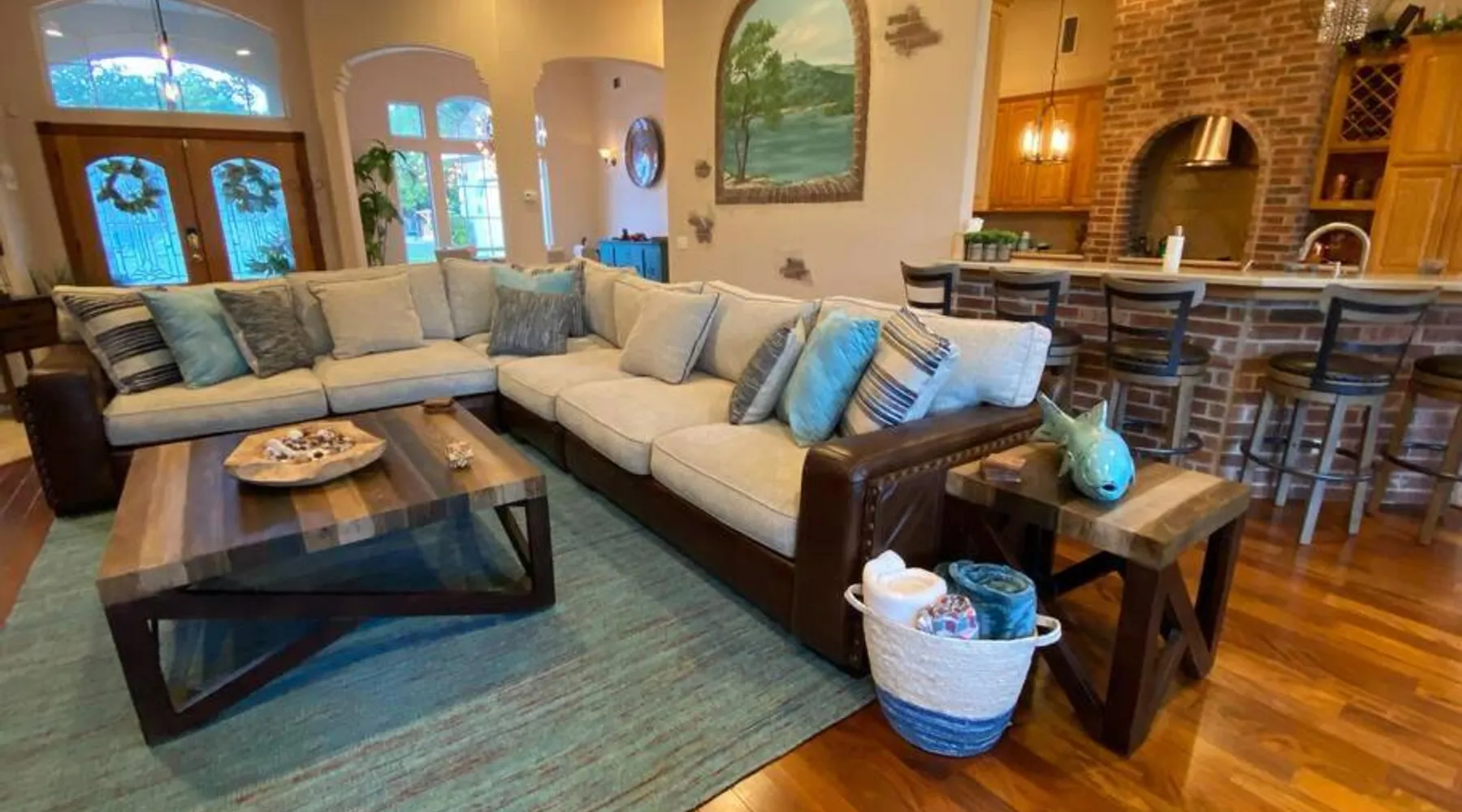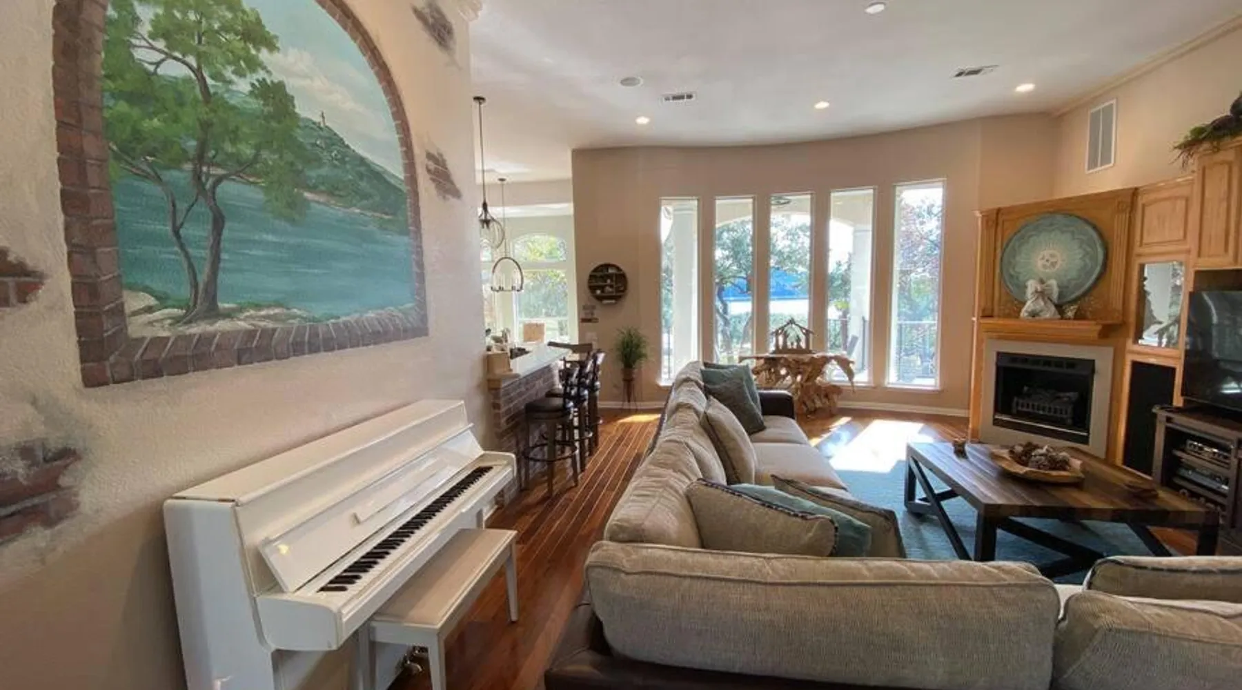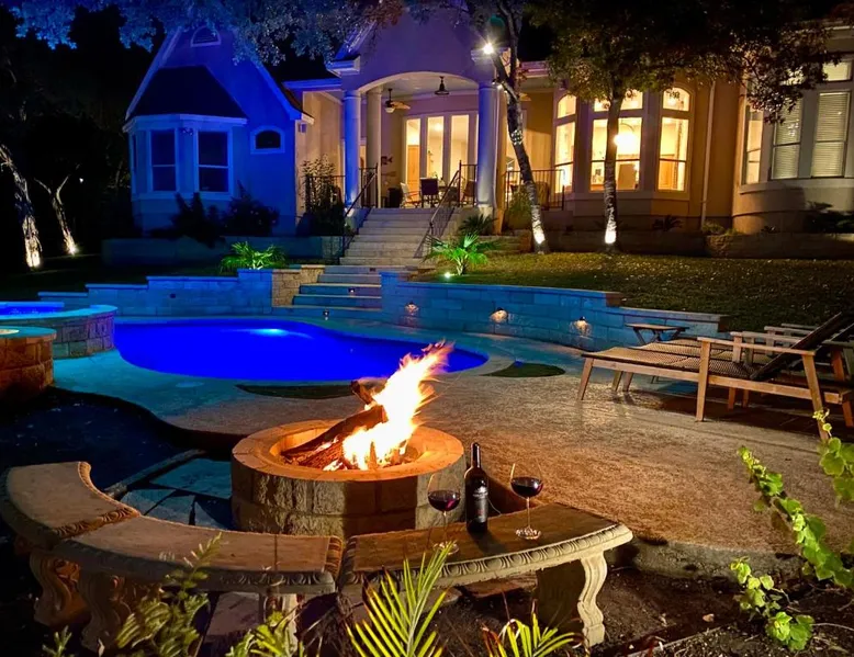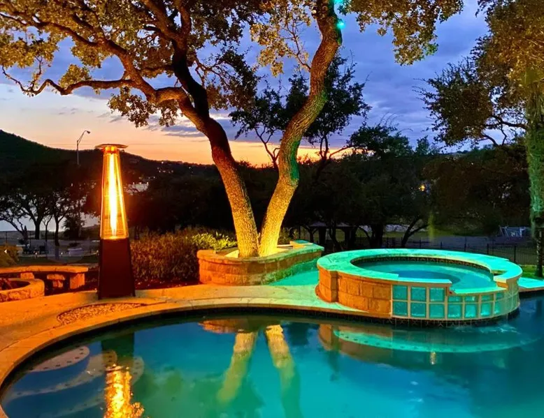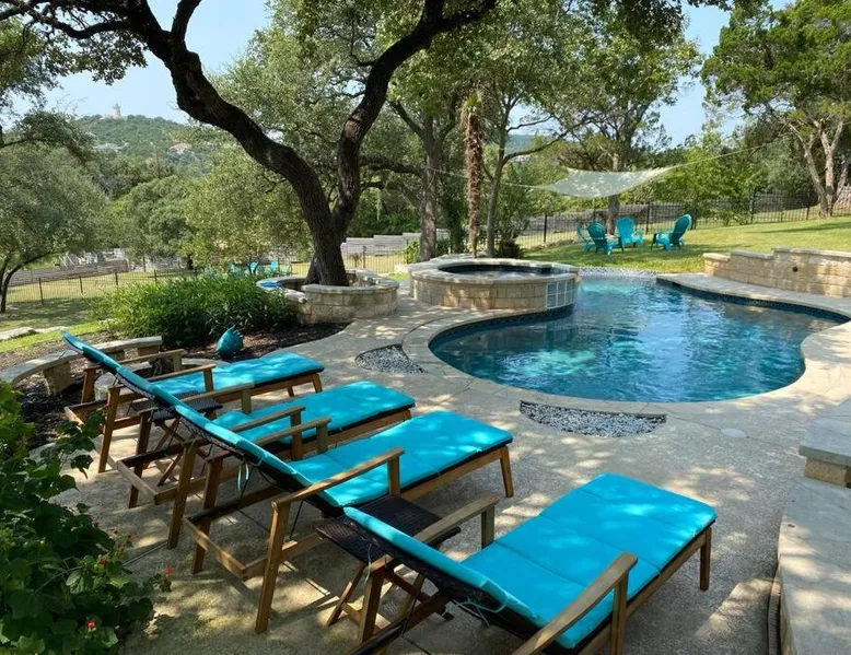 Spacious Accommodations: The Luxury Lake House in Leander offers six bedrooms and four bathrooms, ensuring ample space for all guests. The spacious layout includes a living room and family rooms, ideal for relaxation and comfort. Exceptional Facilities: Guests can enjoy a heated swimming pool with stunning views, a sun terrace, and a hot tub. The property features a spa and wellness center, water sports facilities, and a bar, providing entertainment and relaxation options. Convenient Amenities: The holiday home offers free WiFi, air-conditioning, and a fully equipped kitchen. Additional amenities include a games room, outdoor fireplace, and barbecue facilities, catering to all guest needs. Local Attractions: Located 34 mi from Austin-Bergstrom International Airport, the property is close to attractions such as Dell Diamond (23 mi) and Mount Bonnell (25 mi). Guests can enjoy fishing and explore the surrounding area. This holiday home's standout features are the pool with a view, hot tub and fireplace. Featuring a private entrance, this air-conditioned holiday home is consisted of of 2 living rooms, 6 separate bedrooms and 4 bathrooms with a bath and a shower. Guests will find a stovetop, a refrigerator, a dishwasher and kitchenware in the kitchen. The holiday home also has a barbecue. The spacious holiday home offers a flat-screen TV with streaming services, a washing machine, a mini-bar, a tea and coffee maker as well as lake views. The unit offers 9 beds.