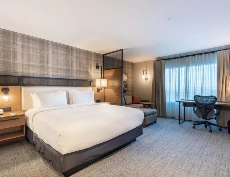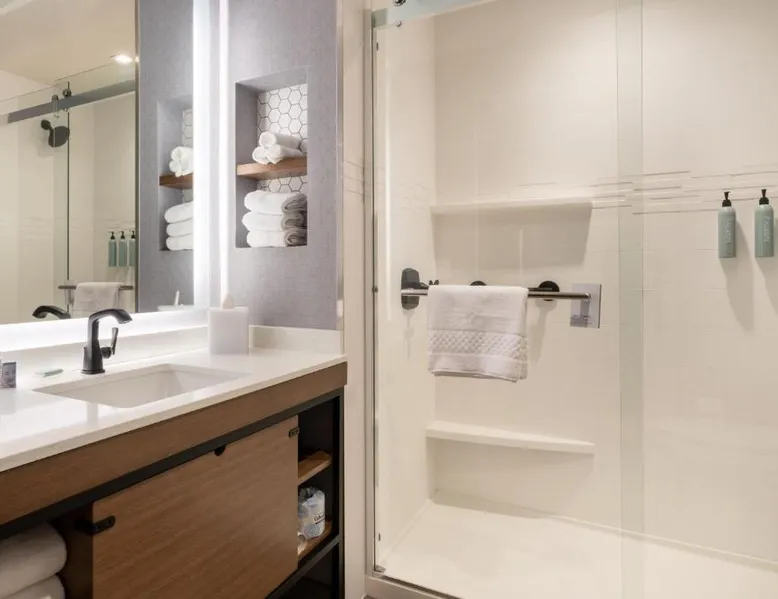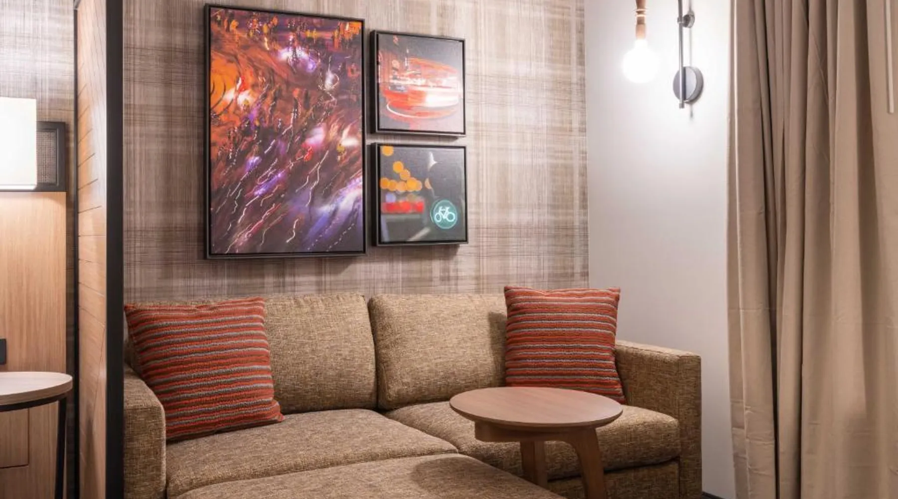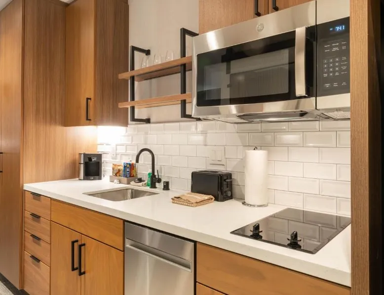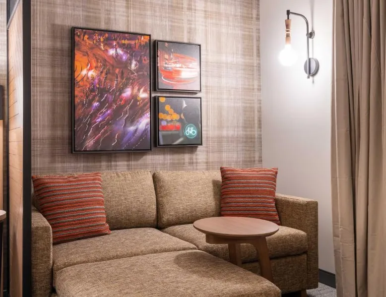 Comfortable Accommodations: Residence Inn by Marriott San Francisco Airport Millbrae Station in Millbrae offers rooms with air-conditioning, kitchenettes, private bathrooms, and free WiFi. Each room includes a work desk, sofa bed, and soundproofing for a pleasant stay. Exceptional Facilities: Guests can enjoy a fitness center, indoor swimming pool, terrace, and free WiFi. Additional amenities include a minimarket, 24-hour front desk, business area, and bicycle parking. Delicious Breakfast: A continental and American buffet breakfast is served daily, featuring fresh pastries, fruits, and juices. The child-friendly buffet caters to families with young children. Prime Location: Located 1.2 mi from San Francisco International Airport, the hotel is near attractions such as Oracle Park (14 mi) and Union Square (16 mi). Guests appreciate the convenient location and excellent connectivity. The studio has a private bathroom, air conditioning, soundproof walls, as well as a seating area with a flat-screen TV. The studio's kitchenette, which features kitchenware, is available for cooking and storing food. The studio features a tea and coffee maker, a sofa, a carpeted floor, a TV, as well as city views. The unit has 2 beds.