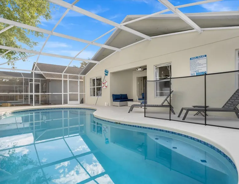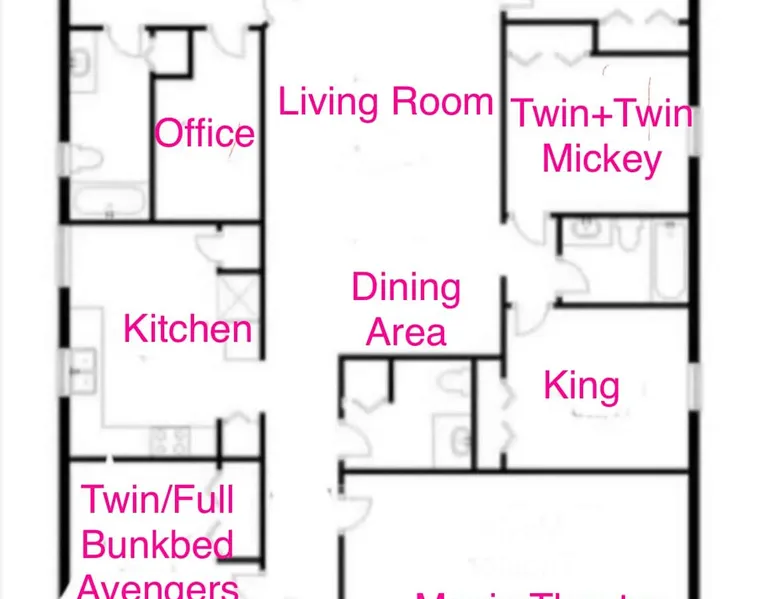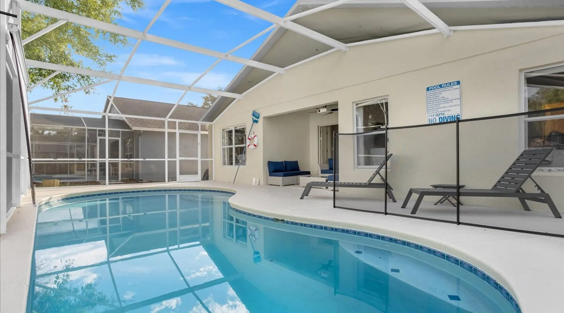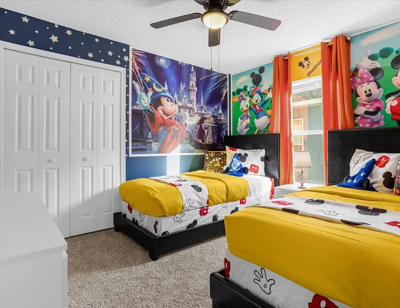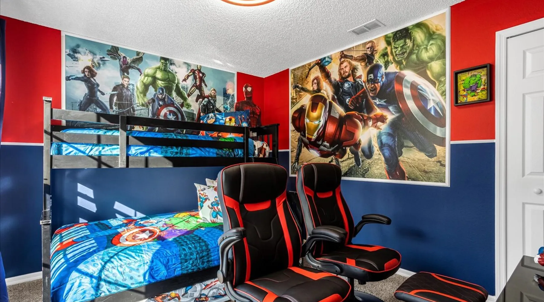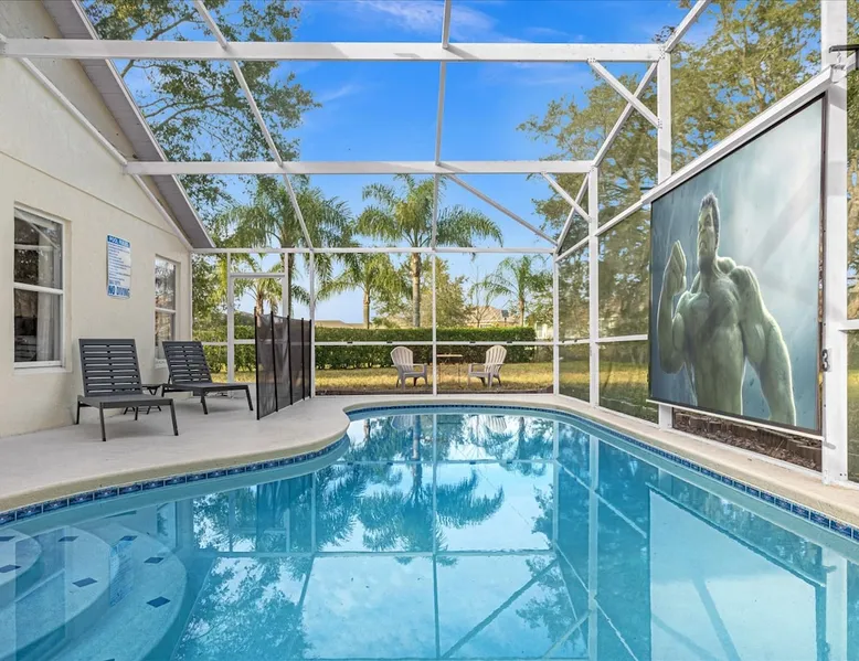 Welcome to Amazing Disney Star Wars Villa - Where Memories are Made! Escape to another galaxy when you stay at this spacious 5-bedroom, 2.5-bathroom Clermont vacation rental! Relax on the patio while enjoying a homemade breakfast prepared in this home's fully equipped kitchen. Then, after a day at the Theme Parks return home to the south facing pool with poolside cinema, enjoy family time before ending the night in the Star Wars-themed home theater, watching movies and making memories! The space 13.7 Miles to Disney | Wheelchair Accessible | South-Facing Heated Pool w/ Fee | Family Friendly - High Chair, Pack ‘n Play & Baby Utensils | Home Theater This entertainment-packed home is the ideal abode for Disney-loving groups in the Orlando area for Magic Kingdom adventures! This gorgeous villa includes 3 King rooms, Mickey Mouse Twin + Twin, Avengers Twin/Full + trundle bunk, private pool, Surround sound movie theater, Outdoor Poolside Cinema, fenced yard BEDROOMS: Bedroom 1: King Bed | Bedroom 2: King Bed | Bedroom 3: King Bed | Bedroom 4: 2 Twin Beds Mickey | Bedroom 5: Twin/Full + trundle Bunk Bed Avengers| Additional Sleeping: Pack 'n Play KITCHEN: Fully equipped, Keurig coffee maker, drip coffee maker, stainless steel appliances, dishware & flatware, spices OUTDOOR LIVING: Screened-in lanai, projector & screen, outdoor bar, lounge furniture, yard space INDOOR LIVING: Smart TVs in every room, modern furniture, home theater, dining table, roll-in shower, ceiling fans GENERAL: Free WiFi, washer & dryer, towels, linens, complimentary toiletries, central air conditioning/heat, keyless entry SUITABILITY: Step-free access, wheelchair accessible PARKING: Driveway (2 - 3 vehicles), street parking on the side street OPTIONAL: optional pool heat with fee $29/nt please contact Sherry to arrange, pool heat is weather permitting OPTIONAL: optional grill rental available $69/wk please contact Sherry to arrange grill rental Guest access Guests have access to the entire property. Keyless entry with a unique personal door code created for each guest. Other things to note Welcome to an Amazing Star Wars Adventure – Where Memories are Made! Escape to another galaxy when you stay at this spacious 5-bedroom, 2.5-bathroom Clermont vacation rental! Spend your mornings relaxing on the patio while enjoying a homemade breakfast prepared in this home's fully equipped kitchen. Then, head out for a magical adventure at Walt Disney World or Universal Orlando with your loved ones. Return home to splash around in the south facing heated pool before ending the night in the Star Wars-themed home theater, watching movies and making memories! 🚀 A Journey Through Time & Space As you explore this spacious, fully accessible 5-bedroom, 2.5-bathroom villa—all on one level, you’ll find magic around every corner. The Star Wars themed home theater transports you to galaxies far, far away, where surround sound and plush seating make every movie feel like an intergalactic experience. Meanwhile, the little ones discover their own realms of wonder—the Mickey Mouse room sparkles with Disney magic, while the Avengers room bursts with color and adventure straight out of a comic book! 🍽️ Comfort Meets Convenience This home is designed for both excitement and comfort. The fully equipped kitchen has everything you need to cook up delicious meals, whether it's a family breakfast before a theme park adventure or a cozy dinner after a day by the pool. A washer and dryer are also available, making longer stays effortless. 🌴 The Ultimate Backyard Escape Step outside, and the adventure continues. The heated, south-facing pool shimmers under the Florida sun, inviting you to take a dip. As the evening sets in, the magic unfolds: a poolside outdoor cinema flickers to life, playing your favorite movies under the stars. Float in the water or lounge on a cozy chair as you watch, popcorn in hand—your own private movie night, but with a tropical breeze. 🎢 Close to the Magic – Theme Parks, Golfing, and More! Located in the heart of the action, this villa is just a short drive from Walt Disney World Resort, Universal Orlando Resort, and Margaritaville, making it the perfect home base for theme park lovers. For those looking to unwind, world-class golf courses, scenic nature trails, and beautiful beaches are all within easy reach. Whether you're exploring Florida’s natural beauty or chasing thrills at the parks, adventure is never far away! ♿ Accessible & Thoughtfully Designed This villa ensures that every guest enjoys a comfortable and hassle-free experience. With a roll-in shower and a single-level layout, it's perfect for guests with mobility needs—no stairs, just seamless access to every part of the home. 🦖 More Than Just a Vacation—A Story to Tell Whether you’re unwinding in one of the three King Bedrooms, battling it out on Xbox, or sharing laughter by the pool, this home is more than just a place to stay—it’s a place where your family stories are made. Are you ready to write your own adventure? Book now and make memories you’ll never forget! ✨🎬 House rules : No smoking/vaping, No pets, No parties/events Community quiet hours 10pm-9am Minimum age of primary renter 25+, photo ID and selfie required for check in Rental agreement is required and will be sent for guest signature within 72 hours $300 refundable security deposit authorization hold will be processed 1 day prior to arrival by FLORIDA THEME PARK VILLAS