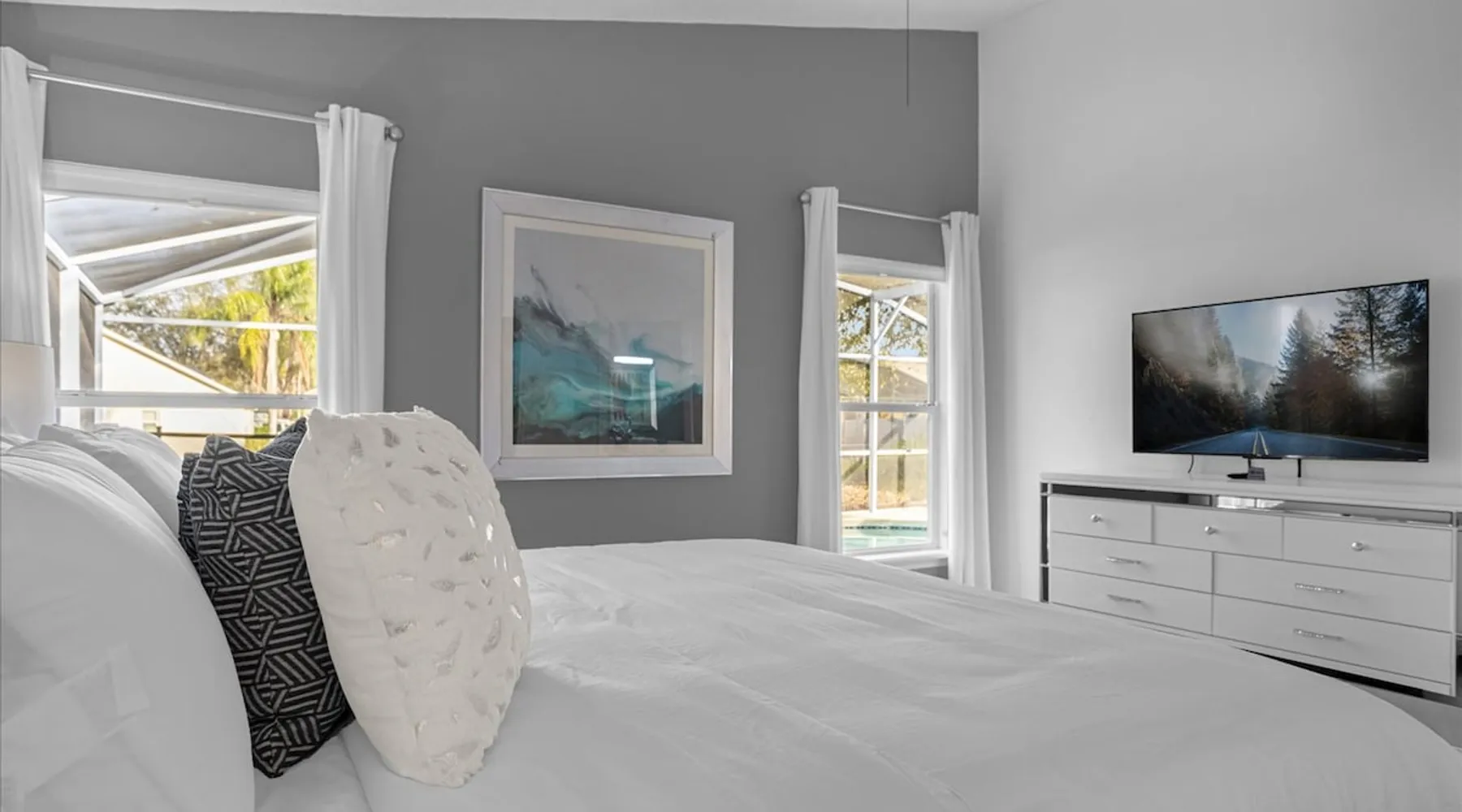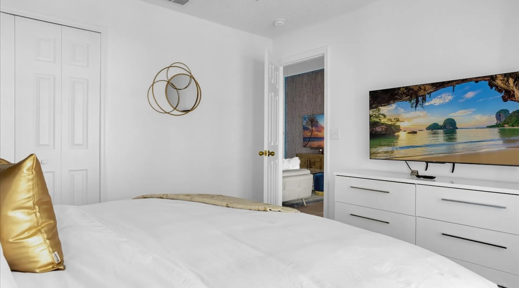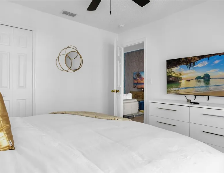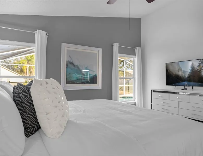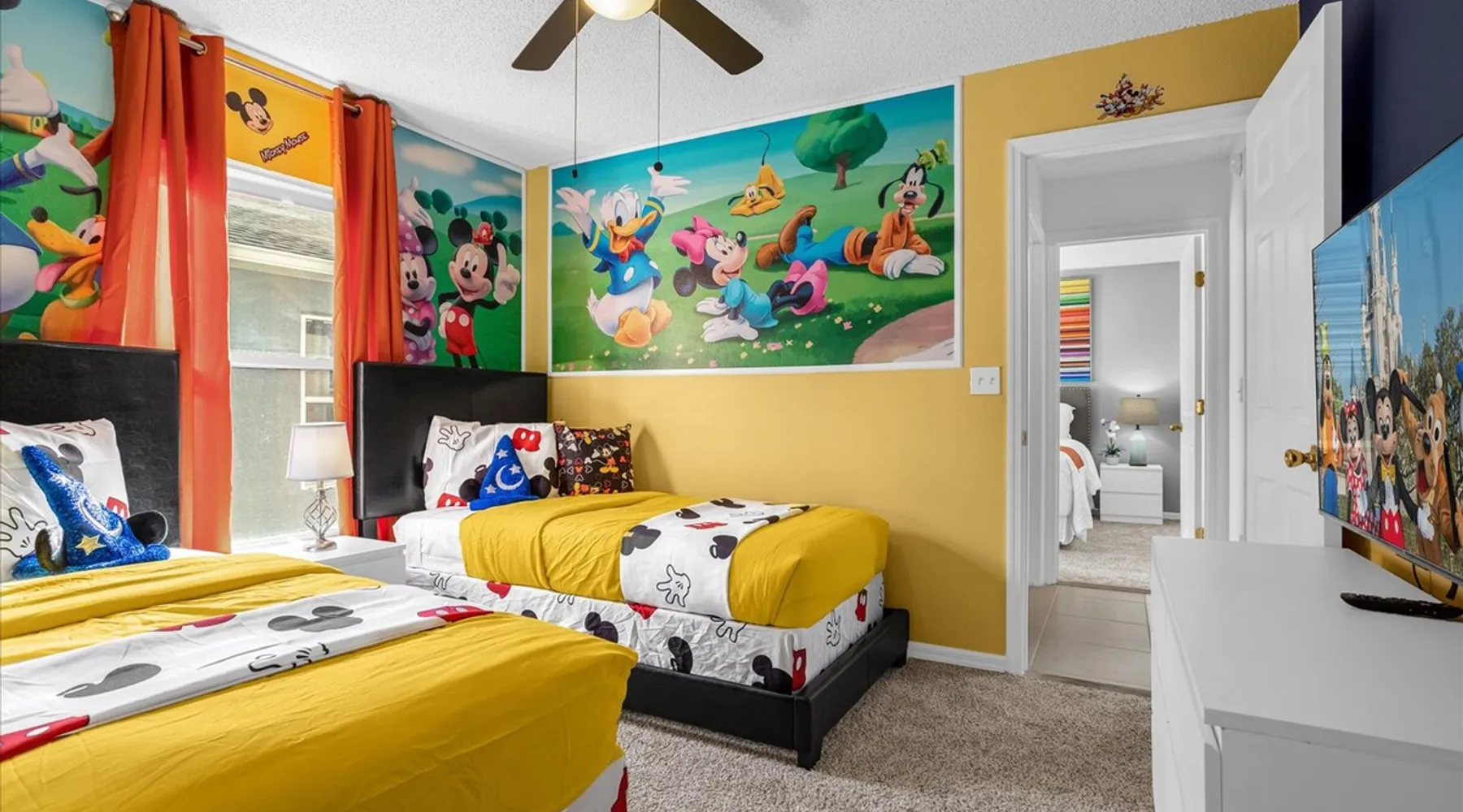 Welcome to Amazing Disney Star Wars Villa - Where Memories are Made! Escape to another galaxy when you stay at this spacious 5-bedroom, 2.5-bathroom Clermont vacation rental! Relax on the patio while enjoying a homemade breakfast prepared in this home's fully equipped kitchen. Then, after a day at the Theme Parks return home to the south facing pool with poolside cinema, enjoy family time before ending the night in the Star Wars-themed home theater, watching movies and making memories! The space 13.7 Miles to Disney | Wheelchair Accessible | South-Facing Heated Pool w/ Fee | Family Friendly - High Chair, Pack ‘n Play & Baby Utensils | Home Theater This entertainment-packed home is the ideal abode for Disney-loving groups in the Orlando area for Magic Kingdom adventures! This gorgeous villa includes 3 King rooms, Mickey Mouse Twin + Twin, Avengers Twin/Full + trundle bunk, private pool, Surround sound movie theater, Outdoor Poolside Cinema, fenced yard BEDROOMS: Bedroom 1: King Bed | Bedroom 2: King Bed | Bedroom 3: King Bed | Bedroom 4: 2 Twin Beds Mickey | Bedroom 5: Twin/Full + trundle Bunk Bed Avengers| Additional Sleeping: Pack 'n Play KITCHEN: Fully equipped, Keurig coffee maker, drip coffee maker, stainless steel appliances, dishware & flatware, spices OUTDOOR LIVING: Screened-in lanai, projector & screen, outdoor bar, lounge furniture, yard space INDOOR LIVING: Smart TVs in every room, modern furniture, home theater, dining table, roll-in shower, ceiling fans GENERAL: Free WiFi, washer & dryer, towels, linens, complimentary toiletries, central air conditioning/heat, keyless entry SUITABILITY: Step-free access, wheelchair accessible PARKING: Driveway (2 - 3 vehicles), street parking on the side street OPTIONAL: optional pool heat with fee $29/nt please contact Sherry to arrange, pool heat is weather permitting OPTIONAL: optional grill rental available $69/wk please contact Sherry to arrange grill rental Guest access Guests have access to the entire property. Keyless entry with a unique personal door code created for each guest. Other things to note Welcome to an Amazing Star Wars Adventure – Where Memories are Made! Escape to another galaxy when you stay at this spacious 5-bedroom, 2.5-bathroom Clermont vacation rental! Spend your mornings relaxing on the patio while enjoying a homemade breakfast prepared in this home's fully equipped kitchen. Then, head out for a magical adventure at Walt Disney World or Universal Orlando with your loved ones. Return home to splash around in the south facing heated pool before ending the night in the Star Wars-themed home theater, watching movies and making memories! 🚀 A Journey Through Time & Space As you explore this spacious, fully accessible 5-bedroom, 2.5-bathroom villa—all on one level, you’ll find magic around every corner. The Star Wars themed home theater transports you to galaxies far, far away, where surround sound and plush seating make every movie feel like an intergalactic experience. Meanwhile, the little ones discover their own realms of wonder—the Mickey Mouse room sparkles with Disney magic, while the Avengers room bursts with color and adventure straight out of a comic book! 🍽️ Comfort Meets Convenience This home is designed for both excitement and comfort. The fully equipped kitchen has everything you need to cook up delicious meals, whether it's a family breakfast before a theme park adventure or a cozy dinner after a day by the pool. A washer and dryer are also available, making longer stays effortless. 🌴 The Ultimate Backyard Escape Step outside, and the adventure continues. The heated, south-facing pool shimmers under the Florida sun, inviting you to take a dip. As the evening sets in, the magic unfolds: a poolside outdoor cinema flickers to life, playing your favorite movies under the stars. Float in the water or lounge on a cozy chair as you watch, popcorn in hand—your own private movie night, but with a tropical breeze. 🎢 Close to the Magic – Theme Parks, Golfing, and More! Located in the heart of the action, this villa is just a short drive from Walt Disney World Resort, Universal Orlando Resort, and Margaritaville, making it the perfect home base for theme park lovers. For those looking to unwind, world-class golf courses, scenic nature trails, and beautiful beaches are all within easy reach. Whether you're exploring Florida’s natural beauty or chasing thrills at the parks, adventure is never far away! ♿ Accessible & Thoughtfully Designed This villa ensures that every guest enjoys a comfortable and hassle-free experience. With a roll-in shower and a single-level layout, it's perfect for guests with mobility needs—no stairs, just seamless access to every part of the home. 🦖 More Than Just a Vacation—A Story to Tell Whether you’re unwinding in one of the three King Bedrooms, battling it out on Xbox, or sharing laughter by the pool, this home is more than just a place to stay—it’s a place where your family stories are made. Are you ready to write your own adventure? Book now and make memories you’ll never forget! ✨🎬 House rules : No smoking/vaping, No pets, No parties/events Community quiet hours 10pm-9am Minimum age of primary renter 25+, photo ID and selfie required for check in Rental agreement is required and will be sent for guest signature within 72 hours $300 refundable security deposit authorization hold will be processed 1 day prior to arrival by FLORIDA THEME PARK VILLAS