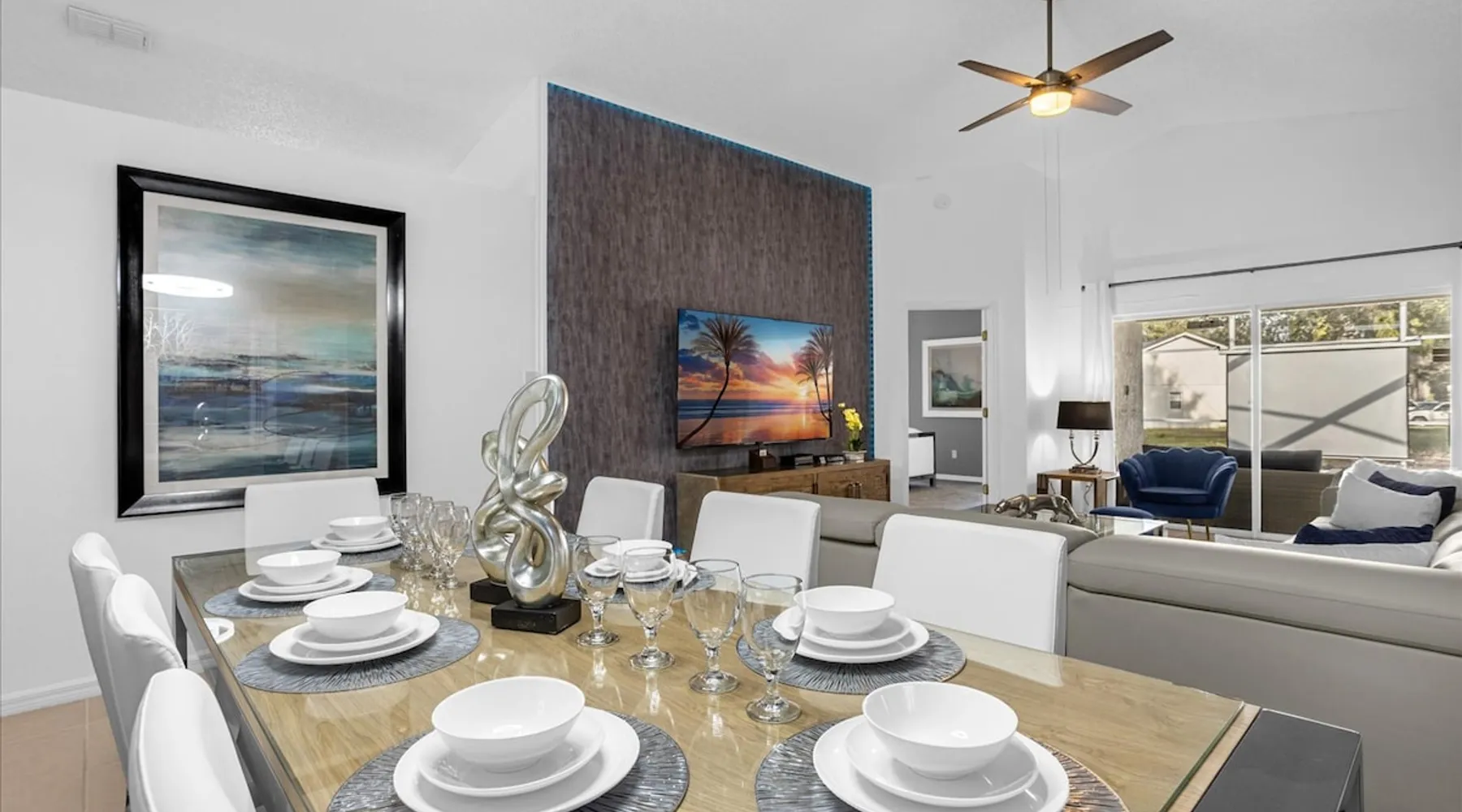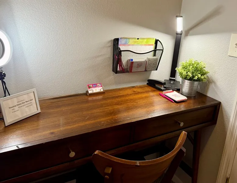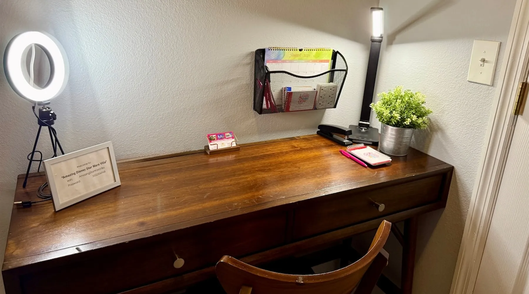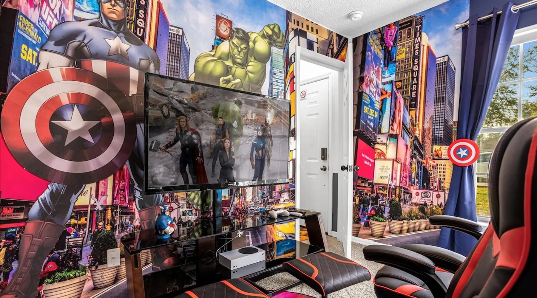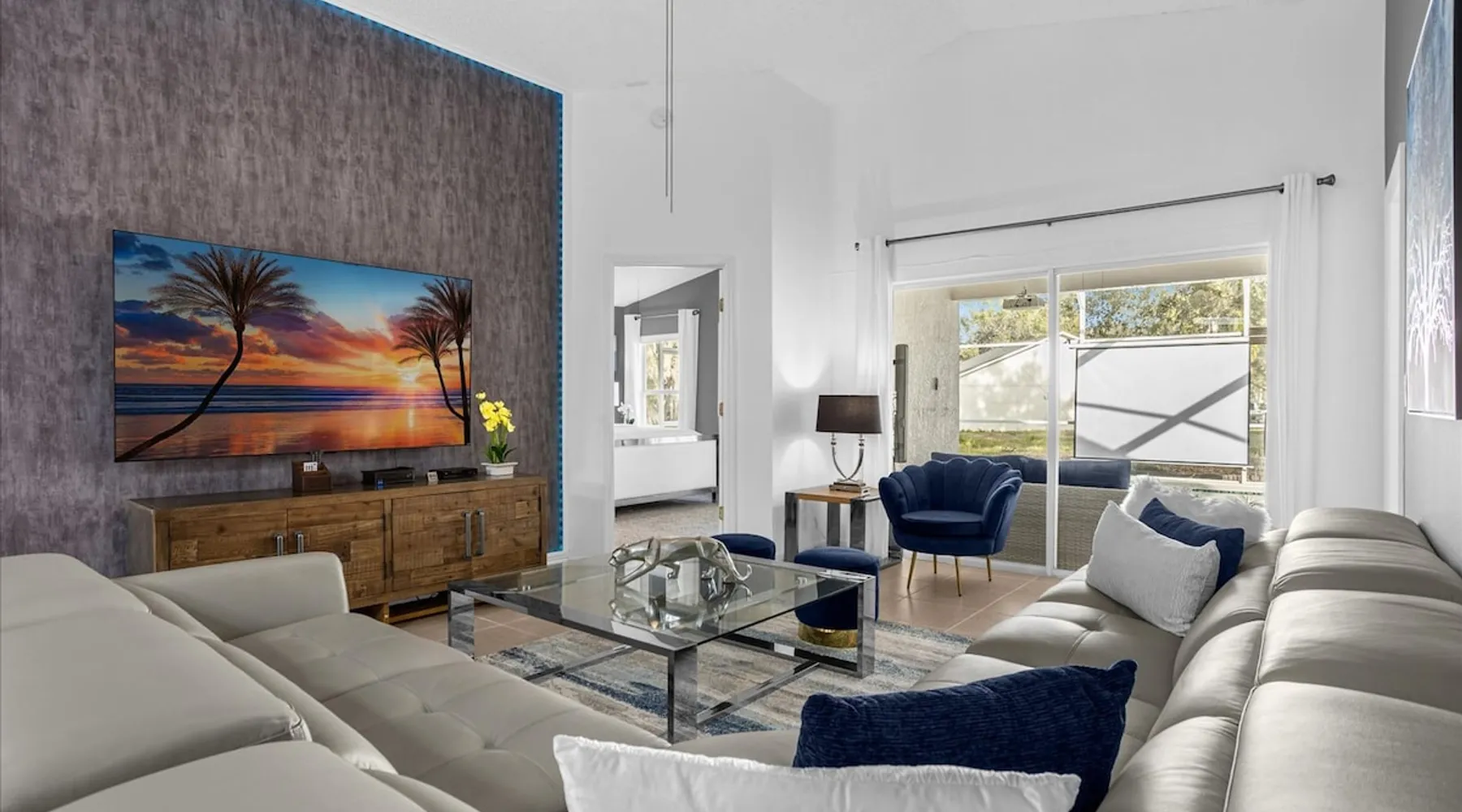 Welcome to Amazing Disney Star Wars Villa - Where Memories are Made! Escape to another galaxy when you stay at this spacious 5-bedroom, 2.5-bathroom Clermont vacation rental! Relax on the patio while enjoying a homemade breakfast prepared in this home's fully equipped kitchen. Then, after a day at the Theme Parks return home to the south facing pool with poolside cinema, enjoy family time before ending the night in the Star Wars-themed home theater, watching movies and making memories! The space 13.7 Miles to Disney | Wheelchair Accessible | South-Facing Heated Pool w/ Fee | Family Friendly - High Chair, Pack ‘n Play & Baby Utensils | Home Theater This entertainment-packed home is the ideal abode for Disney-loving groups in the Orlando area for Magic Kingdom adventures! This gorgeous villa includes 3 King rooms, Mickey Mouse Twin + Twin, Avengers Twin/Full + trundle bunk, private pool, Surround sound movie theater, Outdoor Poolside Cinema, fenced yard BEDROOMS: Bedroom 1: King Bed | Bedroom 2: King Bed | Bedroom 3: King Bed | Bedroom 4: 2 Twin Beds Mickey | Bedroom 5: Twin/Full + trundle Bunk Bed Avengers| Additional Sleeping: Pack 'n Play KITCHEN: Fully equipped, Keurig coffee maker, drip coffee maker, stainless steel appliances, dishware & flatware, spices OUTDOOR LIVING: Screened-in lanai, projector & screen, outdoor bar, lounge furniture, yard space INDOOR LIVING: Smart TVs in every room, modern furniture, home theater, dining table, roll-in shower, ceiling fans GENERAL: Free WiFi, washer & dryer, towels, linens, complimentary toiletries, central air conditioning/heat, keyless entry SUITABILITY: Step-free access, wheelchair accessible PARKING: Driveway (2 - 3 vehicles), street parking on the side street OPTIONAL: optional pool heat with fee $29/nt please contact Sherry to arrange, pool heat is weather permitting OPTIONAL: optional grill rental available $69/wk please contact Sherry to arrange grill rental Guest access Guests have access to the entire property. Keyless entry with a unique personal door code created for each guest. Other things to note Welcome to an Amazing Star Wars Adventure – Where Memories are Made! Escape to another galaxy when you stay at this spacious 5-bedroom, 2.5-bathroom Clermont vacation rental! Spend your mornings relaxing on the patio while enjoying a homemade breakfast prepared in this home's fully equipped kitchen. Then, head out for a magical adventure at Walt Disney World or Universal Orlando with your loved ones. Return home to splash around in the south facing heated pool before ending the night in the Star Wars-themed home theater, watching movies and making memories! 🚀 A Journey Through Time & Space As you explore this spacious, fully accessible 5-bedroom, 2.5-bathroom villa—all on one level, you’ll find magic around every corner. The Star Wars themed home theater transports you to galaxies far, far away, where surround sound and plush seating make every movie feel like an intergalactic experience. Meanwhile, the little ones discover their own realms of wonder—the Mickey Mouse room sparkles with Disney magic, while the Avengers room bursts with color and adventure straight out of a comic book! 🍽️ Comfort Meets Convenience This home is designed for both excitement and comfort. The fully equipped kitchen has everything you need to cook up delicious meals, whether it's a family breakfast before a theme park adventure or a cozy dinner after a day by the pool. A washer and dryer are also available, making longer stays effortless. 🌴 The Ultimate Backyard Escape Step outside, and the adventure continues. The heated, south-facing pool shimmers under the Florida sun, inviting you to take a dip. As the evening sets in, the magic unfolds: a poolside outdoor cinema flickers to life, playing your favorite movies under the stars. Float in the water or lounge on a cozy chair as you watch, popcorn in hand—your own private movie night, but with a tropical breeze. 🎢 Close to the Magic – Theme Parks, Golfing, and More! Located in the heart of the action, this villa is just a short drive from Walt Disney World Resort, Universal Orlando Resort, and Margaritaville, making it the perfect home base for theme park lovers. For those looking to unwind, world-class golf courses, scenic nature trails, and beautiful beaches are all within easy reach. Whether you're exploring Florida’s natural beauty or chasing thrills at the parks, adventure is never far away! ♿ Accessible & Thoughtfully Designed This villa ensures that every guest enjoys a comfortable and hassle-free experience. With a roll-in shower and a single-level layout, it's perfect for guests with mobility needs—no stairs, just seamless access to every part of the home. 🦖 More Than Just a Vacation—A Story to Tell Whether you’re unwinding in one of the three King Bedrooms, battling it out on Xbox, or sharing laughter by the pool, this home is more than just a place to stay—it’s a place where your family stories are made. Are you ready to write your own adventure? Book now and make memories you’ll never forget! ✨🎬 House rules : No smoking/vaping, No pets, No parties/events Community quiet hours 10pm-9am Minimum age of primary renter 25+, photo ID and selfie required for check in Rental agreement is required and will be sent for guest signature within 72 hours $300 refundable security deposit authorization hold will be processed 1 day prior to arrival by FLORIDA THEME PARK VILLAS