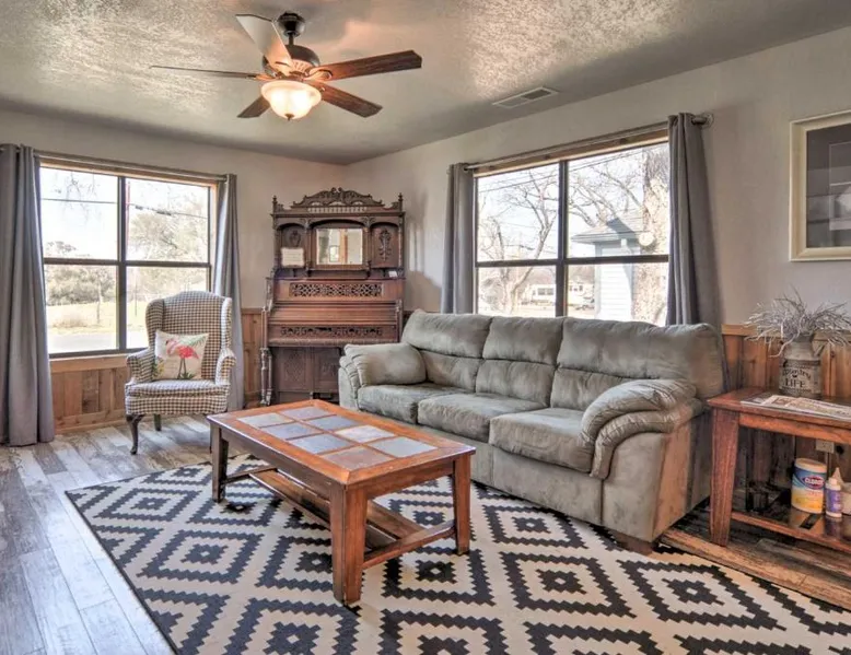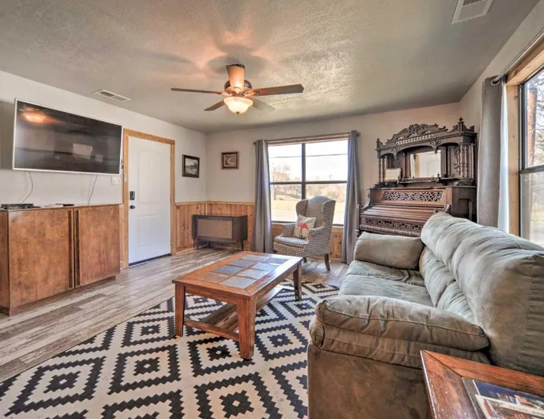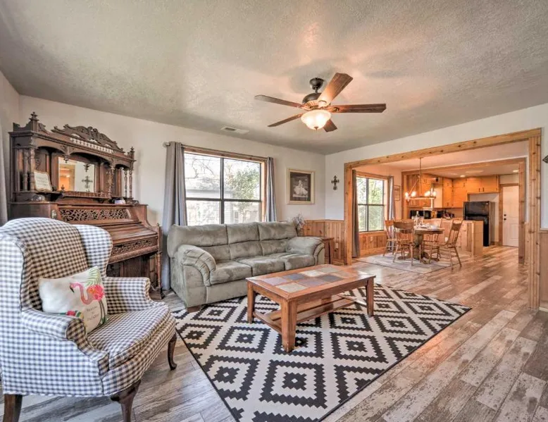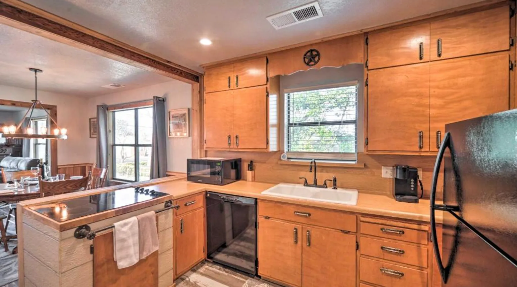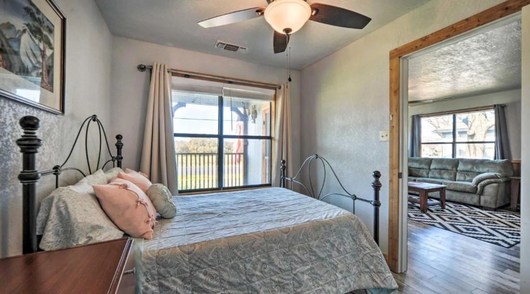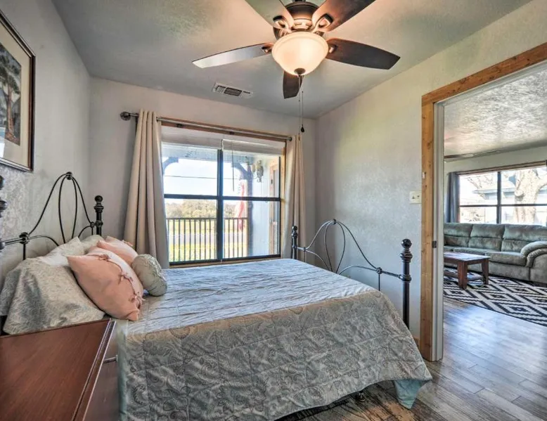 Comfortable Living: The Loft! in Fredericksburg offers a two-bedroom holiday home with a living room. Guests enjoy free WiFi, air-conditioning, and a fully equipped kitchen with a coffee machine, refrigerator, microwave, dishwasher, oven, stovetop, and toaster. Modern Amenities: The property includes a hairdryer, free toiletries, TV, and a private entrance. Additional features include a wardrobe, kitchenware, and a shower. Convenient Location: Located 68 mi from San Antonio International Airport, The Loft! is 19 mi from Enchanted Rock State Natural Area. Paid on-site parking is available. Featuring a private entrance, this air-conditioned holiday home consists of 1 living room, 2 separate bedrooms and 1 bathroom with a shower and a hairdryer. In the well-fitted kitchen, guests will find a stovetop, a refrigerator, a dishwasher and kitchenware. The holiday home provides a flat-screen TV with cable channels, a coffee machine, a wardrobe and heating. The unit offers 3 beds.