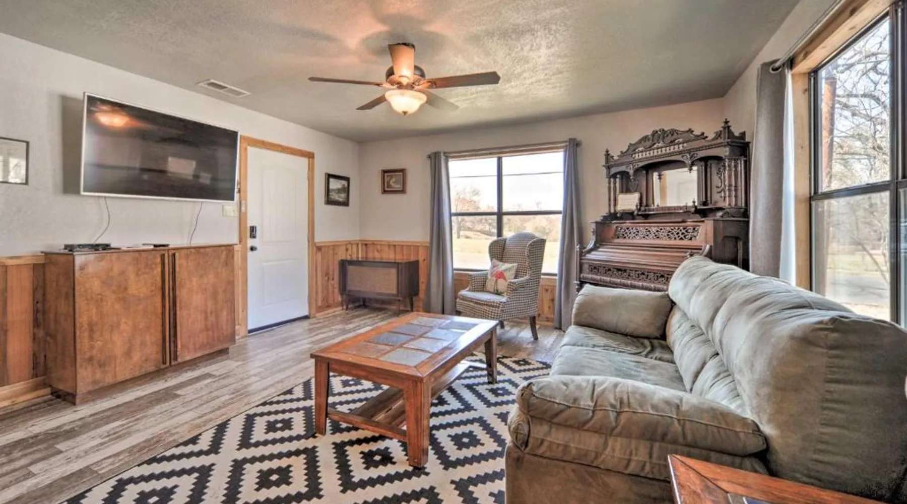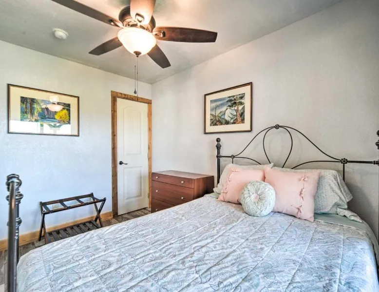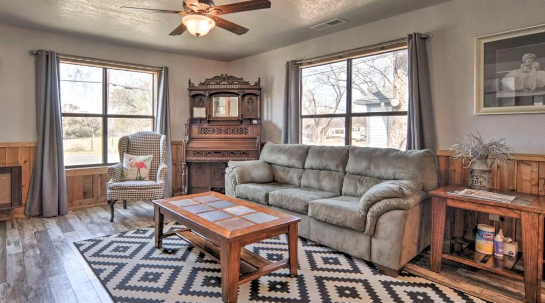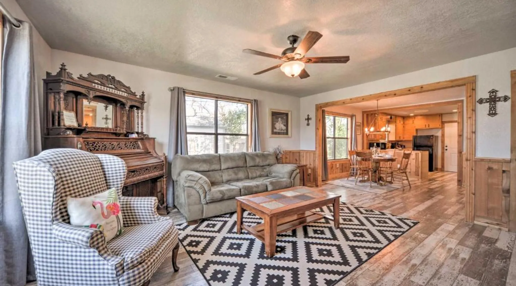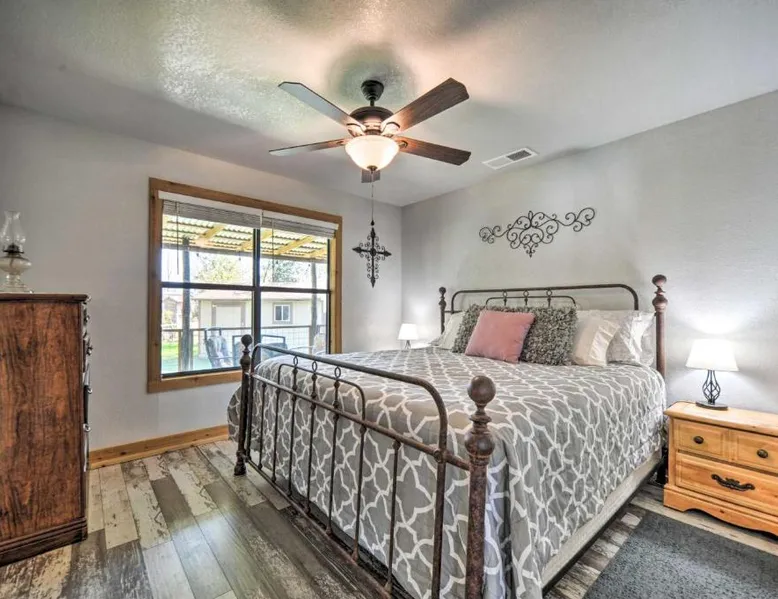 Comfortable Living: The Loft! in Fredericksburg offers a two-bedroom holiday home with a living room. Guests enjoy free WiFi, air-conditioning, and a fully equipped kitchen with a coffee machine, refrigerator, microwave, dishwasher, oven, stovetop, and toaster. Modern Amenities: The property includes a hairdryer, free toiletries, TV, and a private entrance. Additional features include a wardrobe, kitchenware, and a shower. Convenient Location: Located 68 mi from San Antonio International Airport, The Loft! is 19 mi from Enchanted Rock State Natural Area. Paid on-site parking is available. Featuring a private entrance, this air-conditioned holiday home consists of 1 living room, 2 separate bedrooms and 1 bathroom with a shower and a hairdryer. In the well-fitted kitchen, guests will find a stovetop, a refrigerator, a dishwasher and kitchenware. The holiday home provides a flat-screen TV with cable channels, a coffee machine, a wardrobe and heating. The unit offers 3 beds.