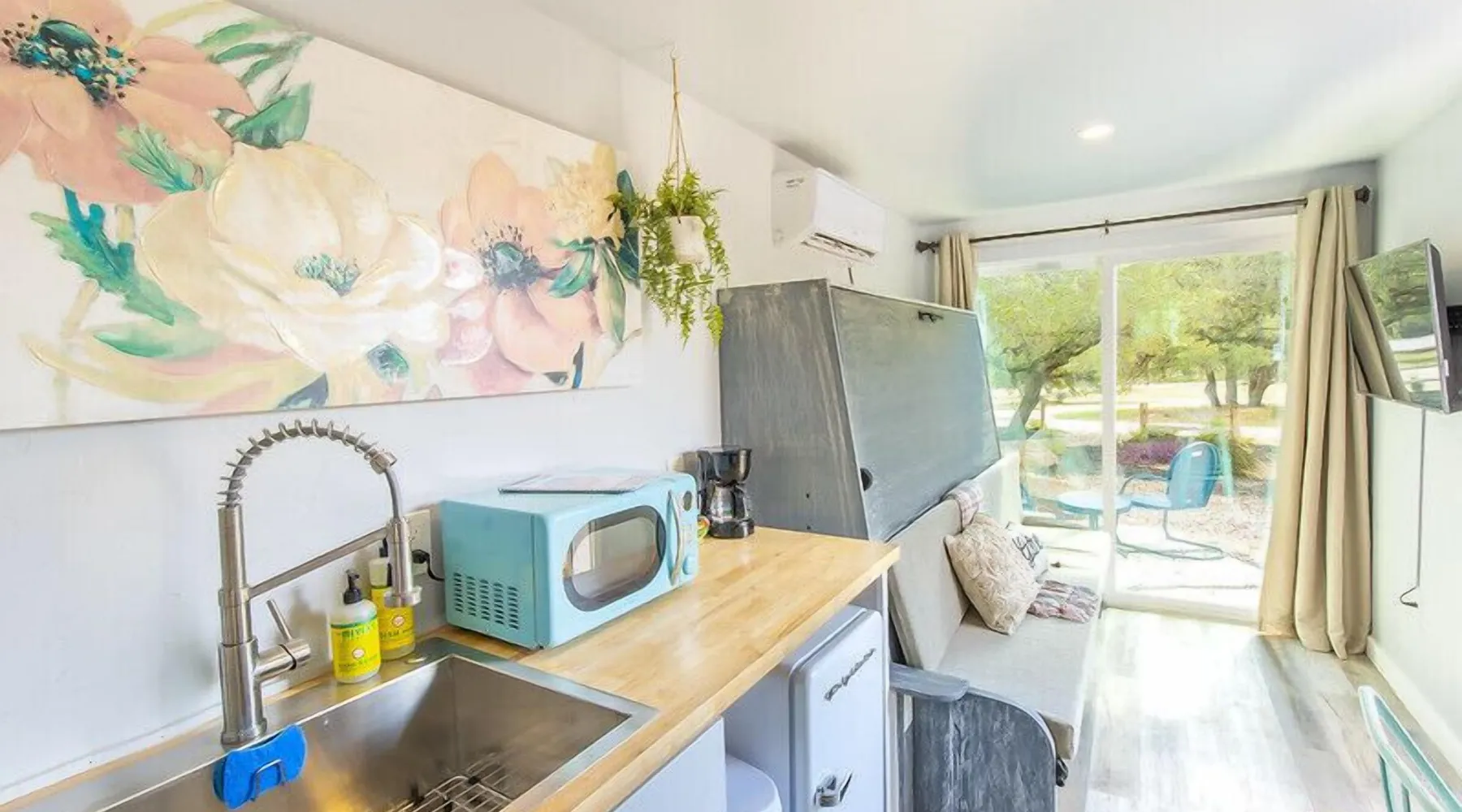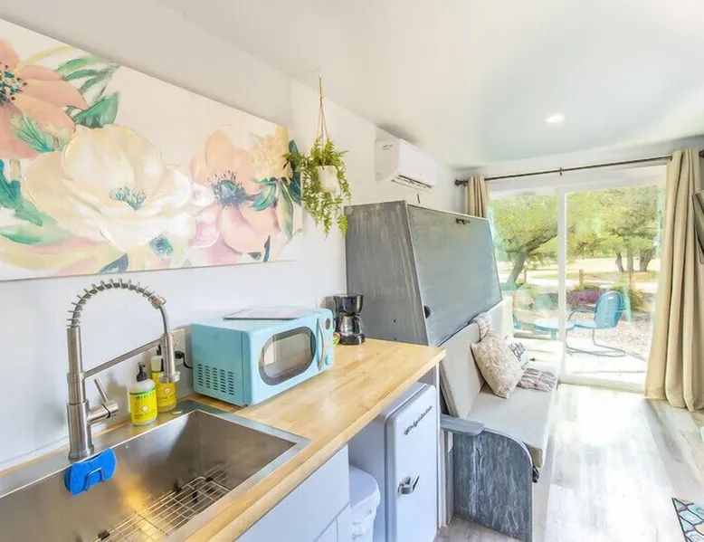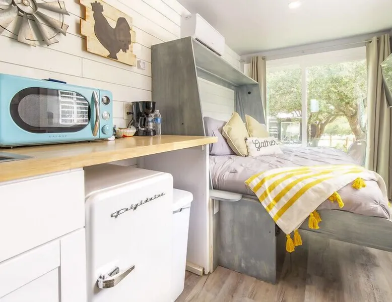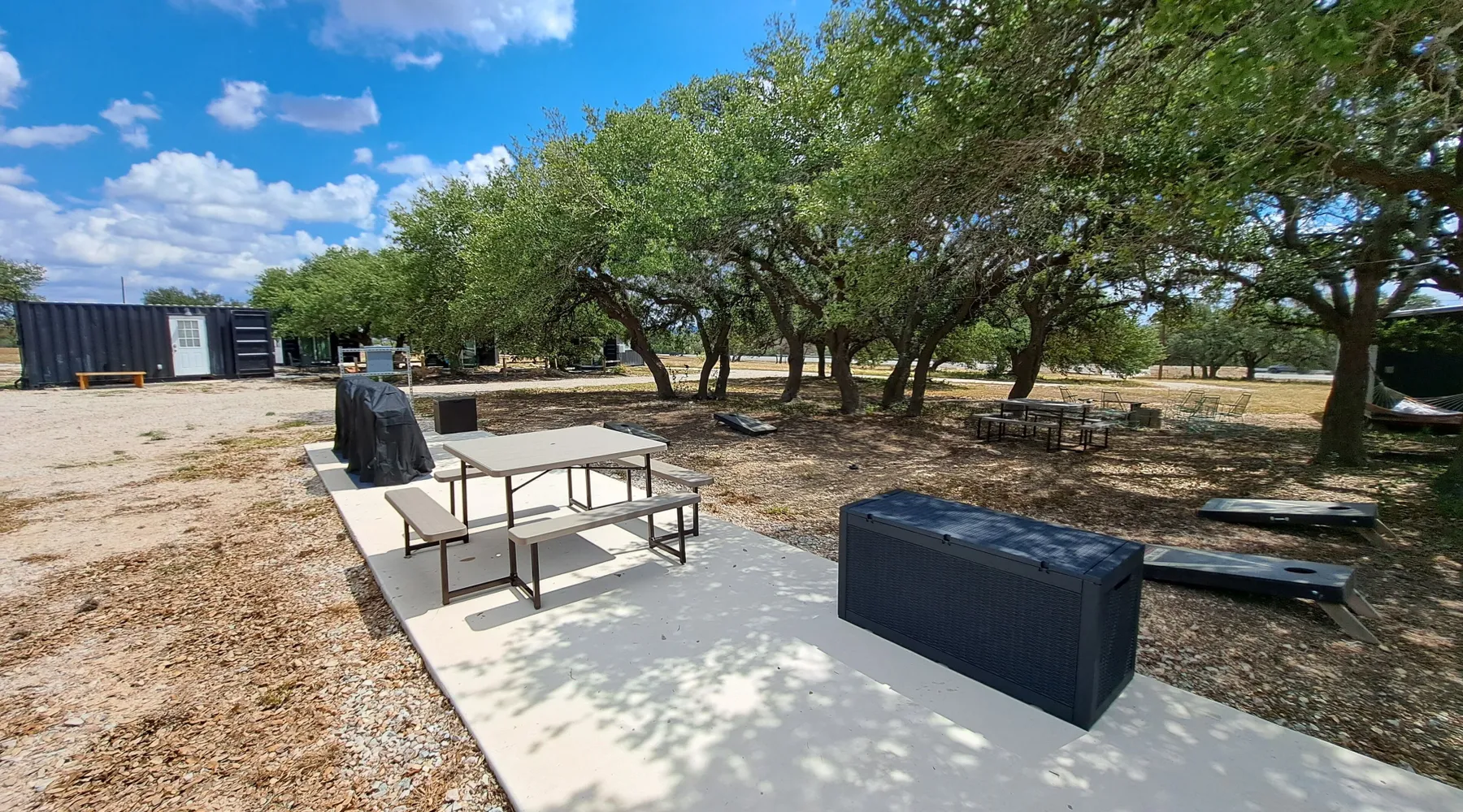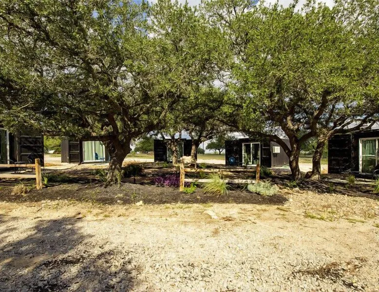 Welcome to The Container Retreat @ 290 Wine Trail! The perfect place to stay as you explore the beautiful Texas Hill Country and its amazing wineries, parks, shops and people. We are happy to share our special getaway with you and truly hope you enjoy it as much as we do. We are right in the middle of over 50 Texas Hill Country wineries, three of which are within walking distance: Blue Lotus Winery and Silver Dollar Winery to the east and Untamed to the west. So, whether you are looking for a quick getaway or a home base while you attend one of the many festivals and events in the surrounding areas, we are the right choice. Our containers are arranged in pods of five surrounding majestic oak trees and lush landscaping with just enough ambient lighting to make it relaxing and comfortable. If you want to hang out, just walk over to the common area where you will find open space, chairs, a hammock, and our custom Container Retreat cornhole boards. Our mattresses were custom handmade locally from Cantwell Mattress in San Antonio. Our shampoo, conditioner and body wash are made with 100% Pure Morocco Argan Oil and are 100% Vegan & Cruelty-Free. In addition, our hand soap is made with essential oils, aloe vera, olive oil, and without parabens, phthalates, or artificial colors. We have provided everything you need in our kitchenette, including a corkscrew and wine pourer to enjoy your Texas Hill Country wine. Couples get away, check! Girl’s weekend, check! Bachelor or Bachelorette parties, check! Whatever the occasion, we are the right choice. If you need to book larger parties, we have twelve other listings and can accommodate groups of up to thirty-two. Photos are representative of Containers Two - Eight and décor may vary, but the layout is the same.