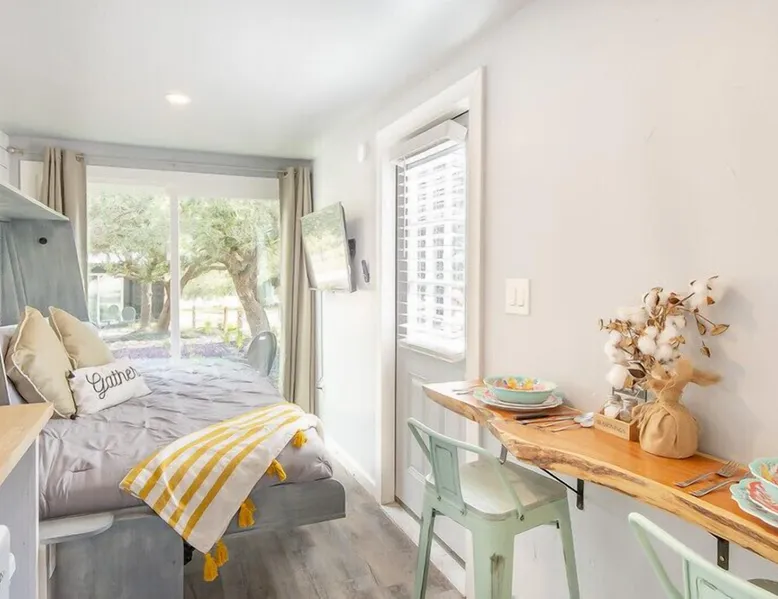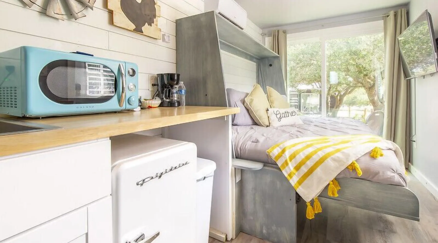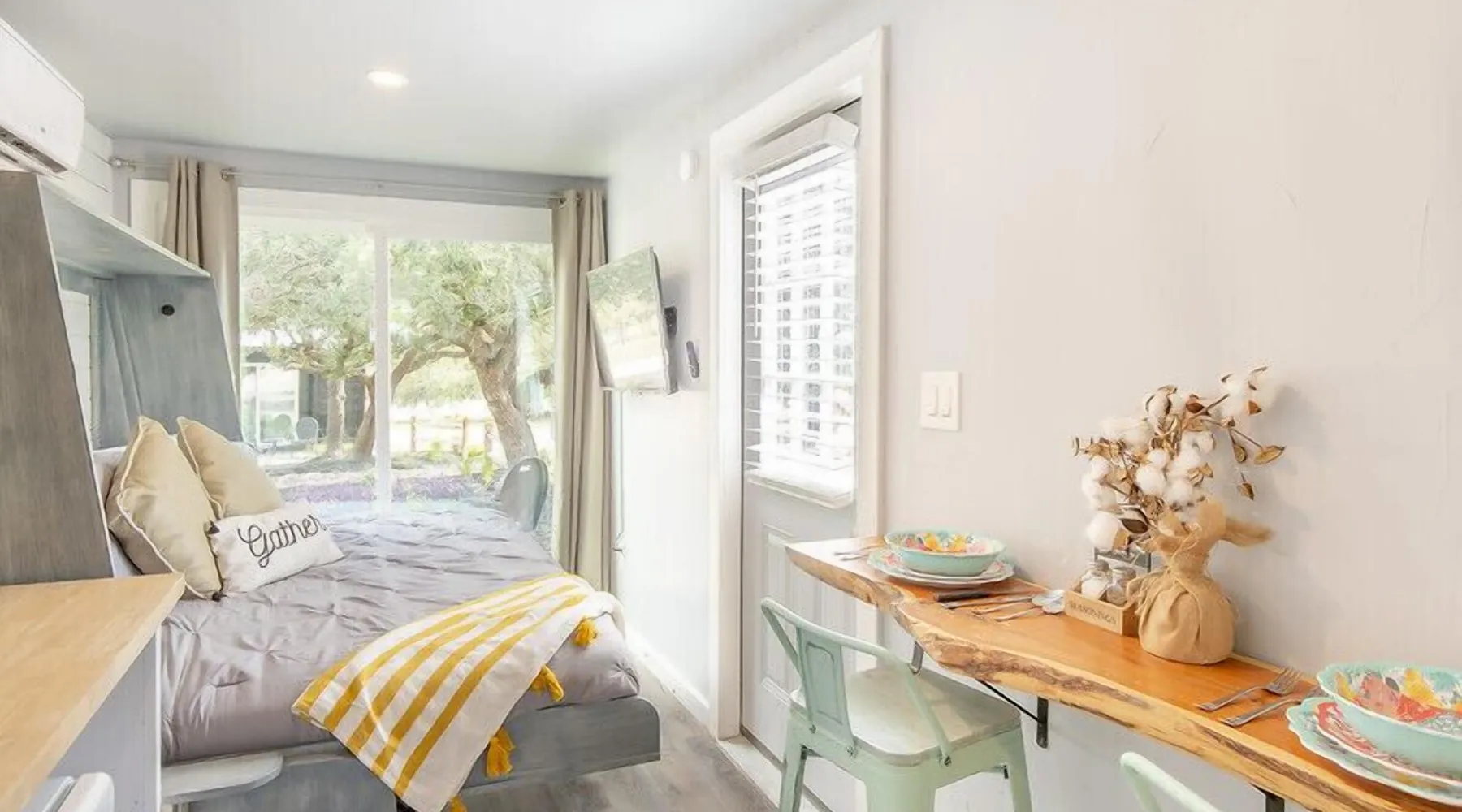 Welcome to The Container Retreat @ 290 Wine Trail! The perfect place to stay as you explore the beautiful Texas Hill Country and its amazing wineries, parks, shops and people. We are happy to share our special getaway with you and truly hope you enjoy it as much as we do. We are right in the middle of over 50 Texas Hill Country wineries, three of which are within walking distance: Blue Lotus Winery and Silver Dollar Winery to the east and Untamed to the west. So, whether you are looking for a quick getaway or a home base while you attend one of the many festivals and events in the surrounding areas, we are the right choice. Our containers are arranged in pods of five surrounding majestic oak trees and lush landscaping with just enough ambient lighting to make it relaxing and comfortable. If you want to hang out, just walk over to the common area where you will find open space, chairs, a hammock, and our custom Container Retreat cornhole boards. Our mattresses were custom handmade locally from Cantwell Mattress in San Antonio. Our shampoo, conditioner and body wash are made with 100% Pure Morocco Argan Oil and are 100% Vegan & Cruelty-Free. In addition, our hand soap is made with essential oils, aloe vera, olive oil, and without parabens, phthalates, or artificial colors. We have provided everything you need in our kitchenette, including a corkscrew and wine pourer to enjoy your Texas Hill Country wine. Couples get away, check! Girl’s weekend, check! Bachelor or Bachelorette parties, check! Whatever the occasion, we are the right choice. If you need to book larger parties, we have twelve other listings and can accommodate groups of up to thirty-two. Photos are representative of Containers Two - Eight and décor may vary, but the layout is the same.