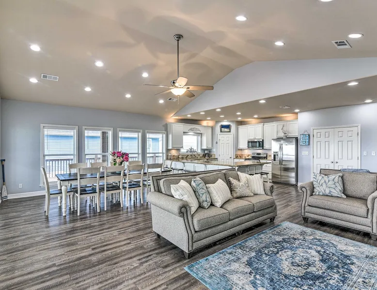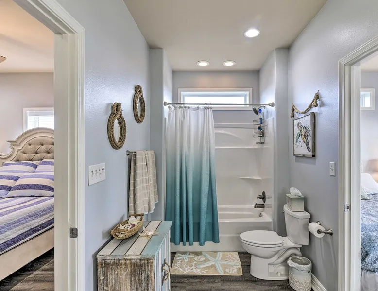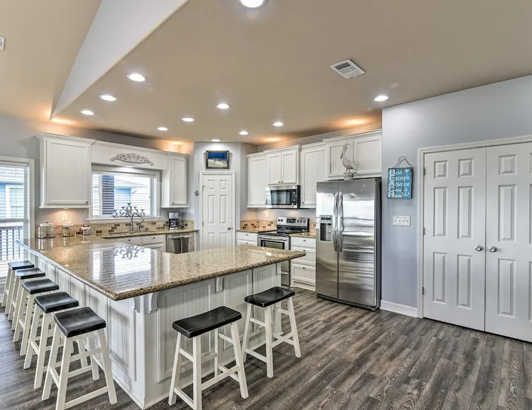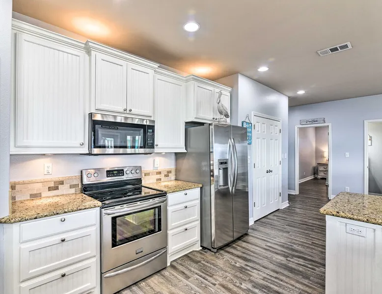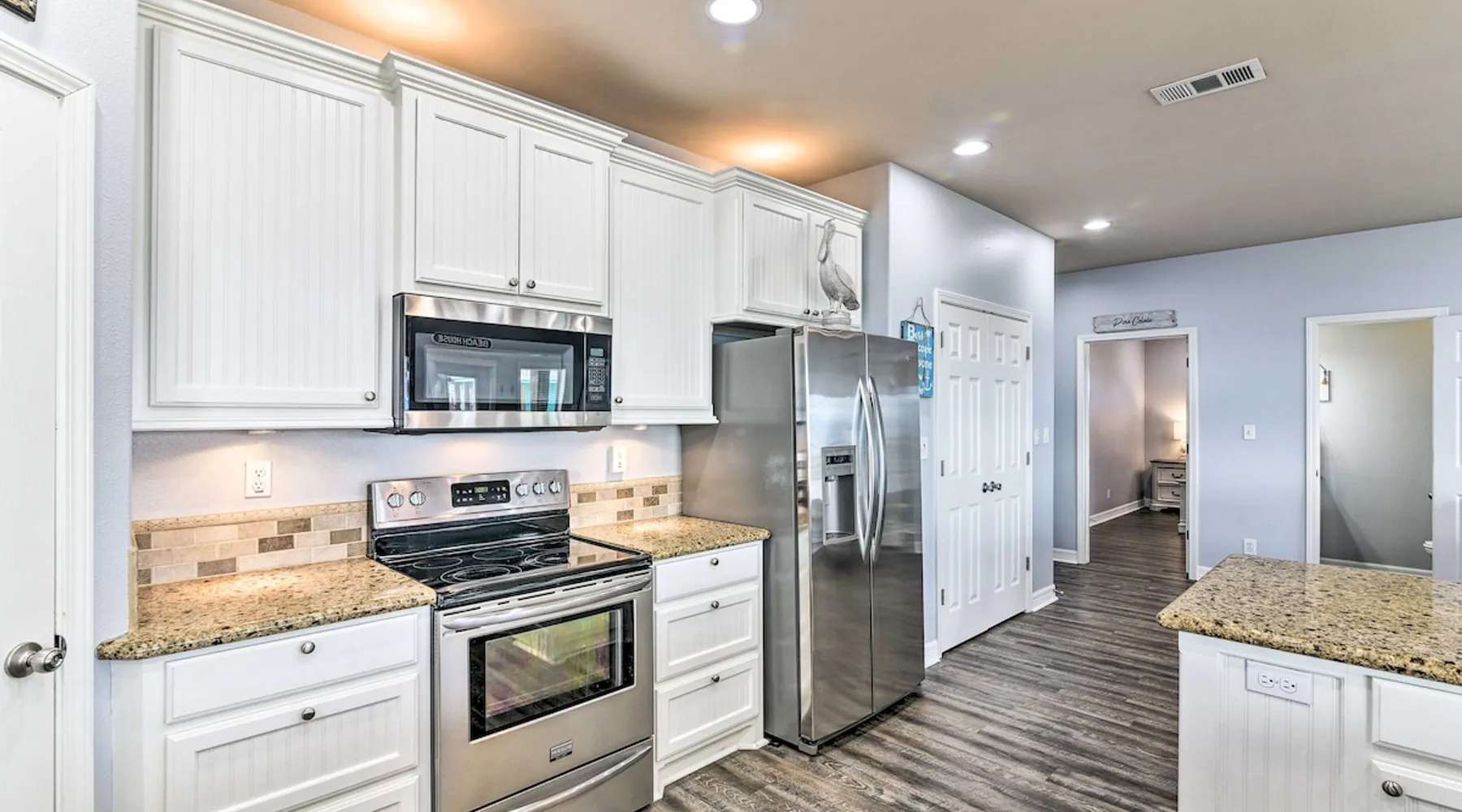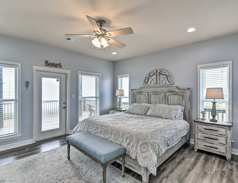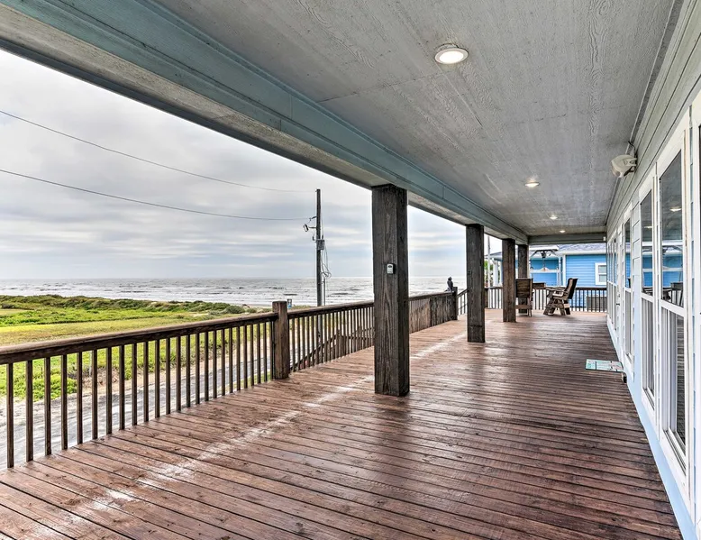 Wake up to sunshine and the sound of crashing waves when you stay at 'Sunny Beaches,' a 4-bedroom, 3.5-bath vacation rental just steps away from Crystal Beach! Spend your days walking along the white sand beaches of the Gulf Coast, exploring the nearby nature preserves, or lounging on the private deck of this beachy home. After the sun goes down, check out the local eateries or head back for a delicious home-cooked meal prepared in the impressive kitchen of this stunning escape. The space 2,100 Sq Ft | Central Location | Ocean Views | Updated Kitchen Appliances Bedroom 1: King Bed | Bedroom 2: King Bed | Bedroom 3: 2 Full Beds | Bedroom 4: Queen Bed | Additional Sleeping: 2 Queen Air Mattresses, Pack ‘n Play OUTDOOR LIVING: Spacious deck, covered seating area, dining space, sand shower, foot rinsing station KITCHEN: New refrigerator, dishwasher & stove, microwave, cooking basics, coffee maker, blender, toaster, high chair, island w/ seating, dishware/flatware, paper towels/trash bags INDOOR LIVING: Smart TV (use your own logins), large dining table, open floor plan, beachy decor, vaulted ceiling GENERAL: Free WiFi, linens, towels, washer & dryer, central air conditioning, electric heating, ceiling fans, hair dryer FAQ: Stairs required to access, single-story home, 7 exterior security cameras (facing out), strict maximum occupancy PARKING: Driveway (3 vehicles), no parking under the house or staircase or on grass, no electric vehicle charging allowed Guest access Guests will have access to the entire property via lockbox Other things to note - No smoking - No pets allowed - No events, parties, or large gatherings - No grills, griddles, or smokers allowed on the wood deck or inside the house - Additional fees and taxes may apply - Photo ID may be required upon check-in - NOTE: This property requires stairs to access - NOTE: This property sleeps 10 guests in 5 beds, with room for 14 total by using the queen air mattresses - NOTE: Your safety matters. This property features 7 exterior security cameras. Camera 1 is facing the front entrance area, camera 2 is facing the east deck, camera 3 is facing the south deck and side door, camera 4 is facing the garage and driveway, camera 5 is under the house facing the south view, camera 6 is facing the backyard, and camera 7 is on the front facing the front deck and staircase. The cameras are outward facing and do not look into interior spaces. The cameras record video and audio when activated by motion - NOTE: This property has a strict 14-person maximum occupancy at all times - NOTE: You will need to bring your own streaming device to use on the living room TV or use your credentials to access your streaming platform