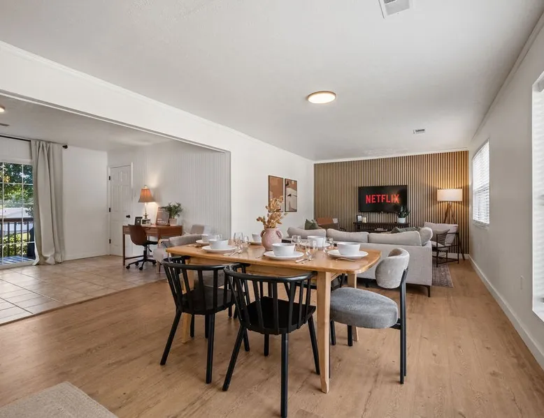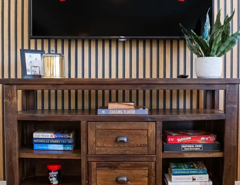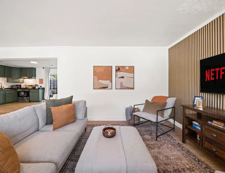 Adventure meets comfort just 10–15 minutes from Fayetteville and New River Gorge National Park. This modern 3-bedroom retreat in Oak Hill blends clean design, fast Wi-Fi, and cozy firepit evenings — perfect for couples, friends, or remote workers seeking a stylish base near the Gorge. The space Welcome to Delightful Gorge Getaway, your stylish home base in Oak Hill, WV — just 15 minutes from Fayetteville and New River Gorge National Park. Perfectly located for couples, remote workers, and small groups, this freshly renovated three-bedroom retreat blends modern comfort with a relaxed, welcoming feel. Whether you’re rafting at ACE Adventure Resort, hiking world-class trails, or gathering by the firepit, this is your cozy hub for it all. After a day outdoors, unwind in the inviting living room with a 50" Roku Smart TV, enjoy movie nights by the fire, or plan your next day’s adventures at the dedicated desk with fast Wi-Fi. The open layout fills the home with natural light, while the fully stocked kitchen makes home-cooked meals easy and fun. What Guests Love • Bright, modern interior with designer touches and a mountain-inspired style • Fast Wi-Fi and dedicated workspace — perfect for remote work or extended stays • Fully equipped kitchen for easy cooking and connection • Firepit with string lights for relaxed evenings outdoors • Smart-lock check-in for seamless arrivals anytime • Driveway parking for up to four vehicles • 10–15 minutes to Fayetteville, New River Gorge Bridge, and ACE Adventure Resort Sleep & Refresh Thoughtfully designed for comfort and flexibility — ideal for couples, friends, or extended stays, with space for up to eight guests. Each of the three bedrooms includes a queen bed, blackout curtains, and soft bedding for a restful night’s sleep. A fourth queen bed provides added flexibility for small groups or those needing extra space. The updated bathroom features a tub/shower combo, spacious vanity, and fresh towels. Explore Oak Hill and Beyond Located in a convenient Oak Hill neighborhood near everything you need: • 5 min → groceries, coffee, and local dining • 10–15 min → Fayetteville, ACE Adventure Resort, and New River Gorge Bridge • 25–30 min → Summersville Lake and Winterplace Ski Resort Whether you’re working remotely, planning a long weekend, or exploring the Gorge with friends, Delightful Gorge Getaway offers the comfort, style, and location to make your New River Gorge adventure easy and memorable. Have questions or want local tips? Message me anytime — I love helping guests plan the perfect New River Gorge stay! Guest access Guests have full, private access to the entire home, including: - Washer and dryer - Driveway parking - Fenced in yard (please note: one corner of the fence is lower than the rest and may not contain dogs that jump—best for supervised play) - Fire pit and outdoor seating - Starter paper goods, soaps, and basic pantry spices Please note: A few owner closets are locked and not available to guests. Other things to note We’ve kept everything simple so you can focus on the fun: - Driveway fits up to 4 cars; no street parking - Bring your own firewood or charcoal for the grill and firepit - One exterior camera faces the driveway for safety - The fenced yard is great for dogs, but please supervise jumpers - You may occasionally hear neighborhood dogs
