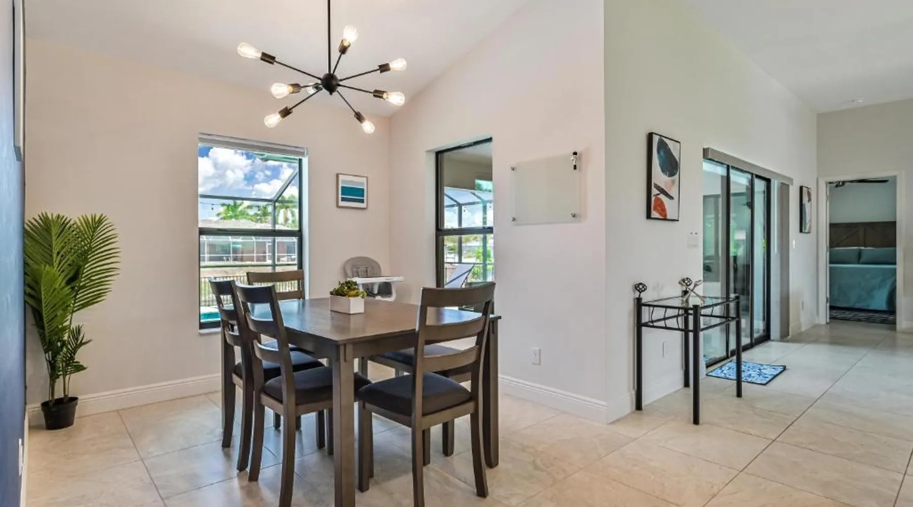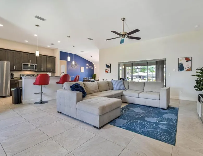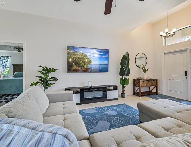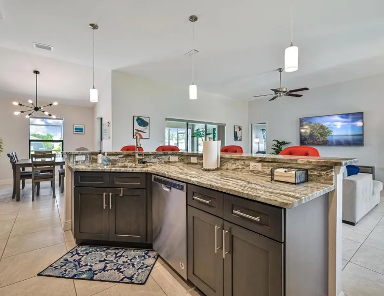 Spacious Accommodations: Centrally Located Cape Coral Oasis on Fresh Water in Cape Coral offers a spacious holiday home with three bedrooms and two bathrooms. The property includes a comfortable living room and family rooms, ensuring ample space for all guests. Outdoor Amenities: Guests can enjoy a sun terrace and a year-round outdoor swimming pool with stunning views. The outdoor seating area provides a relaxing space, while the waterpark offers entertainment for children. Convenient Facilities: The holiday home features air-conditioning, a fully equipped kitchen, and a washing machine. Additional amenities include a spa bath, barbecue, and free on-site private parking. Nearby Attractions: Located 22 mi from Southwest Florida International Airport, the property is close to Fishermen's Village (27 mi), Sanibel Chamber Of Commerce (21 mi), Sanibel Lighthouse (22 mi), and Bailey Matthews Shell Museum (24 mi). This holiday home's special features are the pool with a view and the spa bath. Guests will find a stovetop, a refrigerator, a dishwasher and kitchenware in the fully equipped kitchen. The holiday home also comes with a barbecue. The spacious air-conditioned holiday home features a flat-screen TV, a washing machine, a private entrance, a tea and coffee maker as well as pool views. The unit has 5 beds.