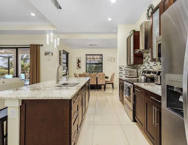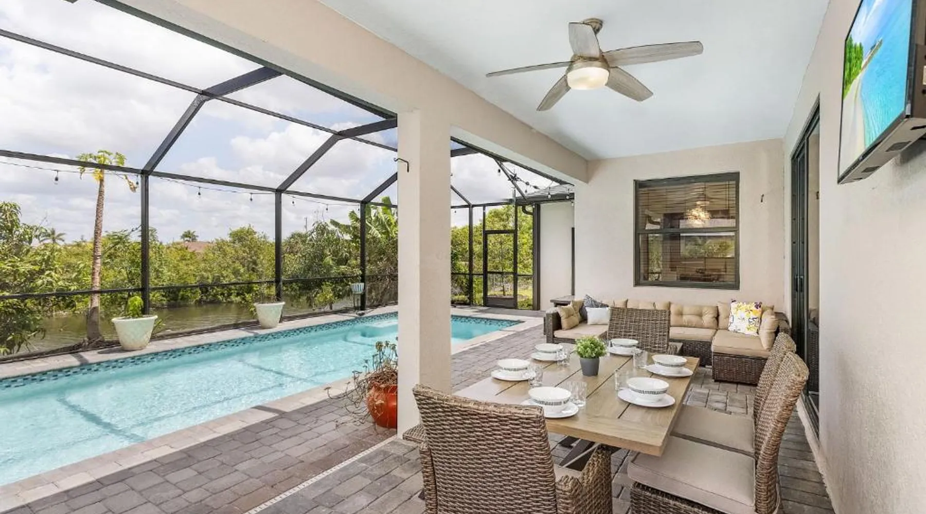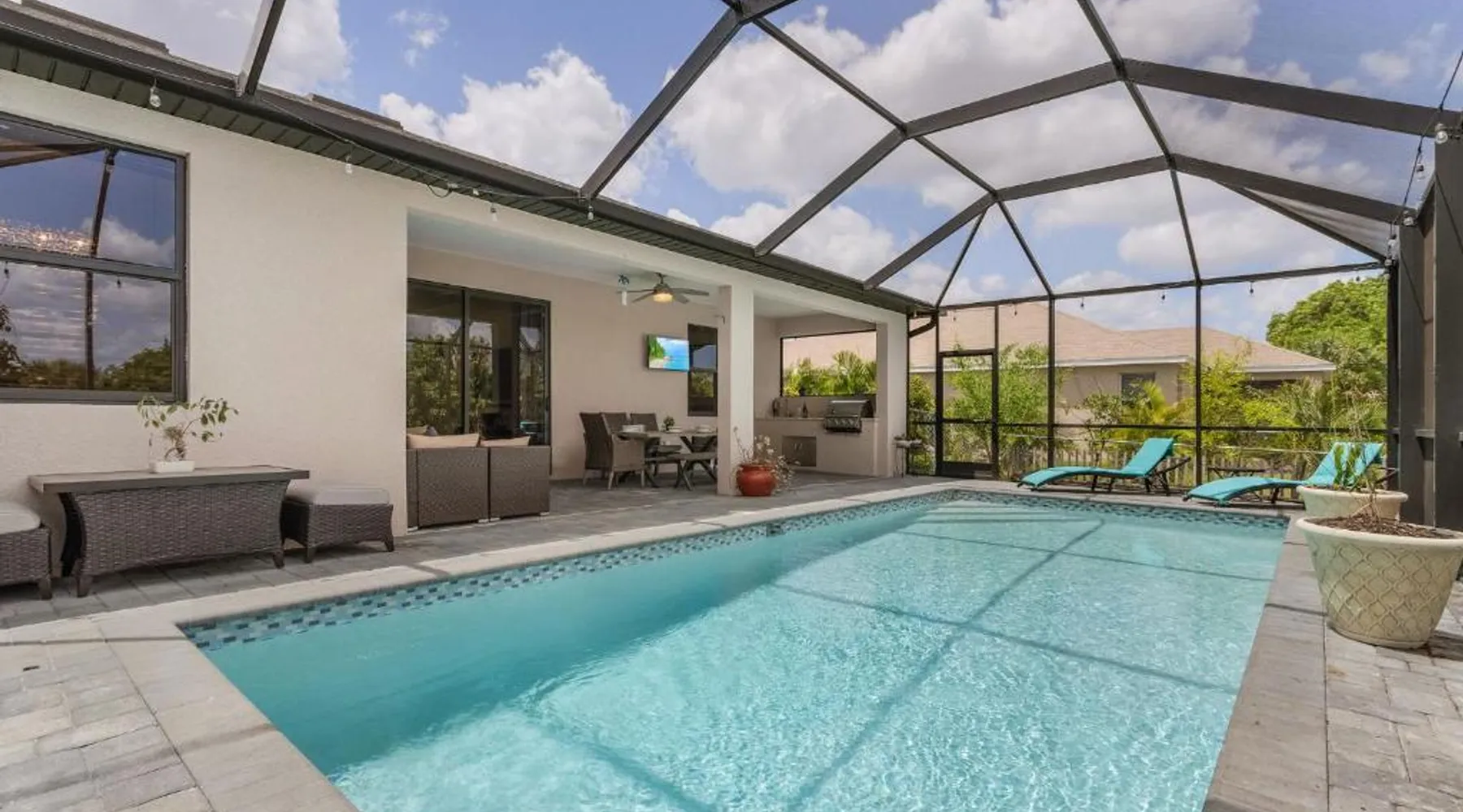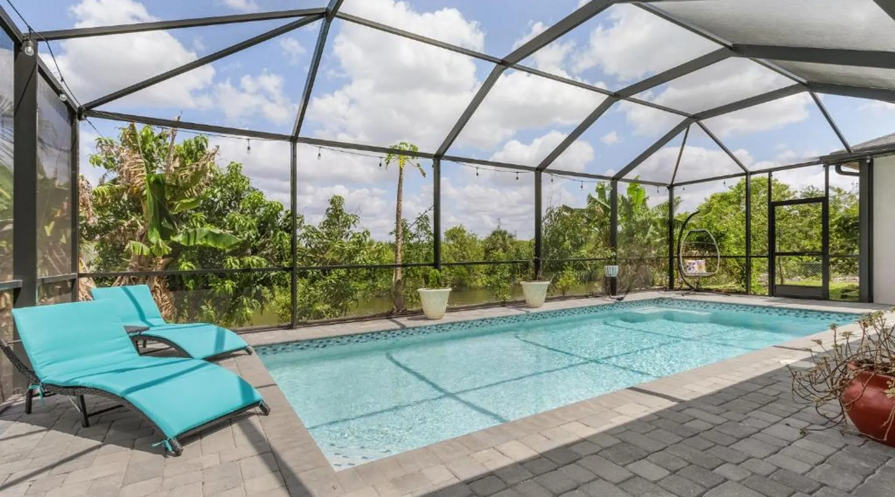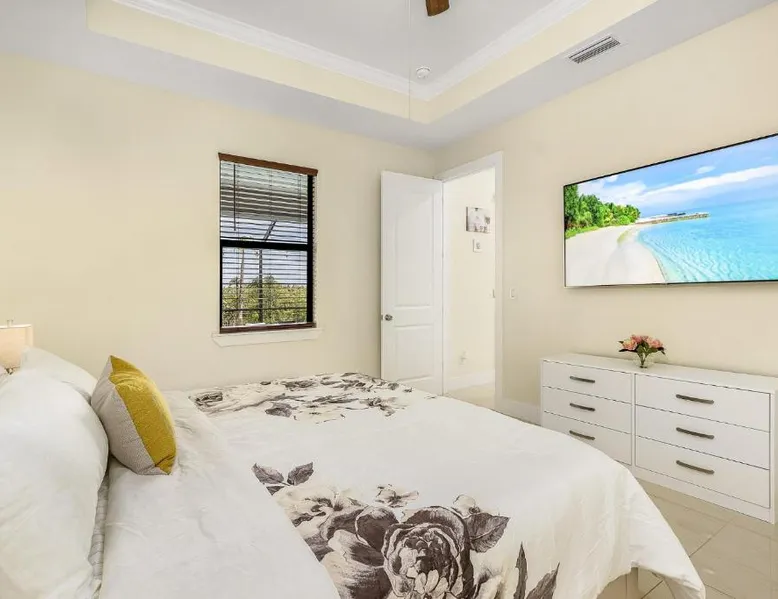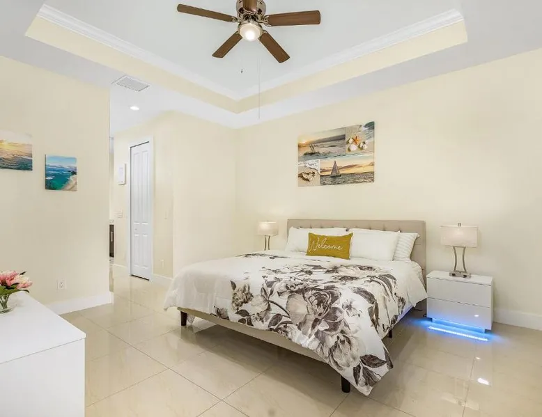 Spacious Holiday Home in Cape Coral: Villa Tropical Fruits offers a spacious holiday home in Cape Coral. The property features four bedrooms and three bathrooms, ensuring ample space for all guests. Exceptional Facilities: Guests can enjoy a saltwater swimming pool, sun terrace, and free WiFi. Additional amenities include a waterpark, outdoor seating area, family rooms, and a games room. Comfortable Living Spaces: The holiday home is equipped with air-conditioning, a fully fitted kitchen, and a washing machine. Outdoor areas include a patio, barbecue, and dining area, providing relaxing spaces. Convenient Location: Located 21 mi from Punta Gorda Airport, the property is close to attractions such as Fishermen's Village (21 mi) and Sanibel Lighthouse (27 mi). Free on-site parking is available. Guests will have a special experience as this holiday home provides a pool with a view. Guests will find a stovetop, a refrigerator, a dishwasher and kitchenware in the fully equipped kitchen. The holiday home also has a barbecue. The spacious air-conditioned holiday home offers a TV, a washing machine, a private entrance, a tea and coffee maker as well as pool views. The unit offers 5 beds.
