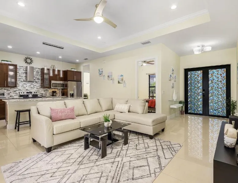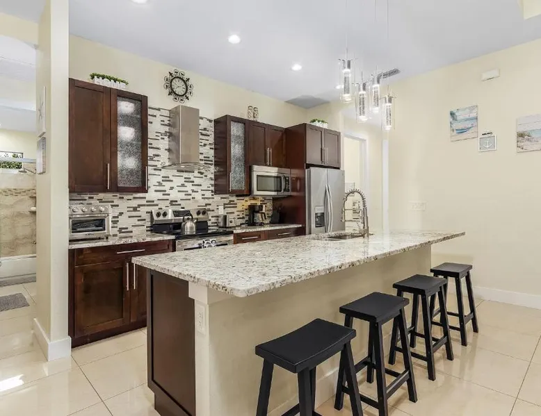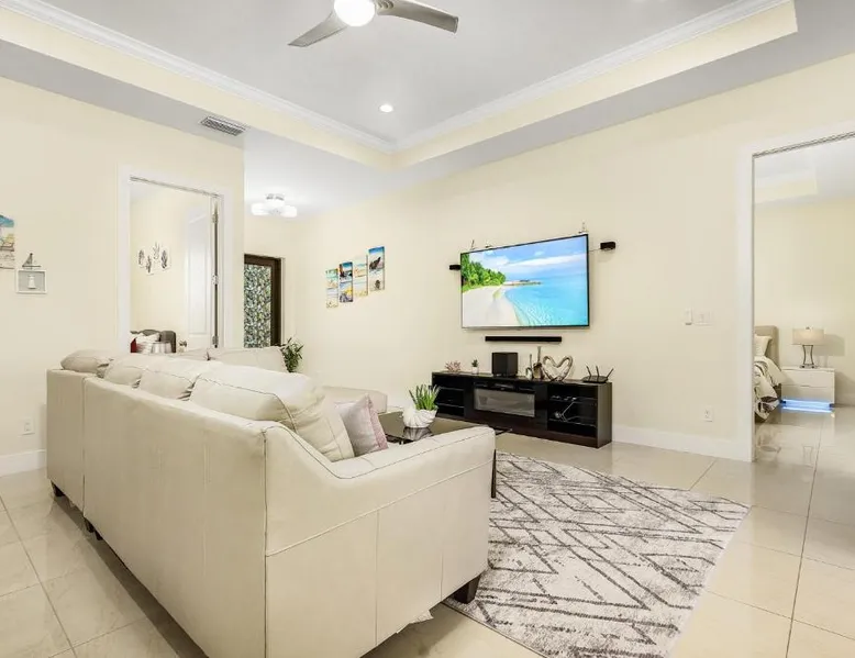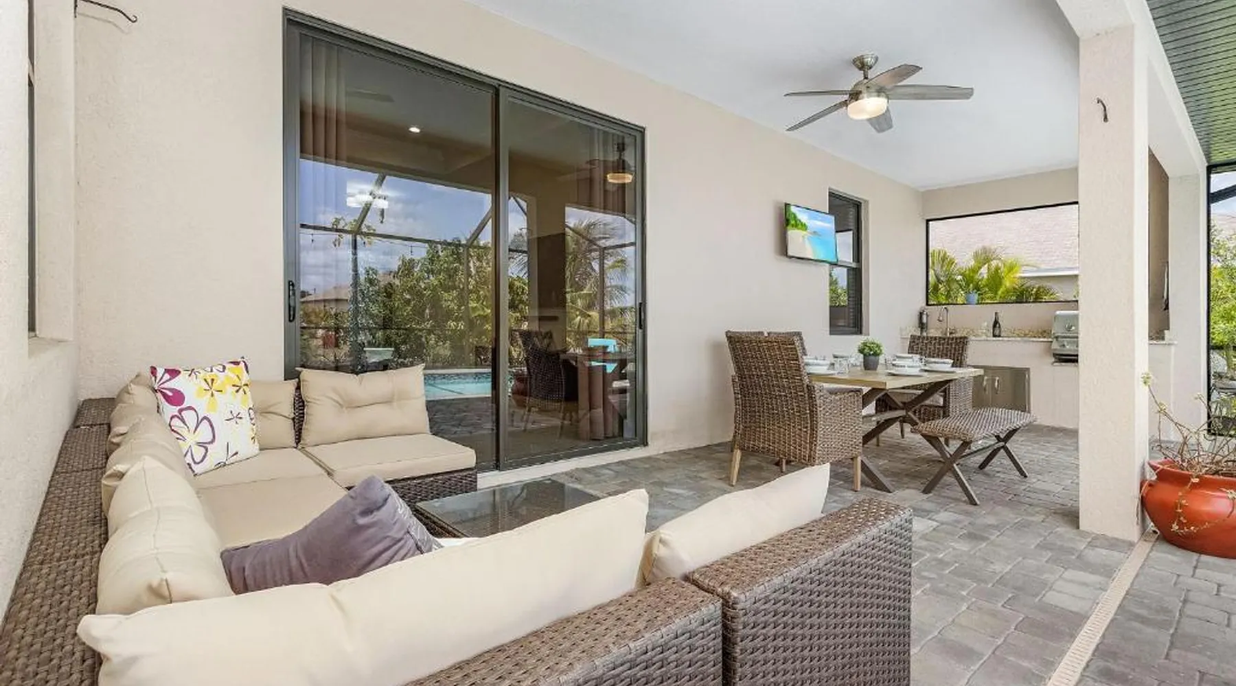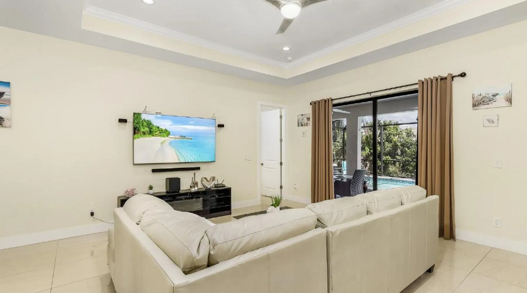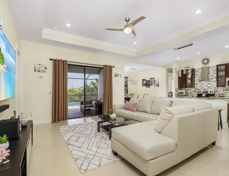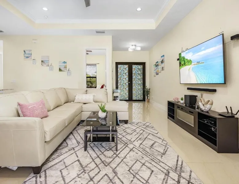 Spacious Holiday Home in Cape Coral: Villa Tropical Fruits offers a spacious holiday home in Cape Coral. The property features four bedrooms and three bathrooms, ensuring ample space for all guests. Exceptional Facilities: Guests can enjoy a saltwater swimming pool, sun terrace, and free WiFi. Additional amenities include a waterpark, outdoor seating area, family rooms, and a games room. Comfortable Living Spaces: The holiday home is equipped with air-conditioning, a fully fitted kitchen, and a washing machine. Outdoor areas include a patio, barbecue, and dining area, providing relaxing spaces. Convenient Location: Located 21 mi from Punta Gorda Airport, the property is close to attractions such as Fishermen's Village (21 mi) and Sanibel Lighthouse (27 mi). Free on-site parking is available. Guests will have a special experience as this holiday home provides a pool with a view. Guests will find a stovetop, a refrigerator, a dishwasher and kitchenware in the fully equipped kitchen. The holiday home also has a barbecue. The spacious air-conditioned holiday home offers a TV, a washing machine, a private entrance, a tea and coffee maker as well as pool views. The unit offers 5 beds.