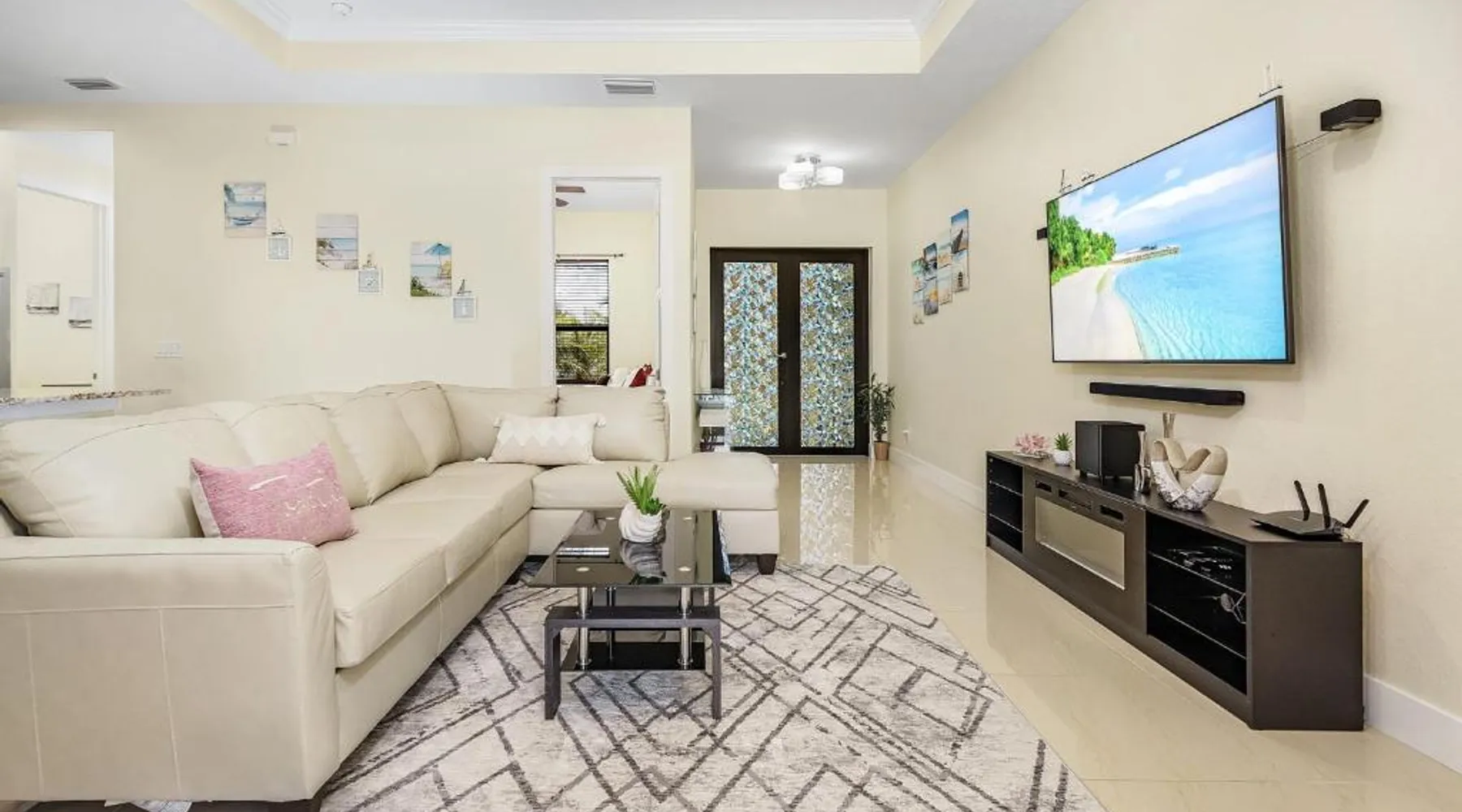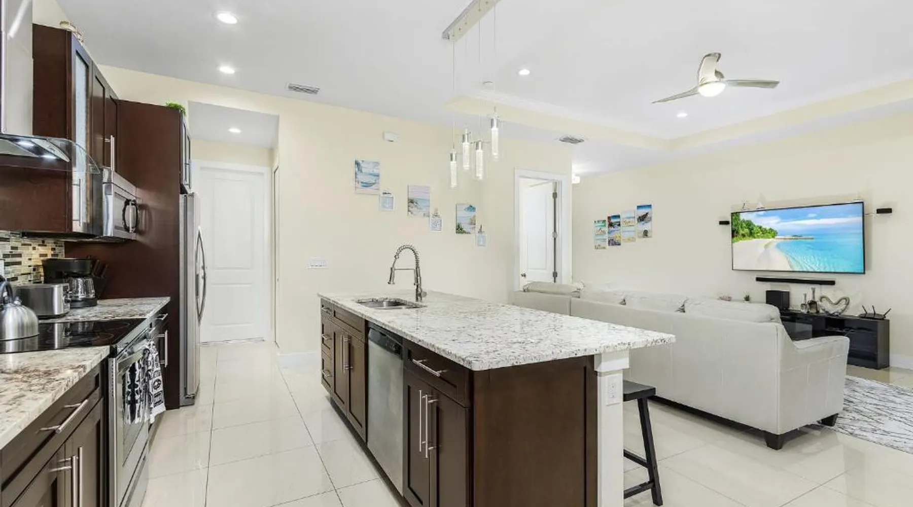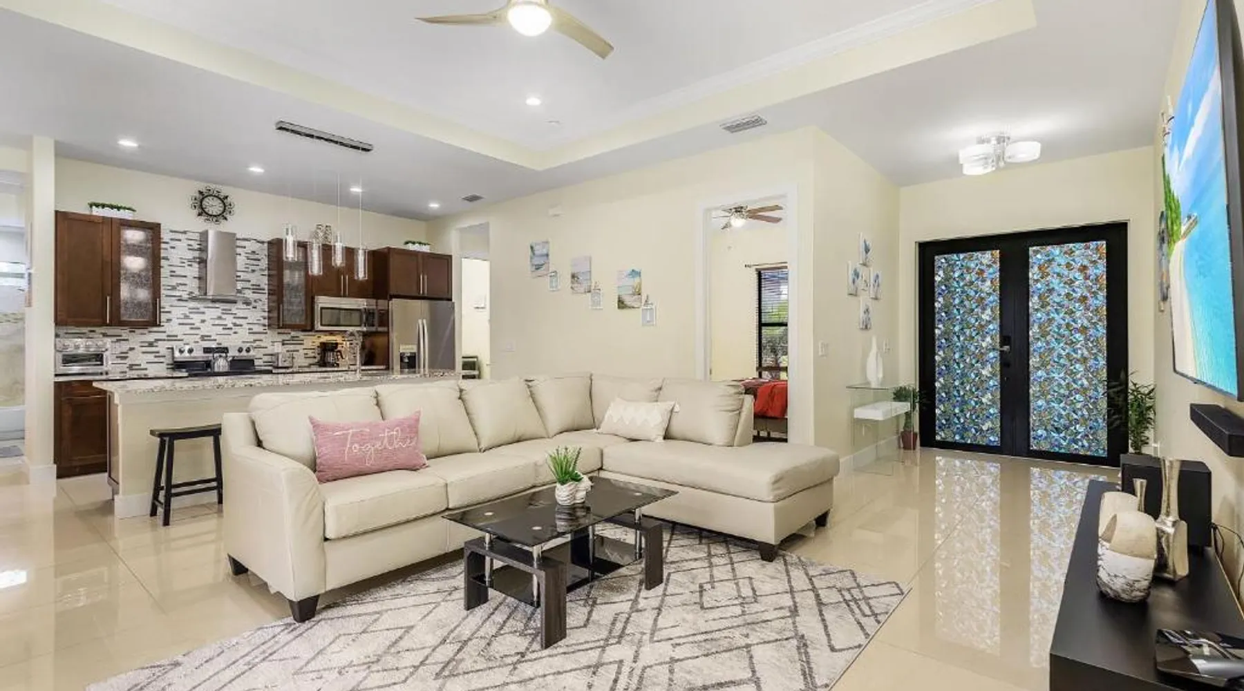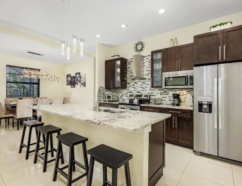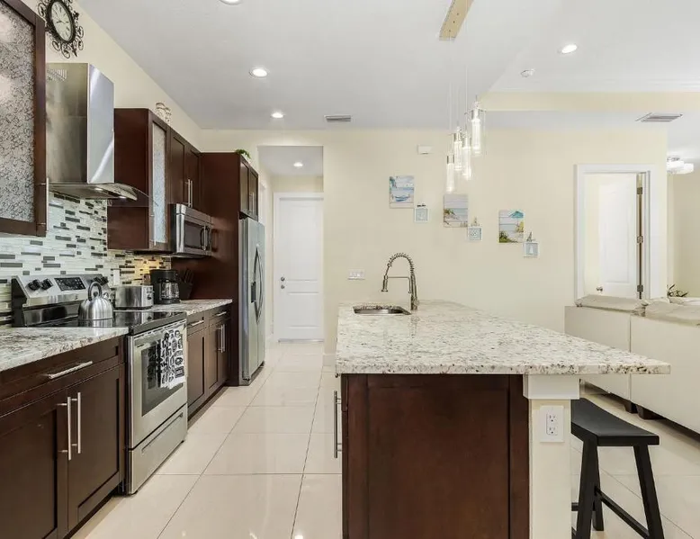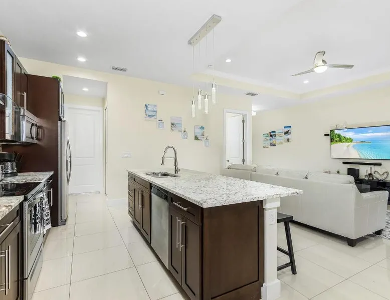 Spacious Holiday Home in Cape Coral: Villa Tropical Fruits offers a spacious holiday home in Cape Coral. The property features four bedrooms and three bathrooms, ensuring ample space for all guests. Exceptional Facilities: Guests can enjoy a saltwater swimming pool, sun terrace, and free WiFi. Additional amenities include a waterpark, outdoor seating area, family rooms, and a games room. Comfortable Living Spaces: The holiday home is equipped with air-conditioning, a fully fitted kitchen, and a washing machine. Outdoor areas include a patio, barbecue, and dining area, providing relaxing spaces. Convenient Location: Located 21 mi from Punta Gorda Airport, the property is close to attractions such as Fishermen's Village (21 mi) and Sanibel Lighthouse (27 mi). Free on-site parking is available. Guests will have a special experience as this holiday home provides a pool with a view. Guests will find a stovetop, a refrigerator, a dishwasher and kitchenware in the fully equipped kitchen. The holiday home also has a barbecue. The spacious air-conditioned holiday home offers a TV, a washing machine, a private entrance, a tea and coffee maker as well as pool views. The unit offers 5 beds.