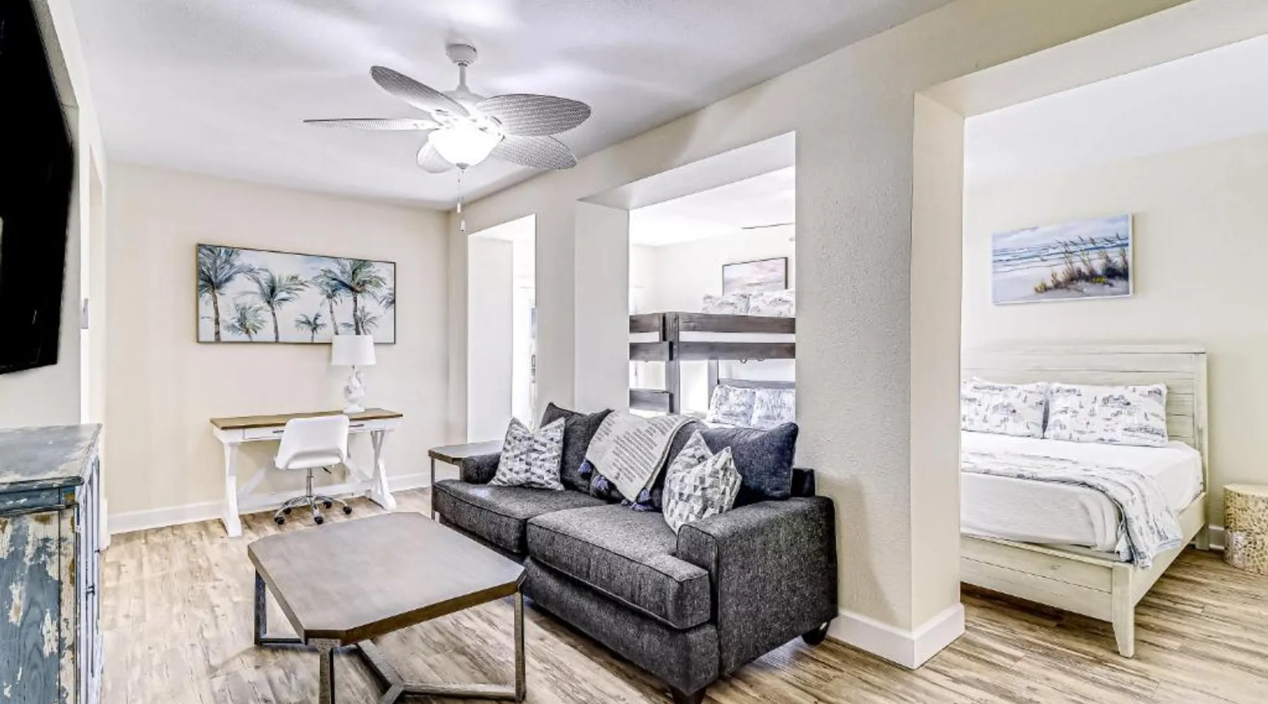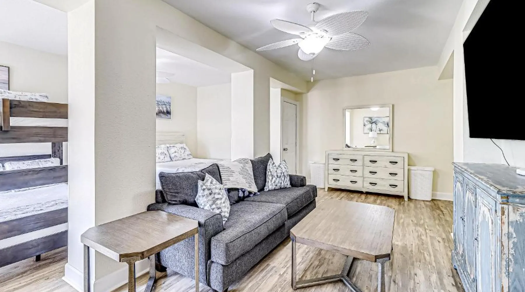 Spacious Holiday Home in Port Aransas: Lost Colony Shiny Shell Cottage offers a spacious holiday home in Port Aransas. The property features four bedrooms and three bathrooms, ensuring ample space for all guests. Exceptional Facilities: Guests can enjoy a restaurant and an outdoor swimming pool. The outdoor seating area provides a relaxing space to unwind. Comfortable Amenities: The holiday home is equipped with air-conditioning, a terrace, balcony, washing machine, and a fully fitted kitchen. Additional amenities include a dining area, work desk, and free toiletries. Local Attractions: Located 12 mi from Bob Hall Pier and 5 mi from Mustang Island State Park, the property is also close to Port Aransas Marina and Port Aransas Nature Preserve. Corpus Christi International Airport is 30 mi away. Boasting a private entrance, this spacious holiday home also comes with 4 bedrooms, 3 bathrooms and a seating area. Guests can make meals in the kitchen that features a stovetop, a refrigerator, a dishwasher and kitchenware. The air-conditioned holiday home features a TV, a washing machine, a tea and coffee maker, a dining area as well as pool views. The unit has 6 beds.
