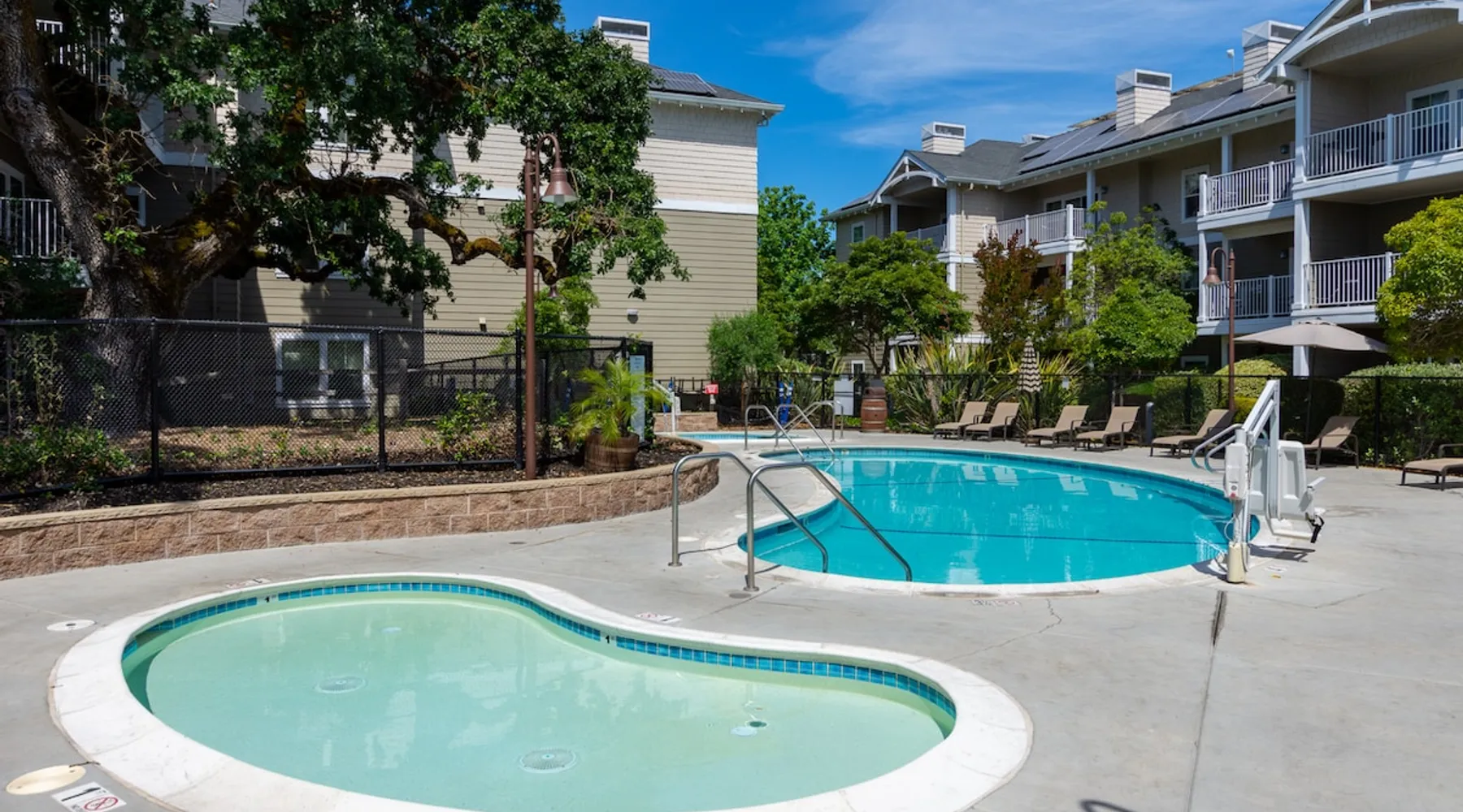 If your travels take you to Sonoma Wine Country, this updated and comfortable apartment is the perfect home base for all your activities. This spacious three-bedroom and two-bath unit can comfortably sleep up to eight individuals, and gives you access to pools, hot tubs, a gym, and even a game center. While others sip and swirl, your group can splash or spread out in total comfort. Wine country never felt this alive 🍷🍇 The space Welcome to a wine country stay that’s more than sipping and sightseeing. Our 3-bedroom apartment in Windsor offers space to spread out and settle in—ideal for families, friends, or anyone who values comfort with a twist of convenience. Here's what you'll find: 🛏 Primary Bedroom: King bed for deep, restful sleep 🛏 Second Bedroom: Queen bed—just right for couples or solo sprawl 🛏 Third Bedroom: Two Twin beds—perfect for kids or siblings who never stop talking 🛋 Living Room: Queen Murphy bed that effortlessly folds into the living room closet, providing ample space for rest and rejuvenation. Enjoy cooking in a fully equipped kitchen with cooking utensils, silverware, plates, a coffee pot, a toaster, wine glasses, and more, with a granite island made for group breakfasts or late-night snacks. Step outside to the private balcony, where you'll find a BBQ and patio furniture, perfect for grilling and outdoor dining. Extras like Wi-Fi, TV, air conditioning, plus a washer and dryer make longer stays feel effortless. This isn’t just a place to crash after vineyard tours, it’s the space that makes the in-between moments just as memorable. Guest access Indulge in resort-style amenities that redefine what a getaway can be: 👙 Take a dip in one of two heated outdoor pools, or unwind in one of four hot tubs 🏐 Ready to get active? Challenge the family to a game of volleyball or basketball on our courts. 👾For younger guests, there’s a dedicated play area and an indoor game center to keep everyone entertained. 🧖🏻♀️For the adults, the on-site Spa offers body treatments so good that reservations are recommended well in advance. 🥩Want to bring the vacation vibe to your meals? Use one of our gas barbecue grills and enjoy a cookout under the sun with family or friends. 📍When you're ready to explore, downtown Sonoma is just 2 miles away, offering charming shops, restaurants, and historic sites. But that’s only the beginning—world-renowned wineries are also within easy reach, allowing for wine tasting without straying far from your retreat. The scenic roads of Sonoma County are an adventure in themselves, taking you past redwoods, across rivers, and through organic farms. Don't miss the nearby Kendall-Jackson vineyards, just 2.8 miles away, or Korbel for a champagne experience you won’t forget. Whether you're here for a weekend of wine tasting or a peaceful getaway, our apartment provides everything you need for a comfortable and memorable stay. Other things to note ✔️The guest who books the stay must be 21 years of age, physically present at the time of check-in, and present a photo ID/credit card for a $250 refundable deposit at check-in. ✔️If the guest plans to arrive later than the other guests, the reservation should be made by the guest who will be arriving first. ✔️The apartment is located in a timeshare property. There are multiple units of this type, and the property management company assigns the exact unit at check-in. ✔️ Infants and children are counted towards maximum occupancy per unit. ⚠️ This is a timeshare property, and guests are not obligated to participate in any timeshare presentation. Attending a presentation is entirely optional, and should a salesperson approach you to attend one, you have the freedom to decline their invitation.