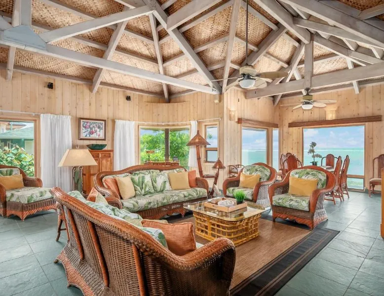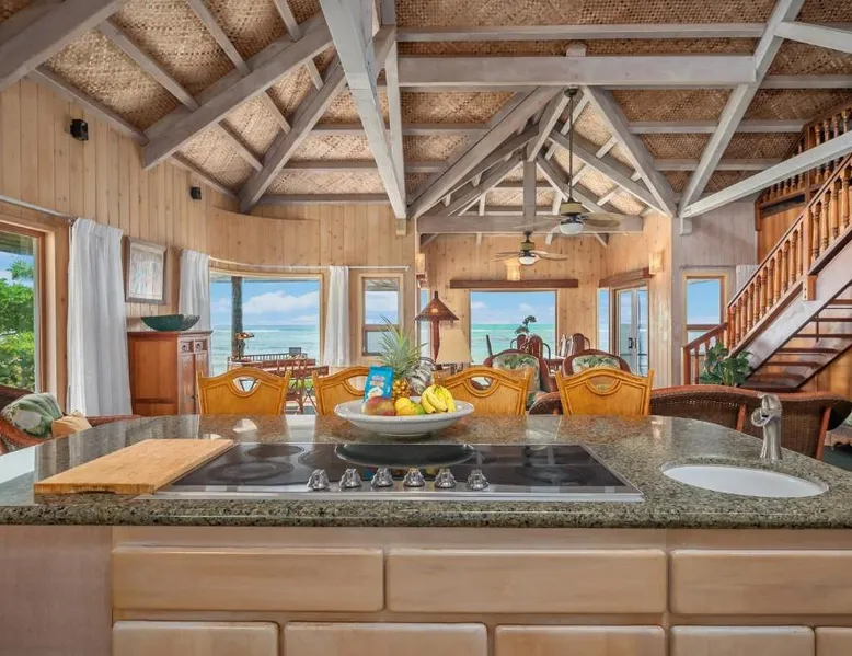 Beachfront Location: Niulani Lanikai - Kauai Beach House home in Kapaa offers direct beachfront access and stunning sea views. Guests can relax in the lush garden or enjoy the sun on the beach. Comfortable Accommodations: The holiday home features four bedrooms and four bathrooms, ensuring ample space for all visitors. Amenities include a fully equipped kitchen, washing machine, and free WiFi. Convenient Facilities: Guests can enjoy massage services, a barbecue area, and free on-site private parking. Additional amenities include a work desk, dining area, and free toiletries. Nearby Attractions: Waipouli Beach is an 8-minute walk away, while Lihue Airport is 8.1 mi from the property. Other attractions include Lydgate Beach Park (2.7 mi) and Opaekaa Falls (3.1 mi). The holiday home features 4 bedrooms and 4 bathrooms with a hairdryer and free toiletries. Guests will find a refrigerator, a dishwasher, kitchenware and an oven in the kitchen. The holiday home also provides guests with a barbecue. The holiday home provides a washing machine, a tea and coffee maker, a seating area, a TV with cable channels, as well as sea views. The unit offers 5 beds.