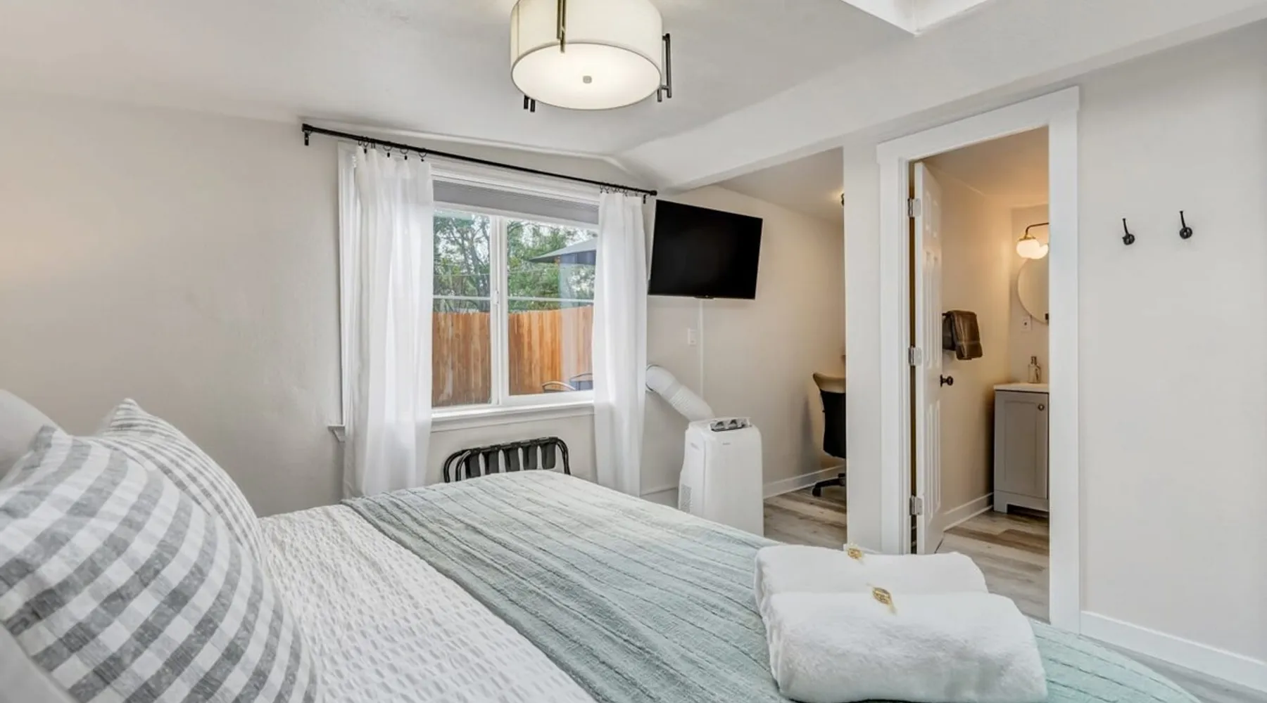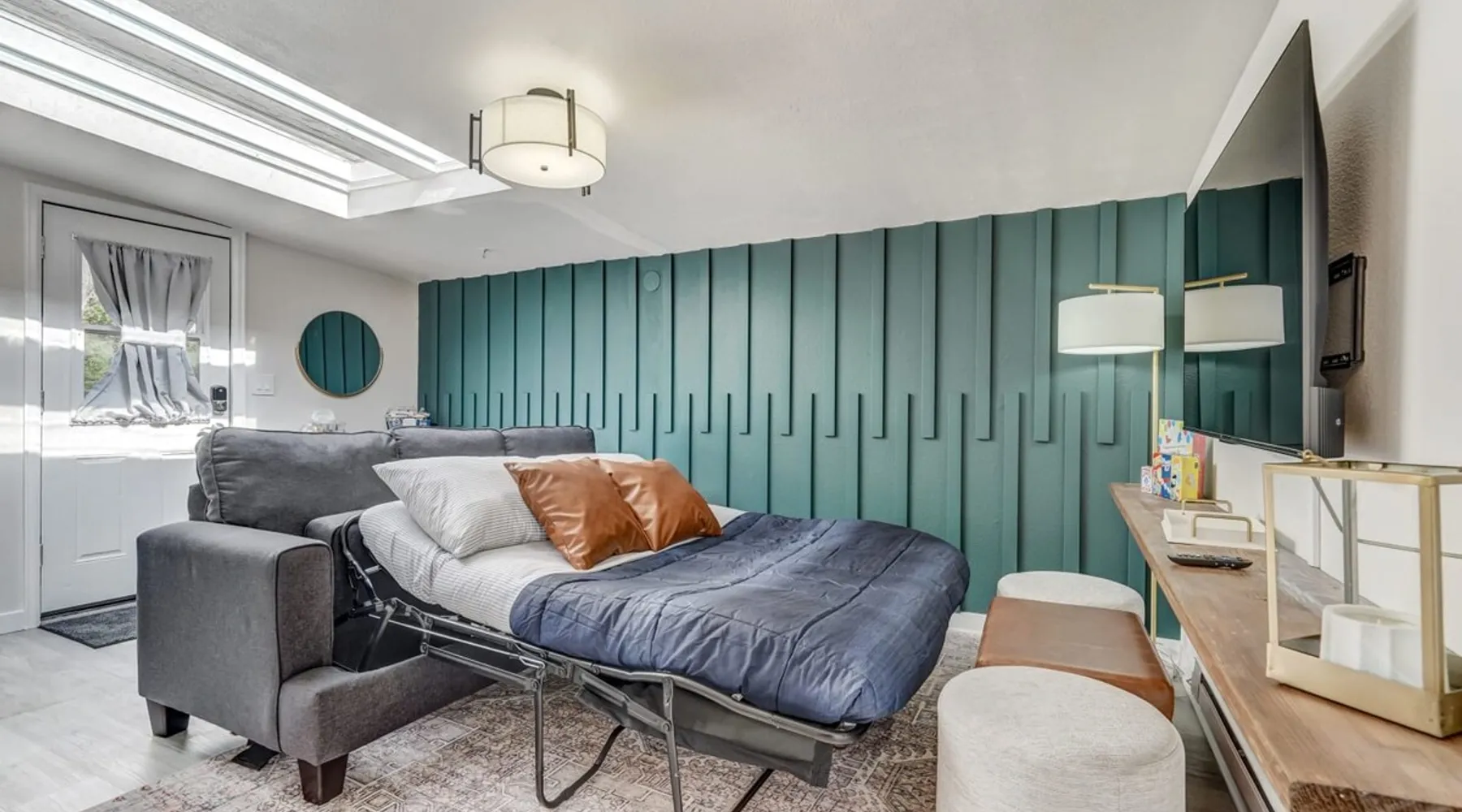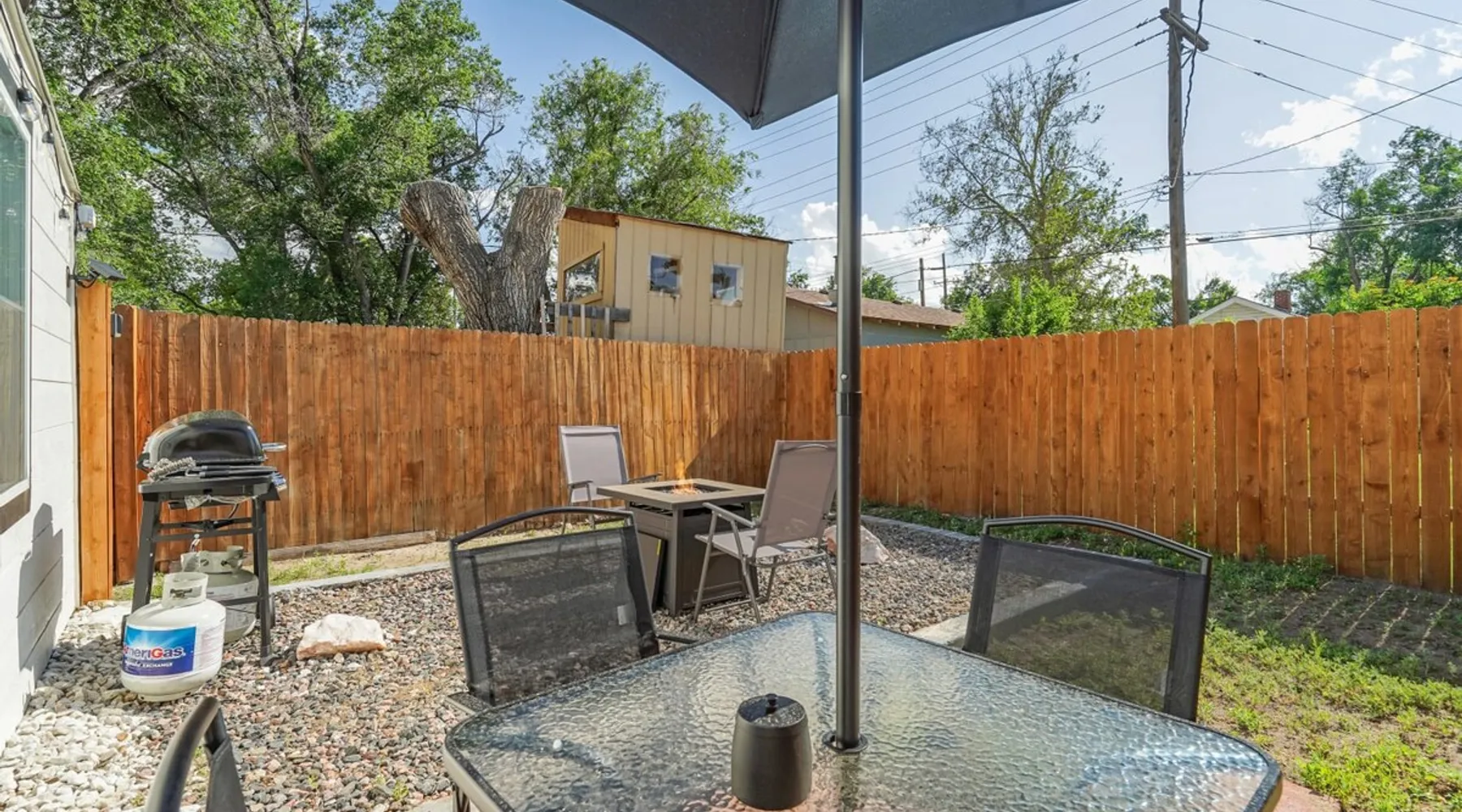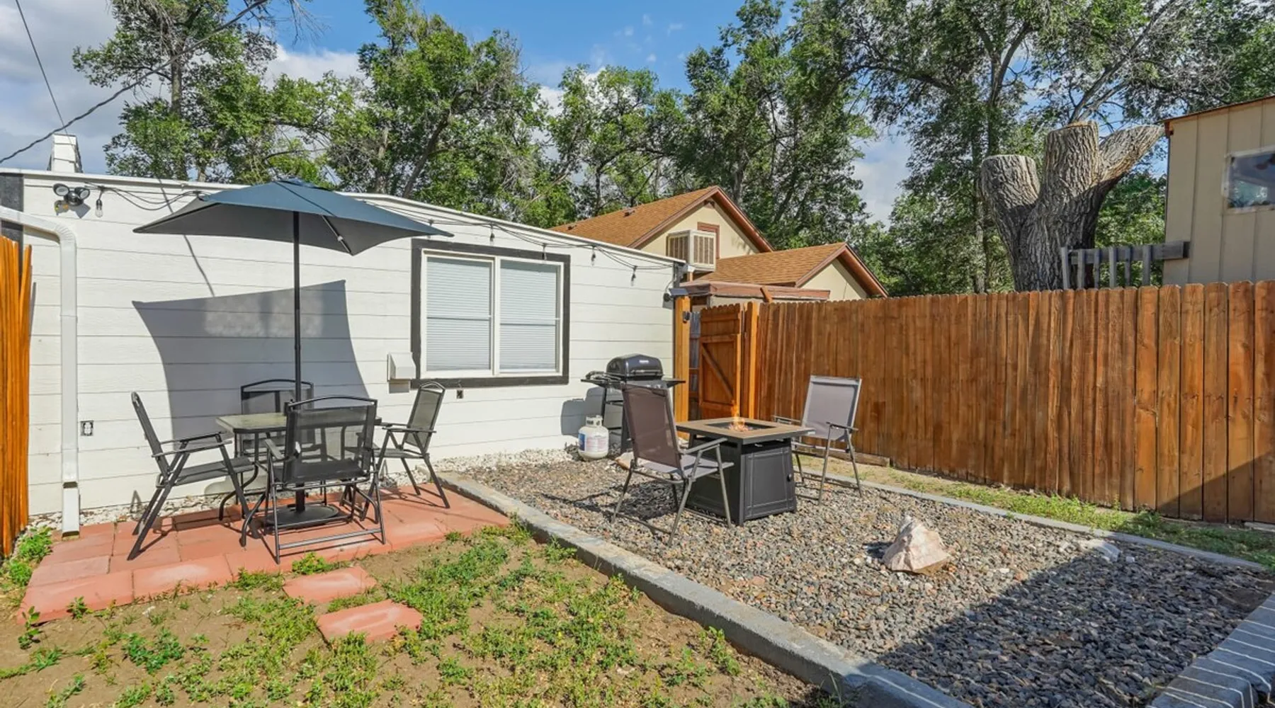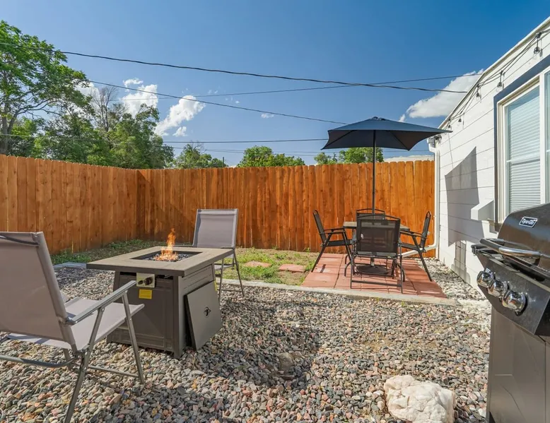 Welcome to your tranquil haven nestled in the heart of the city, where modern comfort meets ultimate relaxation in our beautifully appointed unit. ✨ Professionally cleaned & sanitized ✨ Newly remodeled 💻 Work remotely with ease 🍽️ Fully stocked kitchen & bathroom 🚗 Only 2 minutes to the Olympic Training Center, and just minutes to I-25, Garden of the Gods, Downtown Colorado Springs, and more! Book your stay and experience the perfect blend of comfort and convenience. The space Welcome to our stylish retreat in the heart of the city. This thoughtfully designed unit offers the perfect blend of modern amenities and comfort for an unforgettable stay. Here's what you can expect: 🛏️ King Bedroom Indulge in a restful sleep in the luxurious king-sized bed, where you can enjoy your favorite shows on the Smart TV. Relax in the privacy of your own tranquil sanctuary. 🚿 Bathroom Experience true relaxation in the beautifully renovated bathroom, complete with modern fixtures and a spacious shower. Rinse off and enjoy the plush towels and complimentary toiletries, including shampoo, conditioner, body wash, a hairdryer, and even some makeup remover wipes and feminine products—just in case you forgot something for your first night! 🍳 Kitchen Cook and create culinary masterpieces in the fully equipped kitchen, featuring an electric range and all essential appliances. Start your day with a fresh brew from the Keurig coffee maker—we've provided a few starter K-cups to get you going! 🧺 Laundry Stay fresh and pack light with the convenience of a washer and dryer available for your use during your stay. Complimentary laundry detergent is provided to help you get started. 🛋️ Living Room Unwind in the comfortable living room with modern furnishings. Kick back and relax while watching your favorite shows on the Smart TV—just log into your streaming services and pick up right where you left off before your travels. The Queen sofa bed offers additional sleeping arrangements, and there's plenty of seating for quality time with loved ones. 🌳 Backyard Step outside to your private backyard, where you can gather around the fire pit and create unforgettable memories. Enjoy alfresco dining at the outdoor dining table with an umbrella, or grill up a delicious meal on the BBQ and savor outdoor cooking. Whether you're here for business or leisure, our unit offers the perfect blend of comfort and convenience to make your stay exceptional. Guest access 🔑 During your stay, enjoy having private access to this unit. As part of a side-by-side duplex setup, enjoy knowing no one will be staying above or below you! Other things to note 📜 Rental Agreement For a seamless booking experience, a Rental Agreement is required for all reservations. Once your reservation is confirmed, we’ll provide details for completing the agreement. 🔑 Check-In Process For a seamless check-in experience, your unique code along with your check-in instructions will be updated into your personalized guidebook on the morning of your arrival. You’ll use this code for entry. ☕ Starter Supply We’ve prepared a starter supply that includes paper towels, coffee K-cups, toilet paper, shampoo, body wash, and plush white towels! We hope these amenities add an extra touch of comfort to your stay. 🐾 Pets If you are looking to bring your dog, we allow up to 2 dogs during your stay for a fee. $100 for the first dog and $100 for the second dog (max. 2 dogs unless otherwise approved). This fee is charged after reservation confirmation. Reasonable rules and expectations for your dogs are outlined in our guidebook. ⏰ Unauthorized Late Checkout Fee A fee of $20 per half hour late will be charged for unauthorized late checkouts. 💲 Additional Fees To ensure that we have enough time to prepare for future guests, we ask that you please message us ahead of time for pricing regarding guaranteed early check-ins or late check-outs. These additional fees are necessary to cover the expenses of reworking the schedule or adding an additional cleaner to the schedule to accommodate your request. 🏡 Duplex Setup As part of a side-by-side duplex setup, this unit is all yours for the duration of your stay. The other unit is rented out separately, so the driveway is shared.