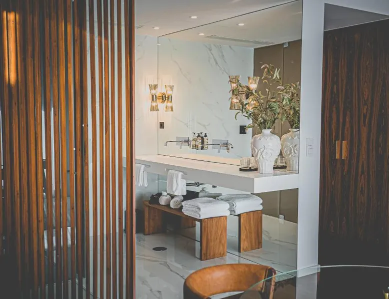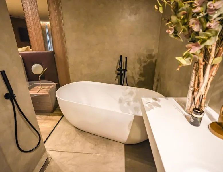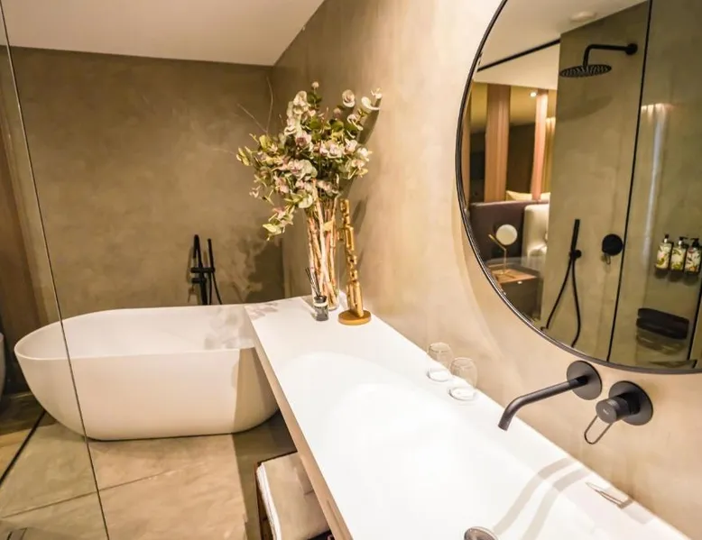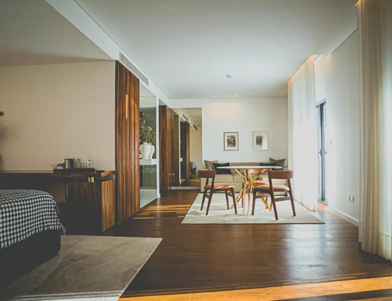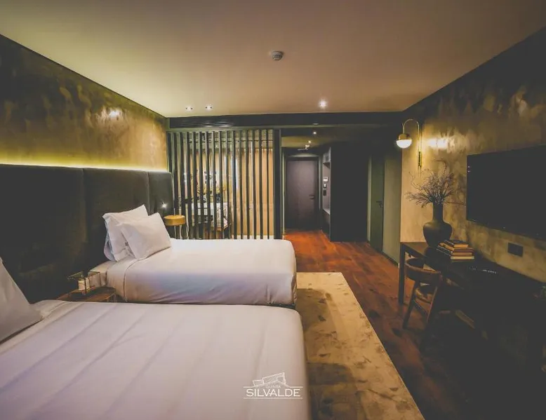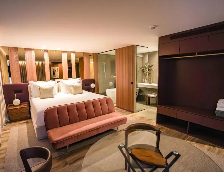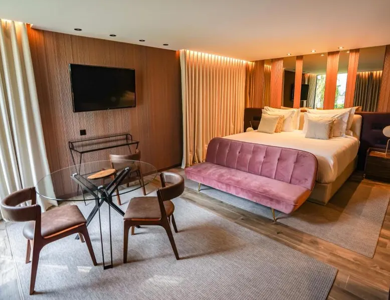 Comfortable Accommodations: Quinta de Silvalde in Santo Tirso offers family rooms with private bathrooms, air-conditioning, and modern amenities. Each room includes a balcony or terrace with garden, pool, or mountain views. Exceptional Facilities: Guests enjoy an infinity swimming pool, indoor pool, spa and wellness center, fitness center, sun terrace, and free bicycles. Additional amenities include a hot tub, hammam, and free WiFi throughout the property. Dining Experience: The family-friendly restaurant serves Portuguese, local, international, and European cuisines with halal, vegetarian, vegan, gluten-free, and dairy-free options. Breakfast includes local specialties, fresh pastries, and a variety of beverages. Prime Location: Located 19 mi from Francisco Sá Carneiro Airport, the hotel is near attractions such as Salado Memorial (16 mi) and Guimarães Castle (17 mi). Free on-site private parking is available. This spacious suite is consisted of of 1 living room, 1 separate bedroom and 1 bathroom with a walk-in shower and free toiletries. The air-conditioned suite offers a flat-screen TV with streaming services, soundproof walls, a mini-bar, a tea and coffee maker as well as garden views. The unit offers 2 beds.