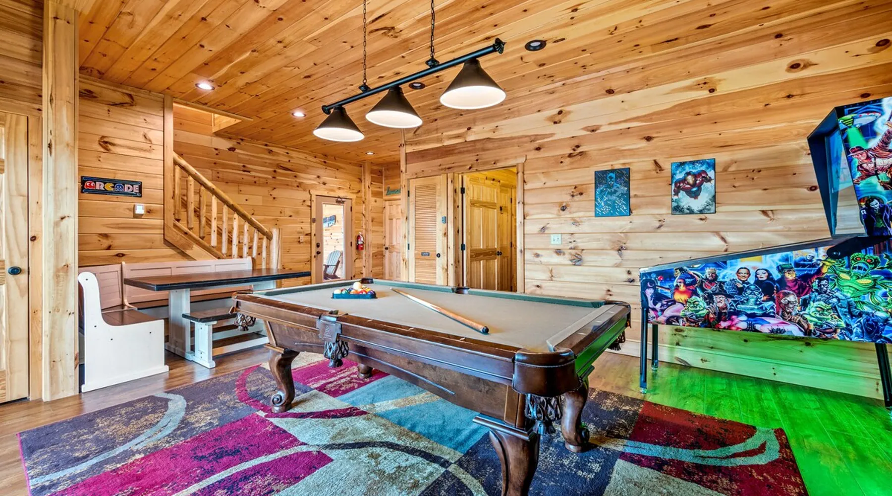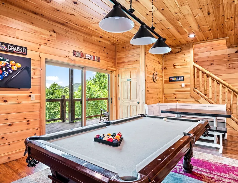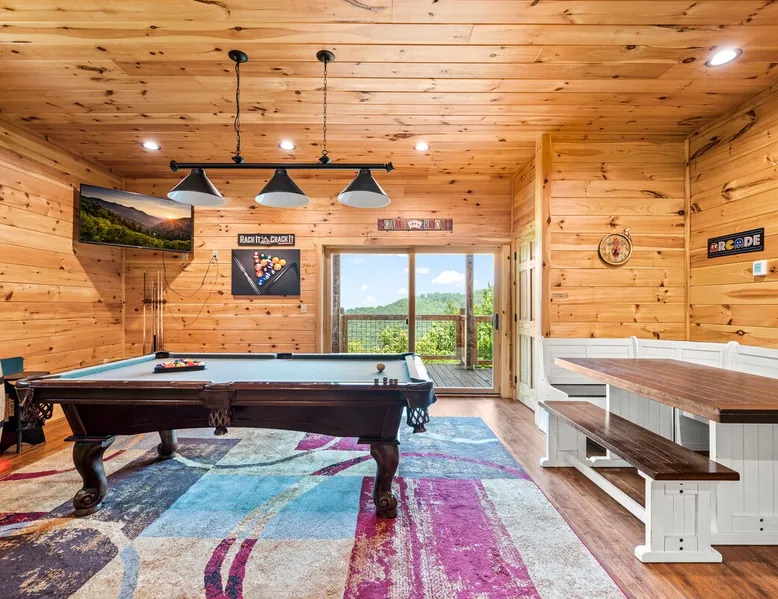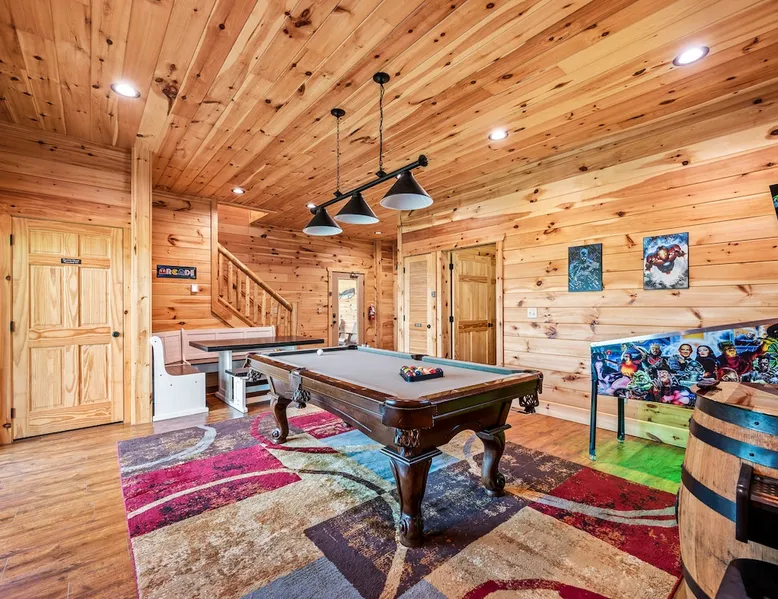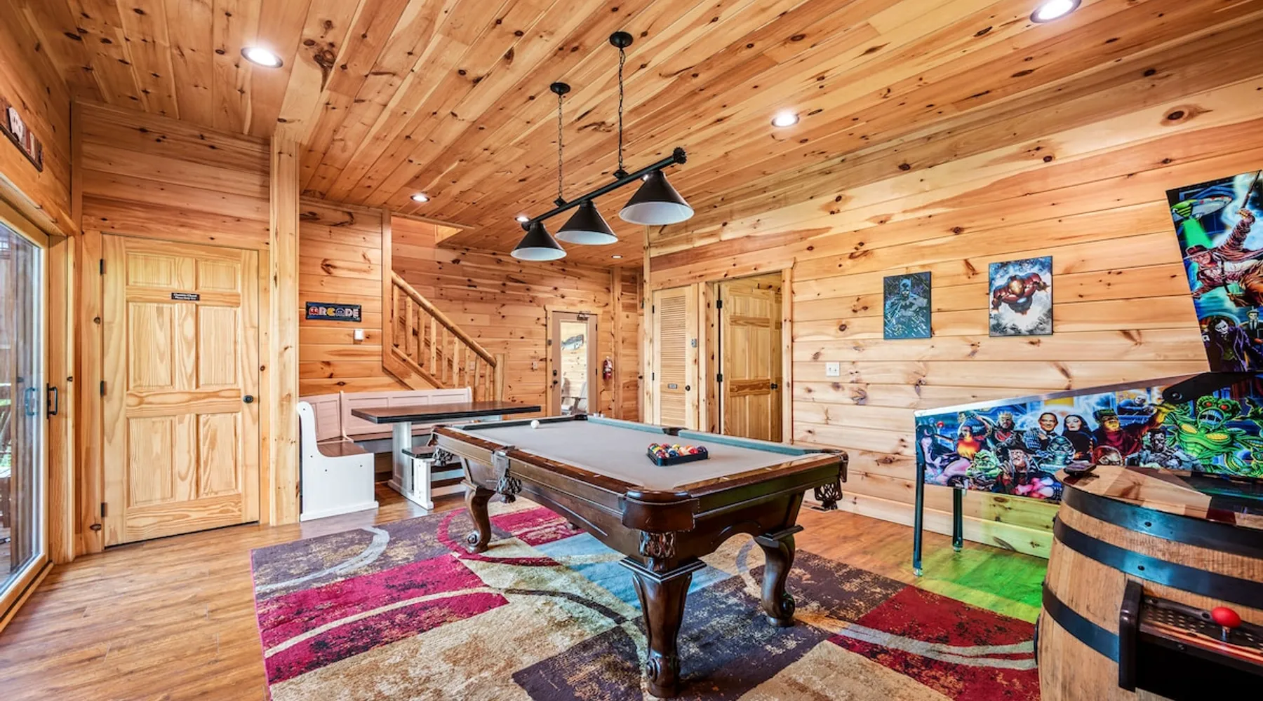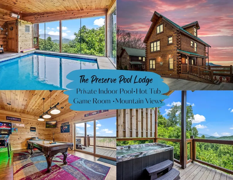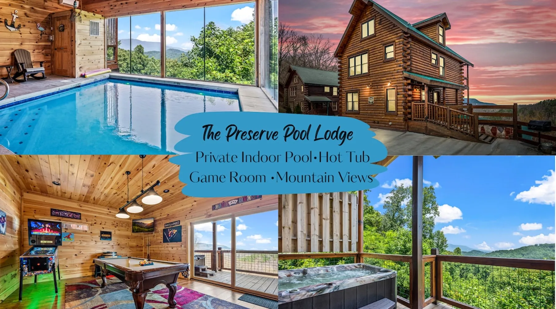 🏊 Private Indoor Heated Pool 💦 Hot Tub ⛰️ Beautiful Mountain View 🐶 Dogs Welcome 🎱 Game Rm 🍽️ Well-Equipped Kitchen 🔥 Cozy Fireplace 🛜 High-Speed WiFi 🍼 Pack N' Play Available 🚼 High Chair 💗 Adventure-Reconnection-Relaxation The space ⭐ The Preserve Pool Lodge Highlights⭐ ✓ Heated Pool in the Cabin ✓ We welcome Well-behaved and House trained Dogs (Max 2 with Pet Fee) ✓ Recently installed New Pool Heater (July 2024) ensures delightful swims year-round! ✓ Enjoy breathtaking views from all decks across 4 different levels. ✓ Cozy up with Roku TVs in all bedrooms and main living areas. ✓ Savor the outdoor experience with a charcoal grill (BYO charcoal). ✓ Strategic location just 30 minutes to Pigeon Forge, 35 minutes to Cades Cove, and 20 minutes to Townsend. ⭐Accommodations ⭐ ◆ Main Level ✓ Fully Equipped Kitchen ✓ Dining Area ✓ Family Room with Mountain View ✓ Queen Bedroom with Ensuite (Walk-in Shower) ◆ Downstairs ✓ Indoor, Heated Pool ✓ Hot Tub on the deck ✓ Game Room with Pool Table and Arcade ✓ King Bedroom with Ensuite (Tub) ✓ Laundry and Booth-style seating ◆ Upper Level ✓ King Bedroom with Ensuite (Walk-in Shower) ✓ Additional Family Room with Sleeper Sofa ✓ DVD Player and Movie Library ✓ Half Bathroom ✓ Deck Access to enjoy the view ◆ Loft Level ✓ Bunk Room with Two Double Beds ◆ Family Conveniences ✓ Pack N' Play Style Portable Crib ✓ Restaurant Style Wooden Highchair ✓ Children's Dinnerware ⭐ Important Information ⭐ ✓ Easy paved road access; winter travelers may require 4WD. ✓ Pool access 24/7, year-round; note potential service visits during stay. ✓ Security camera at the front door (video only, no audio). ⭐I strive to ensure your stay is seamless from booking to departure. Always feel free to click "Contact Host" for any inquiries or needs. We look forward to hosting you at The Preserve Pool Lodge for adventures, relaxation, and unforgettable moments! Guest access You will have access to all areas of the cabin except the locked owner's closets and utility closets. Other things to note ◆ This property requires a $500 security deposit. Your payment method will be collected through Hospitable after booking. ◆2 Dogs Maximum allowed with pet fee. Dogs should be up to date of vaccinations and flea and tick prevetion. ◆ Your booking will not include access to the resort amenities such as the resort pool. You will have your very own pool to enjoy at the cabin! ◆The pool service may need to come to the cabin to service the pool during your stay. ◆The roads to the cabin are paved and well maintained and easy to maneuver in the summer with all vehicles. During winter months, 4 WD is highly recommended. Please review the winter information provided after booking. ◆ The cabin gets its water from a community well. If there is a power outage, this can affect the water pumps that supply the water. It is a good idea to bring bottled water in case it is needed. ◆There is one security camera located on the front of the cabin near the front door to capture video of access to the front door and the parking area. The cameras record video only, no audio. ◆ Guests without prior reviews in Airbnb may be required to complete additional identity verification after making a reservation.