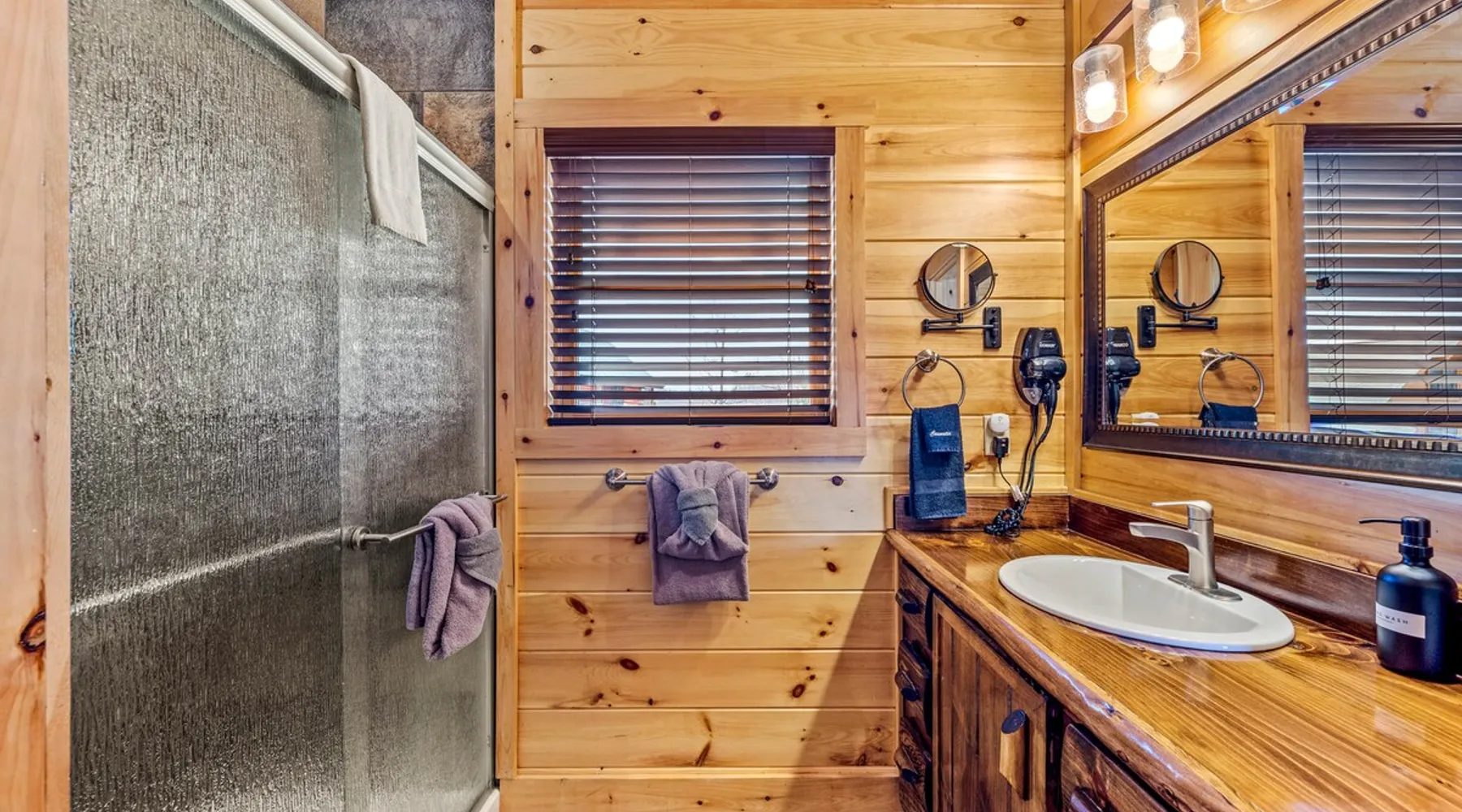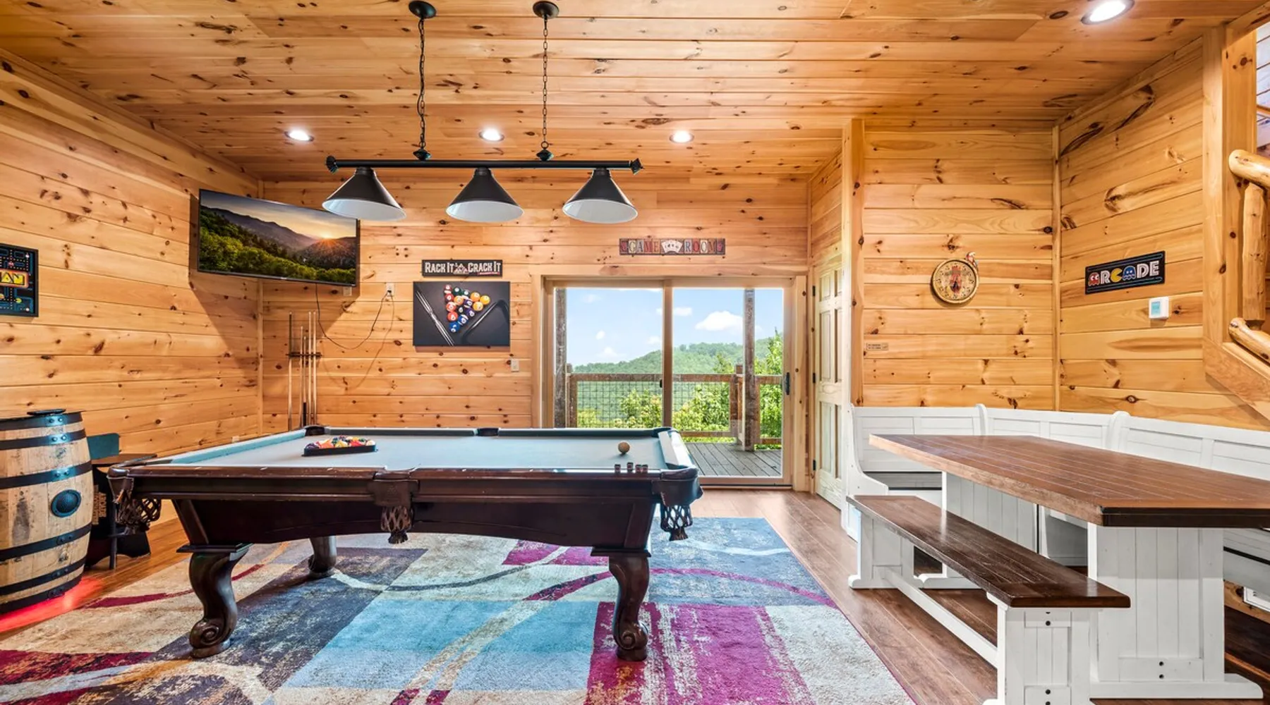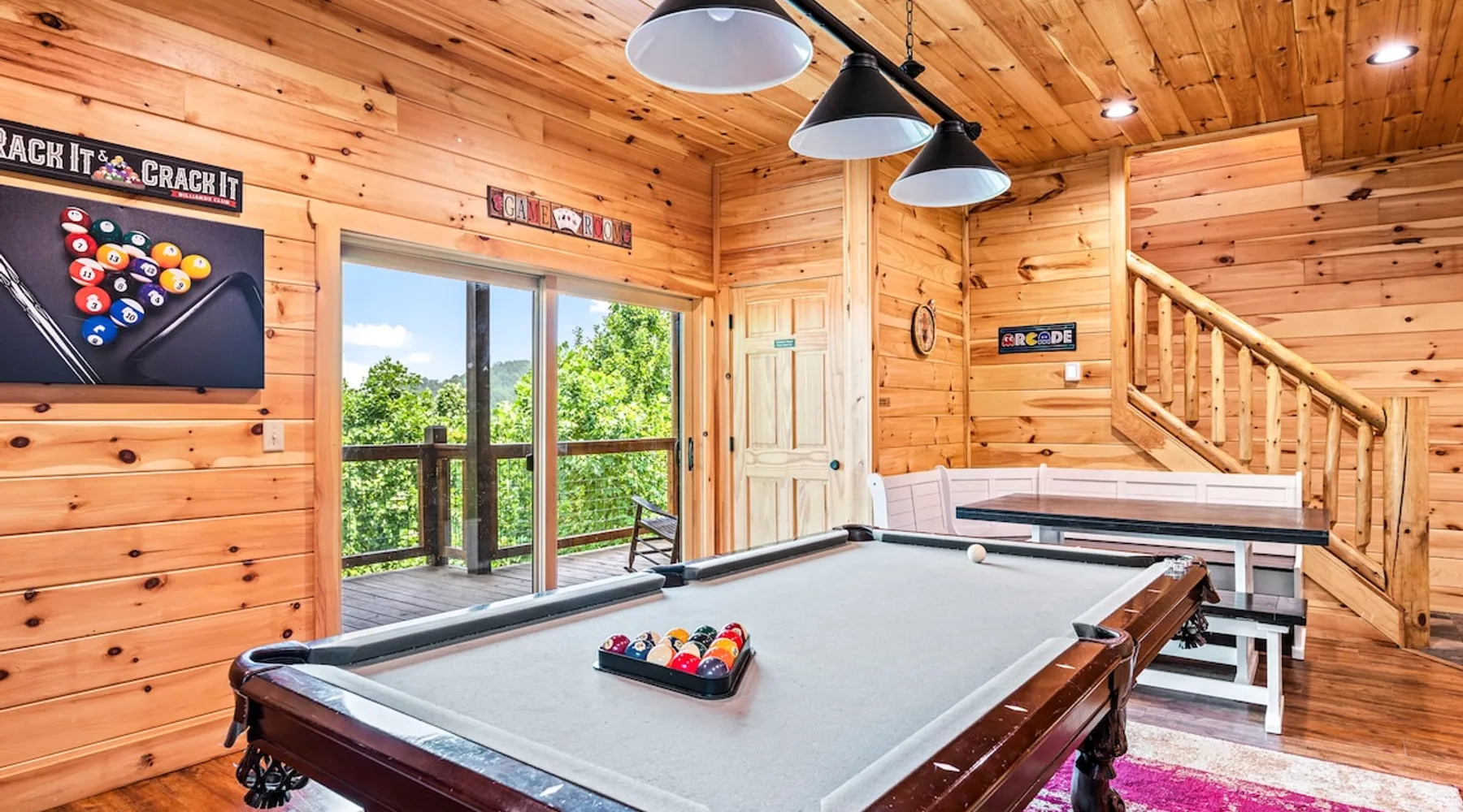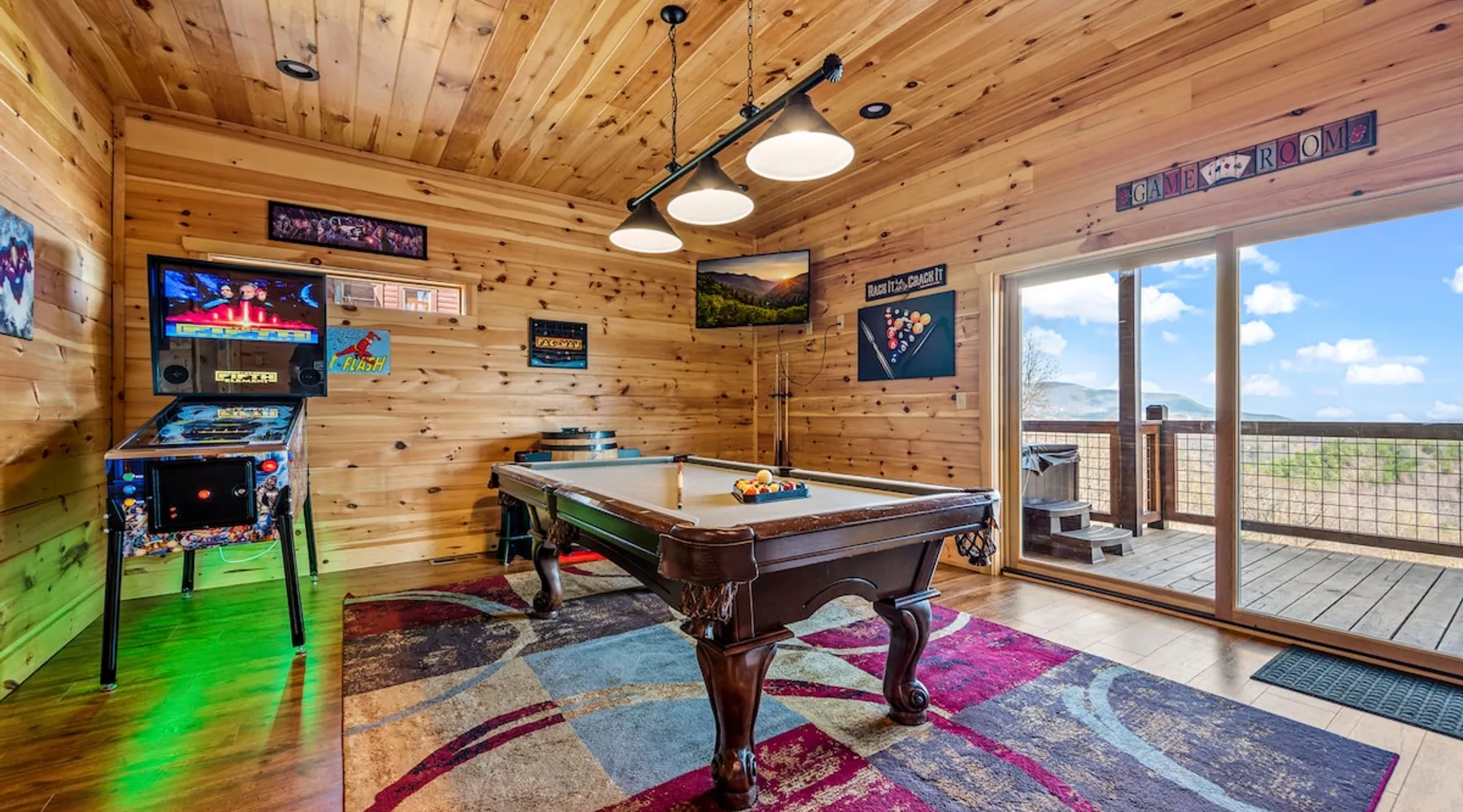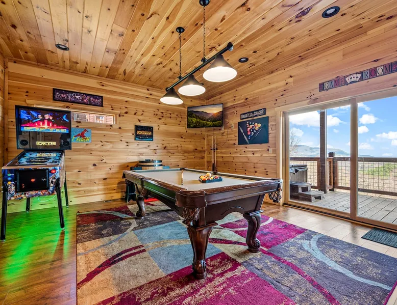 🏊 Private Indoor Heated Pool 💦 Hot Tub ⛰️ Beautiful Mountain View 🐶 Dogs Welcome 🎱 Game Rm 🍽️ Well-Equipped Kitchen 🔥 Cozy Fireplace 🛜 High-Speed WiFi 🍼 Pack N' Play Available 🚼 High Chair 💗 Adventure-Reconnection-Relaxation The space ⭐ The Preserve Pool Lodge Highlights⭐ ✓ Heated Pool in the Cabin ✓ We welcome Well-behaved and House trained Dogs (Max 2 with Pet Fee) ✓ Recently installed New Pool Heater (July 2024) ensures delightful swims year-round! ✓ Enjoy breathtaking views from all decks across 4 different levels. ✓ Cozy up with Roku TVs in all bedrooms and main living areas. ✓ Savor the outdoor experience with a charcoal grill (BYO charcoal). ✓ Strategic location just 30 minutes to Pigeon Forge, 35 minutes to Cades Cove, and 20 minutes to Townsend. ⭐Accommodations ⭐ ◆ Main Level ✓ Fully Equipped Kitchen ✓ Dining Area ✓ Family Room with Mountain View ✓ Queen Bedroom with Ensuite (Walk-in Shower) ◆ Downstairs ✓ Indoor, Heated Pool ✓ Hot Tub on the deck ✓ Game Room with Pool Table and Arcade ✓ King Bedroom with Ensuite (Tub) ✓ Laundry and Booth-style seating ◆ Upper Level ✓ King Bedroom with Ensuite (Walk-in Shower) ✓ Additional Family Room with Sleeper Sofa ✓ DVD Player and Movie Library ✓ Half Bathroom ✓ Deck Access to enjoy the view ◆ Loft Level ✓ Bunk Room with Two Double Beds ◆ Family Conveniences ✓ Pack N' Play Style Portable Crib ✓ Restaurant Style Wooden Highchair ✓ Children's Dinnerware ⭐ Important Information ⭐ ✓ Easy paved road access; winter travelers may require 4WD. ✓ Pool access 24/7, year-round; note potential service visits during stay. ✓ Security camera at the front door (video only, no audio). ⭐I strive to ensure your stay is seamless from booking to departure. Always feel free to click "Contact Host" for any inquiries or needs. We look forward to hosting you at The Preserve Pool Lodge for adventures, relaxation, and unforgettable moments! Guest access You will have access to all areas of the cabin except the locked owner's closets and utility closets. Other things to note ◆ This property requires a $500 security deposit. Your payment method will be collected through Hospitable after booking. ◆2 Dogs Maximum allowed with pet fee. Dogs should be up to date of vaccinations and flea and tick prevetion. ◆ Your booking will not include access to the resort amenities such as the resort pool. You will have your very own pool to enjoy at the cabin! ◆The pool service may need to come to the cabin to service the pool during your stay. ◆The roads to the cabin are paved and well maintained and easy to maneuver in the summer with all vehicles. During winter months, 4 WD is highly recommended. Please review the winter information provided after booking. ◆ The cabin gets its water from a community well. If there is a power outage, this can affect the water pumps that supply the water. It is a good idea to bring bottled water in case it is needed. ◆There is one security camera located on the front of the cabin near the front door to capture video of access to the front door and the parking area. The cameras record video only, no audio. ◆ Guests without prior reviews in Airbnb may be required to complete additional identity verification after making a reservation.