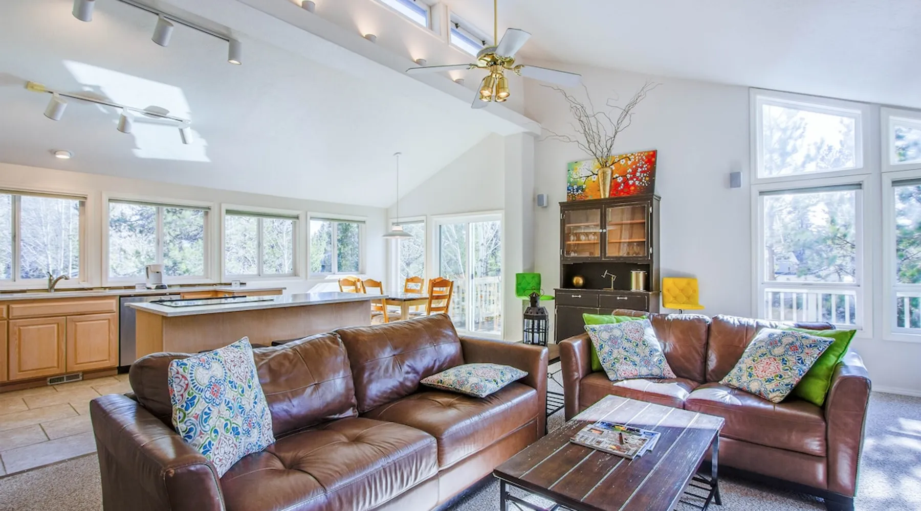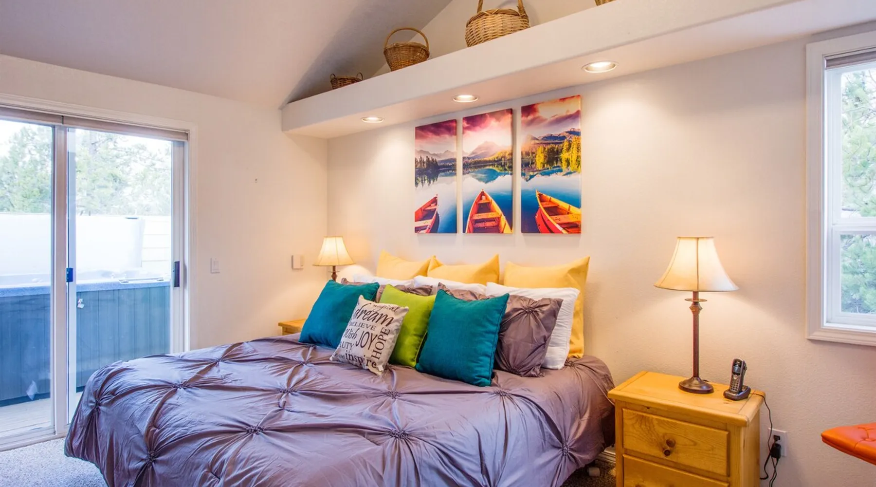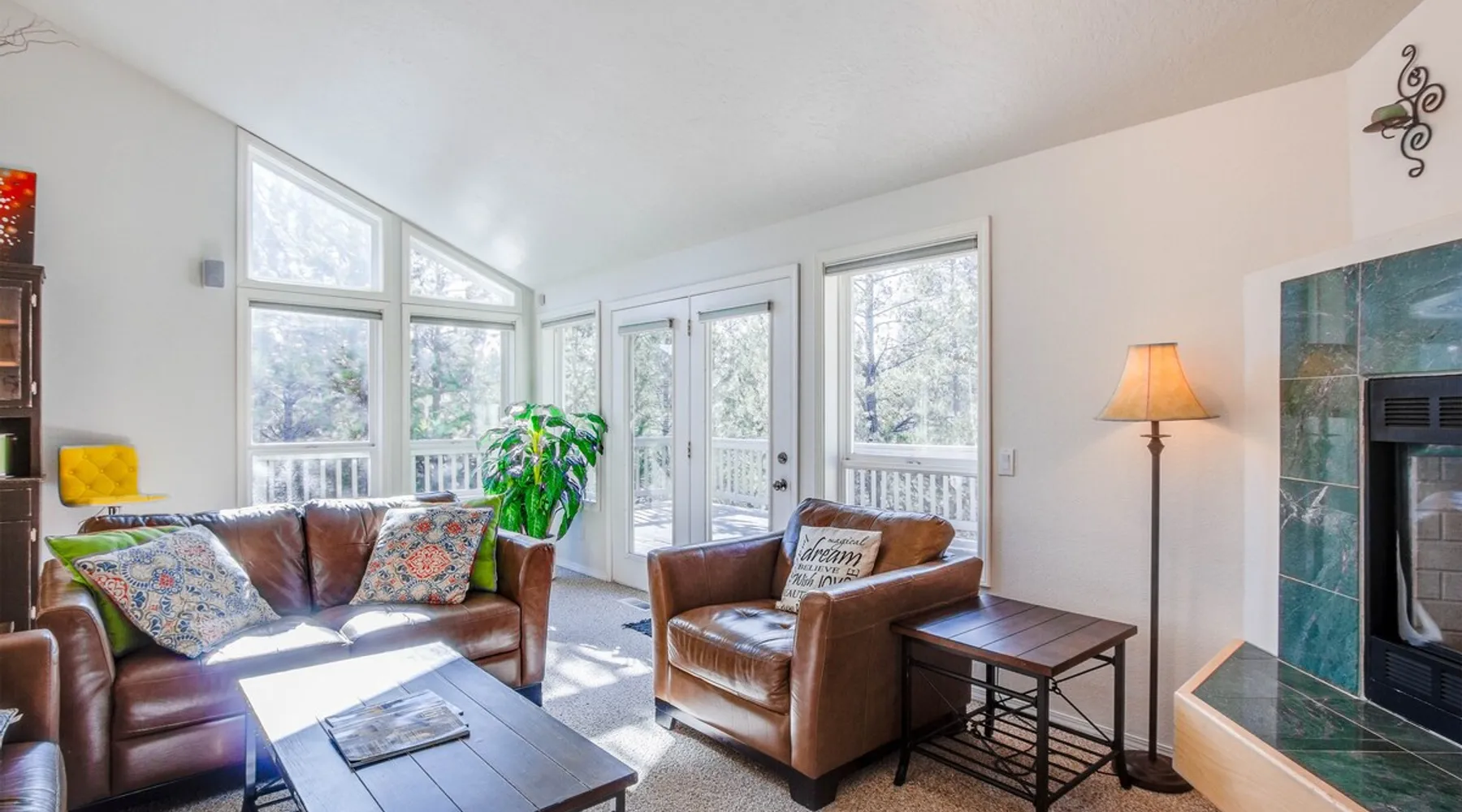 This comfortable Sunriver vacation rental home is perfect for several couples or a small group of up to 6 guests Home access information will be sent 7 - 10 days prior to arrival. All homes are set up for self check-in, no need to stop by the office, just go straight to the home. Sunriver is located at the foothills of the Cascade Mountains in Central Oregon. We enjoy 300 days of sunshine and a climate that is perfect for year round activities. Mt. Bachelor is a quick 30-45 minute drive away, the Deschutes River is in our back yard and the pristine Cascade Lakes are a short drive away. Plus so much more golfing, biking, kayaking, hiking, white water rafting, skiing, rock climbing and more. The resort community is compact at 4 miles long (north to south) and 2 miles wide (east-west). It's easy to get around on over 33 + miles of paved pathways. Welcome to Shag Bark 6! - 3 Bedrooms, 2 Bathrooms, Sleeps 6 - Private Hot Tub - Air Conditioning, Gas Fireplace - Ping Pong Table, Bikes This comfortable Sunriver vacation rental home is perfect for several couples or a small group of up to 6 guests; a reverse living layout provides for good separation with the living, dining, kitchen and primary ensuite bedroom located on the light-filled second story, and the two guest bedrooms, shared bathroom, and laundry facilities nestled downstairs on the ground level. The vaulted ceilings and large wrap-around windows let lots of light pour into the spotless kitchen with corian countertops, stainless appliances, and a glass flat top range. Pull up a barstool to the large island or sit down to dinner at the adjacent wooden dining table with seats for 6. Head out the sliding glass doors leading from the dining and living areas onto the large, upper deck, providing convenient access to the gas BBQ grill, patio seating and the hot tub. The living room is comfortably furnished with two leather sofas where you can cozy up to the gas fireplace and watch the big game on the flat-screen TV. The tastefully furnished primary bedroom features vaulted ceilings, a flat-screen TV, ensuite bathroom with a separate walk-in shower and jetted tub, and private access to the hot tub! Head downstairs to find 2 additional bedrooms - the "Cowboy Room" and the "Fisherman's Paradise" - each with a Queen bed. These bedrooms share the downstairs bathroom. Challenge your group to a ping pong tournament on the table in the garage. With tennis courts and the Woodlands Golf Course and clubhouse located a short trip down the bike path with the bikes provided at this home, and the fun at Fort Rock Park, launch for lazy summertime floats down the meandering Deschutes River and the Oregon Observatory and Sunriver Nature Center located within a few miles of 6 Shag Bark Lane, you won't have to travel far for fun! Family Reunion? Great! Book this home along with our 9 Shag Bark home and have plenty of room for the whole family.