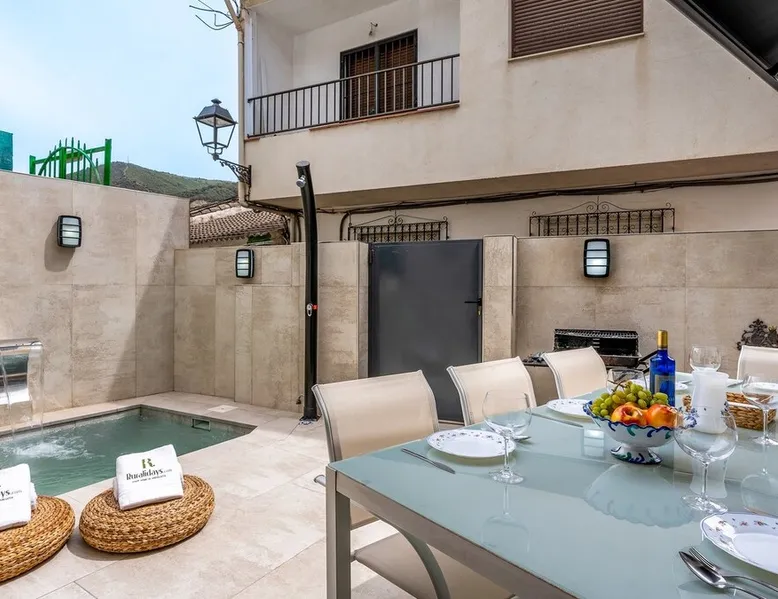 Holiday house for 8 people in Cenes de la Vega, in the province of Granada, in Andalusia. The space This house is divided into two floors. The ground floor is a cave house in which there is a small living room, three bedrooms that are divided into a double bed, two single beds and another bedroom with a single bed. On the upper floor there is a large living room, the fully equipped kitchen, the two remaining bedrooms, one with two single beds and the other with a double bed. In addition, there are two complete bathrooms with shower. In the outdoor area is the pool, where you can take a relaxing bath and sunbathe, a small terrace with furniture and also the barbecue, where you can cook and eat in good company in the open air. The house is very well located, in Cenes de la Vega, with quick access to all kinds of shops and restaurants and very close to the city of Granada, just a few minutes away by car. Registration Details Andalucia - Regional registration number VTAR/GR/00726