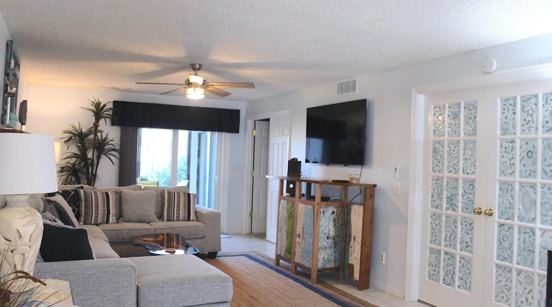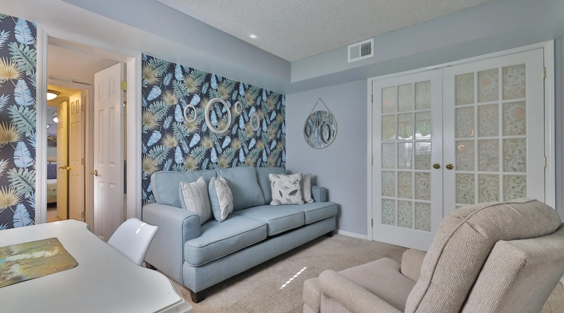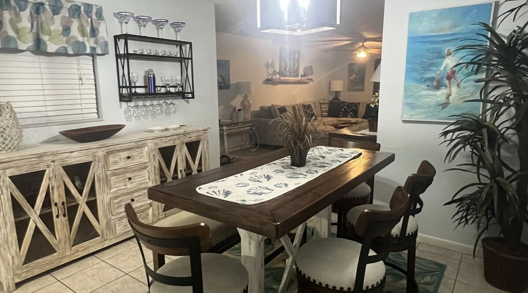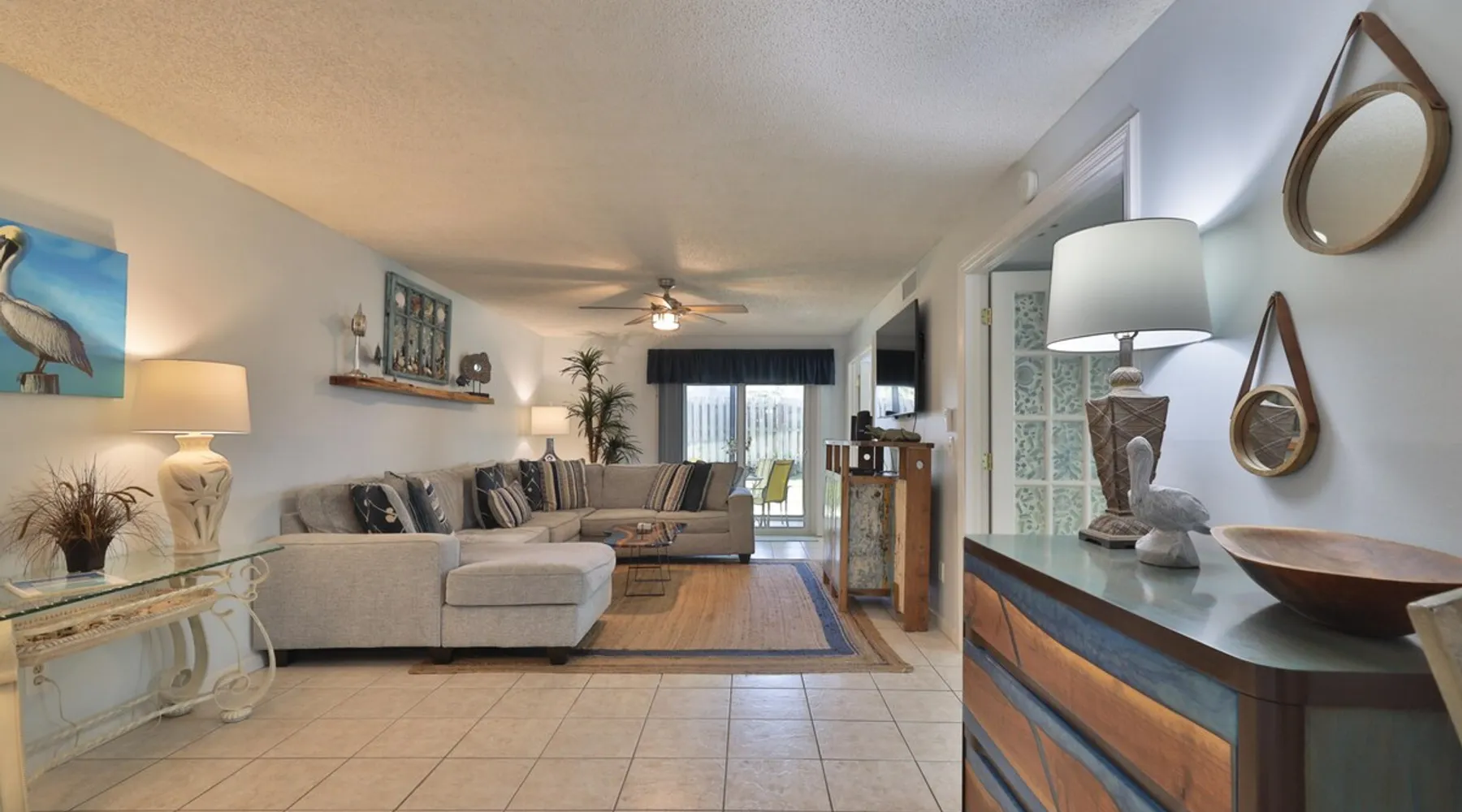 This condo provides comfortable and luxurious living, while a wealth of neighborhood amenities make getting outdoors and staying active on your vacation a breeze The space Escape to tranquility in this delightful 3-bedroom, 2-bath condo, nestled within the scenic 50-acre Sea Woods community. Located on the ground floor, the spacious master suite features a king-size bed and private ensuite bathroom. The second bedroom, conveniently positioned near the dining area, offers a cozy queen-size bed and shares a Jack-and-Jill bathroom with the versatile third room, which includes a pull-out sofa, perfect for an office or accommodating extra guests. The living room’s sectional easily converts into a full-size bed, providing additional sleeping options for family and friends. Enjoy preparing meals in the fully stocked kitchen, with a dining room ready for shared home-cooked feasts. For added convenience, the condo comes equipped with a washer and dryer. Start and end your days relaxing in the screened-in patio, where you can unwind to the soothing sounds of the ocean just beyond. Seawoods is a beautifully maintained community features 3 pools(1 heated), shuffleboard, pickle ball, tennis court, gorgeous nature trails for biking or walking, a fitness center plus deeded access paths to the "no-drive" beach!