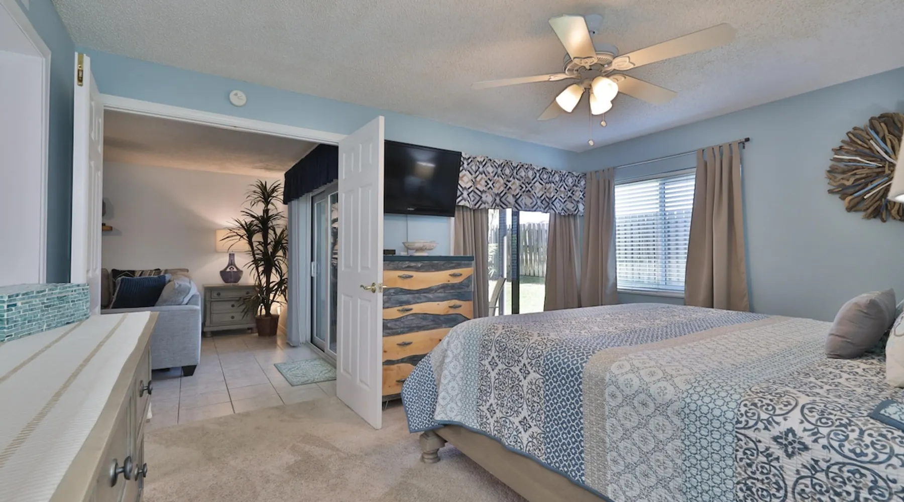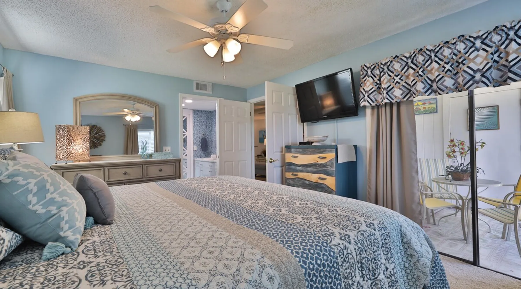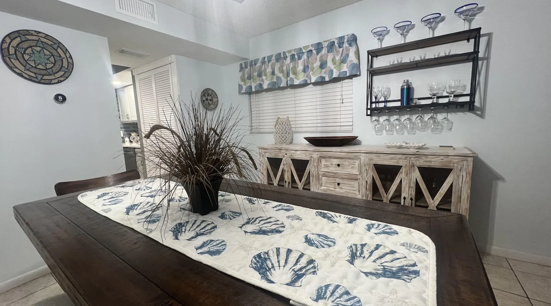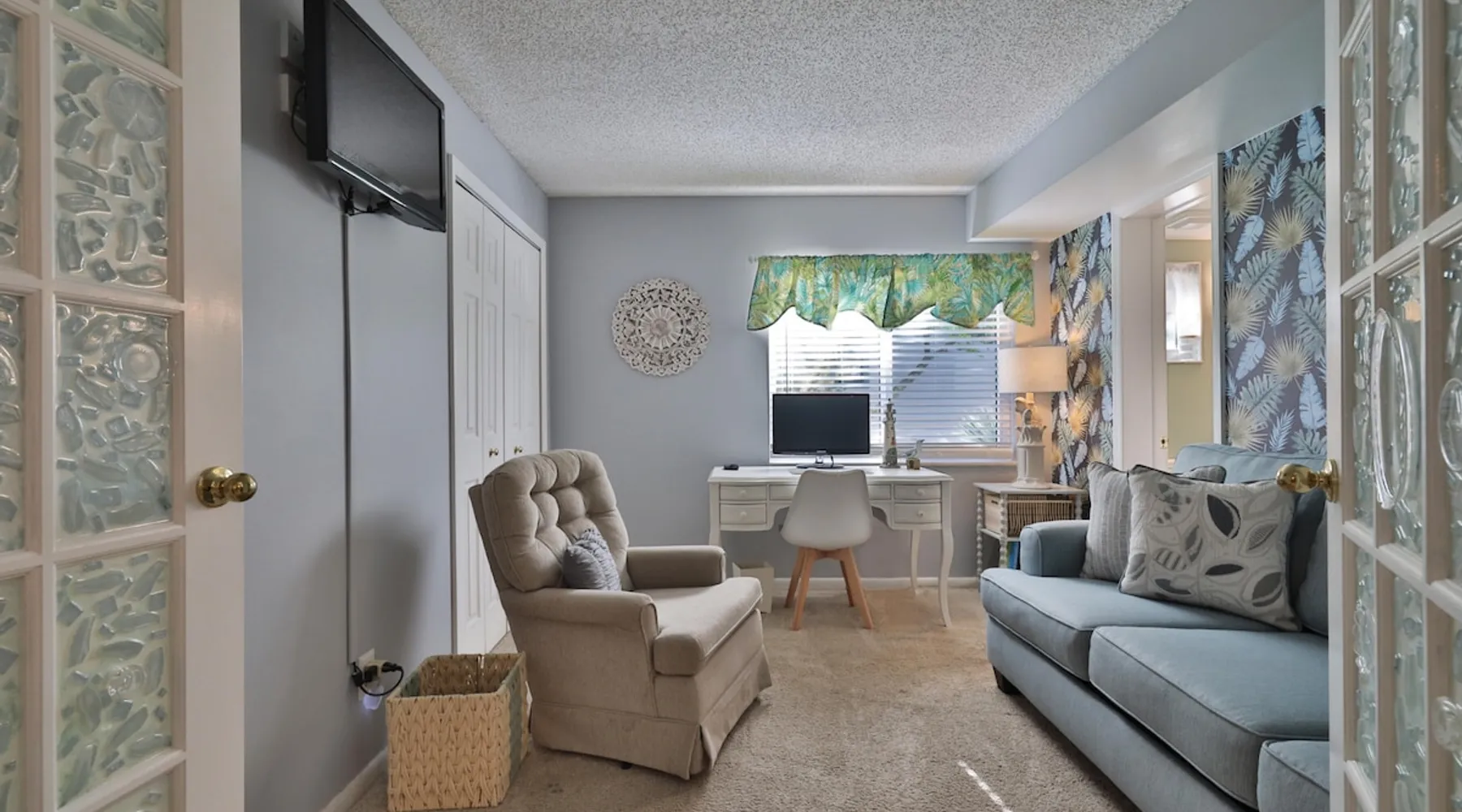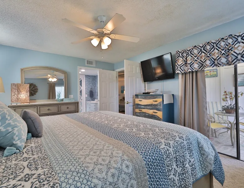 This condo provides comfortable and luxurious living, while a wealth of neighborhood amenities make getting outdoors and staying active on your vacation a breeze The space Escape to tranquility in this delightful 3-bedroom, 2-bath condo, nestled within the scenic 50-acre Sea Woods community. Located on the ground floor, the spacious master suite features a king-size bed and private ensuite bathroom. The second bedroom, conveniently positioned near the dining area, offers a cozy queen-size bed and shares a Jack-and-Jill bathroom with the versatile third room, which includes a pull-out sofa, perfect for an office or accommodating extra guests. The living room’s sectional easily converts into a full-size bed, providing additional sleeping options for family and friends. Enjoy preparing meals in the fully stocked kitchen, with a dining room ready for shared home-cooked feasts. For added convenience, the condo comes equipped with a washer and dryer. Start and end your days relaxing in the screened-in patio, where you can unwind to the soothing sounds of the ocean just beyond. Seawoods is a beautifully maintained community features 3 pools(1 heated), shuffleboard, pickle ball, tennis court, gorgeous nature trails for biking or walking, a fitness center plus deeded access paths to the "no-drive" beach!