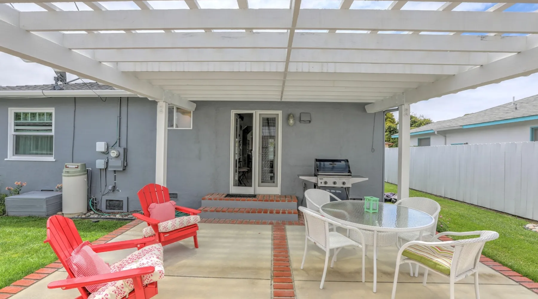 If you’re looking for a perfect beach retreat, an escape to find some relaxation, peace and quiet, in a great location, look no further, “you are here.” This charming house is located in a highly sought after Shell Beach neighborhood, just 3 min to beach. The space Beyond the white picket fence, your vacation begins in this quiet Shell Beach neighborhood. The eclectic beach vibe starts when you enter the living room where you can enjoy your favorite shows on the large smart TV situated over the mantle, or just relax and read in front of the gas burning fire place. The house is full of natural light and has wood floors and tile throughout. There are two bedrooms with queen beds and big closets and two large bathrooms with everything you will need to make your stay comfortable. One of the bathrooms serves as the laundry center with a Bosch washer and dryer for your convenience. In the well-appointed gourmet kitchen, you can prepare dinner on the professional Wolf stove and enjoy it in the cozy dining room, or eat outside on the patio in the beautiful and rare large private backyard surrounded by lush greenery and quiet. If you’d prefer, you can use the natural gas grill or then again, why not eat out in one of the many neighborhood restaurants, several within walking distance. The best is yet to come when you take a short walk to the corner and end up by the beautiful sea, overlooking an outstanding coast line and taking in unbelievable evening sunsets. Walking along the ocean front, you can stop and sit one of the many beach benches and just take it all in. It’s a favorite place to gather. When you’re ready to pick up the pace, you will find the area full of wonderful wineries, parks, golf courses, farmers markets and activities designed to make your vacation a great one. It’s a no-brainer to make this your getaway place! Suitability: Couples getaway, single story, off-street parking, steps to the walking path and beach, no pets, no smoking. Occupancy is 2 guests for monthly rental. Owner will consider overnight guests, max house occupancy 4 with visiting overnight guests. Strict City of Pismo Beach ordinance minimum 30+ night rental. Owner requires a refundable security deposit, property damage insurance (one time cost $49), and mid-month housecleaning and laundry service.