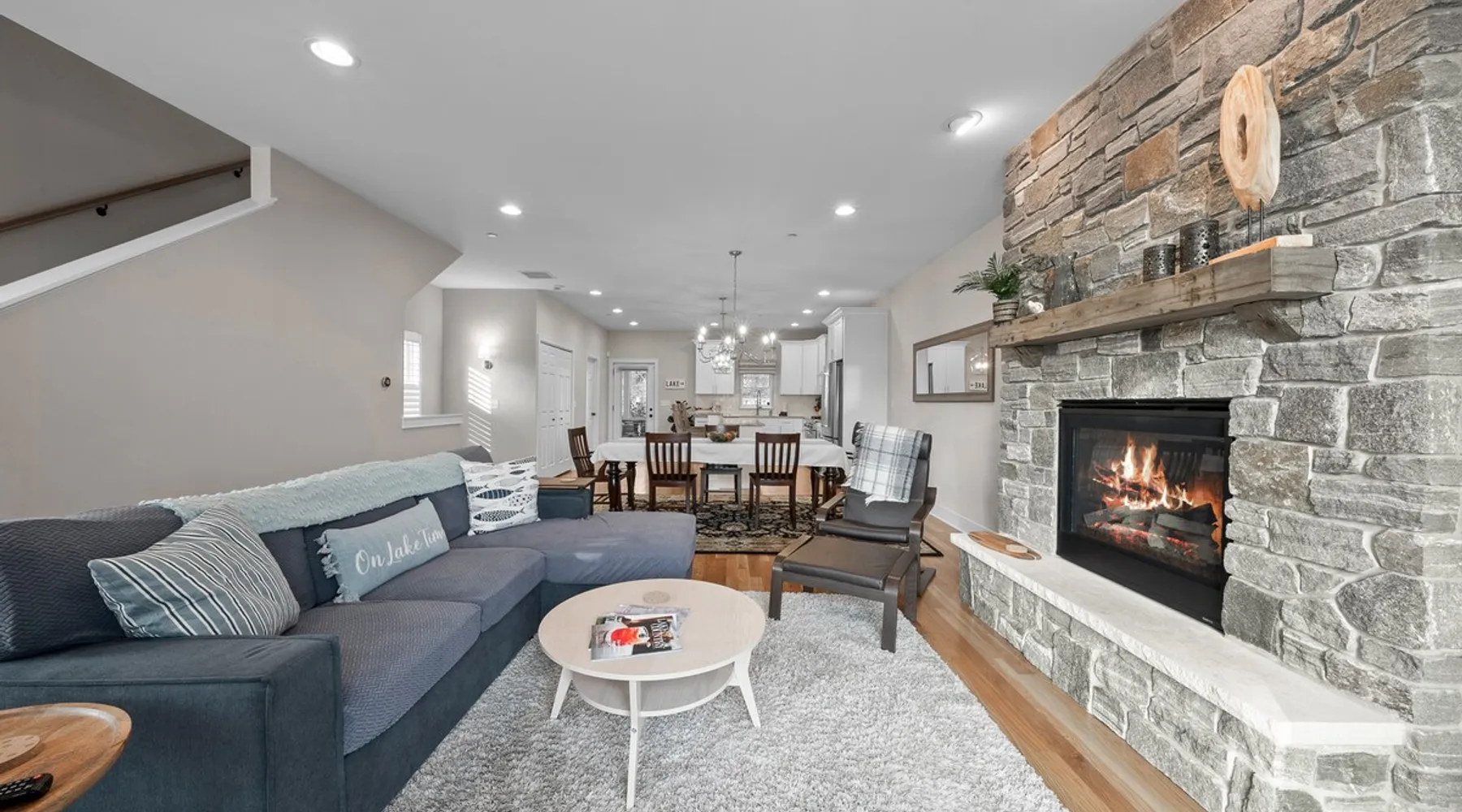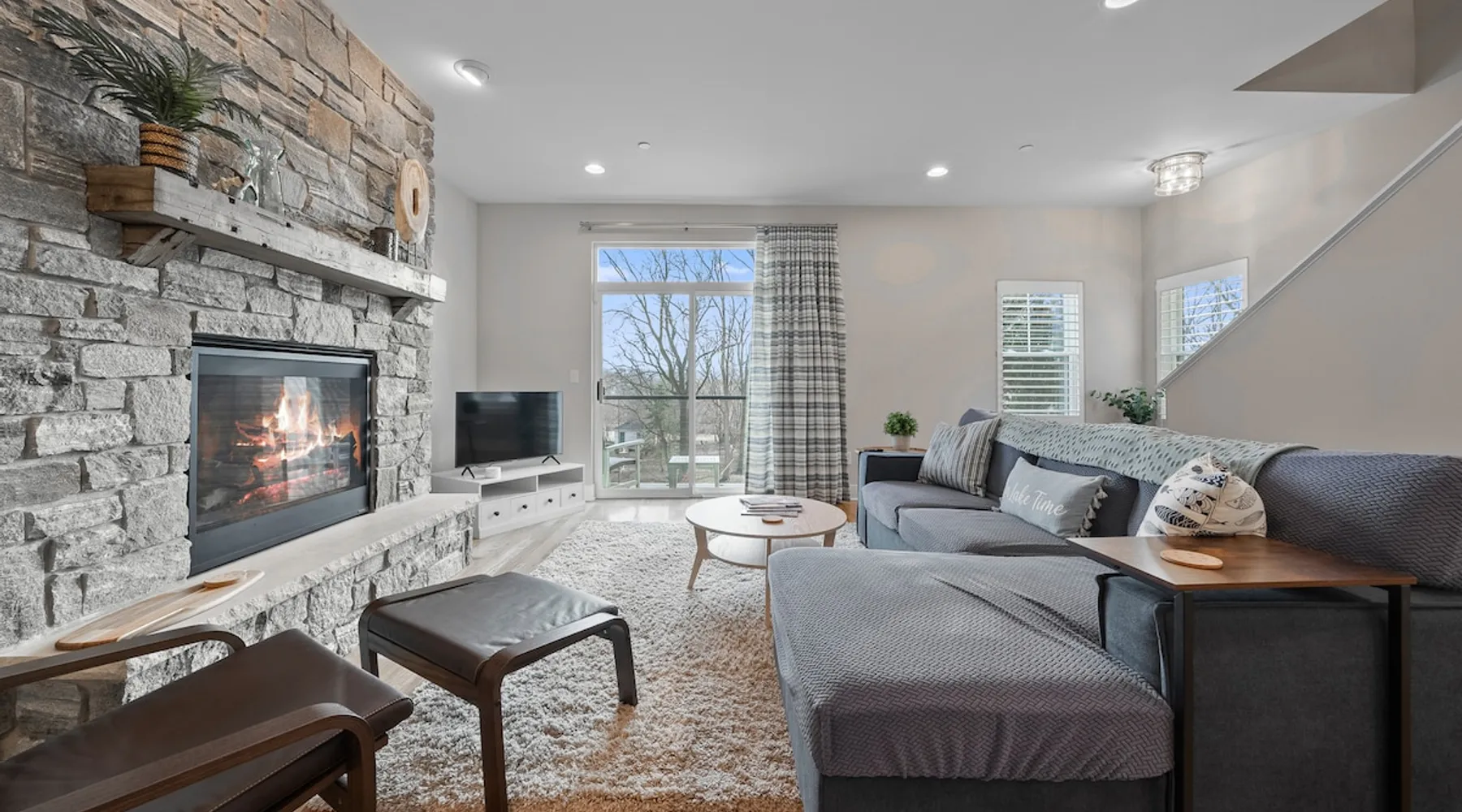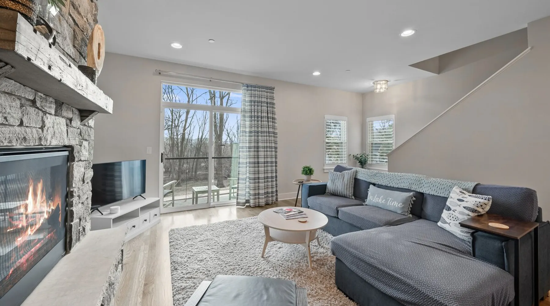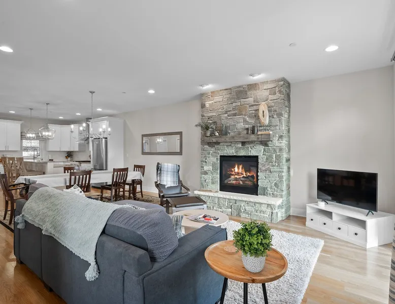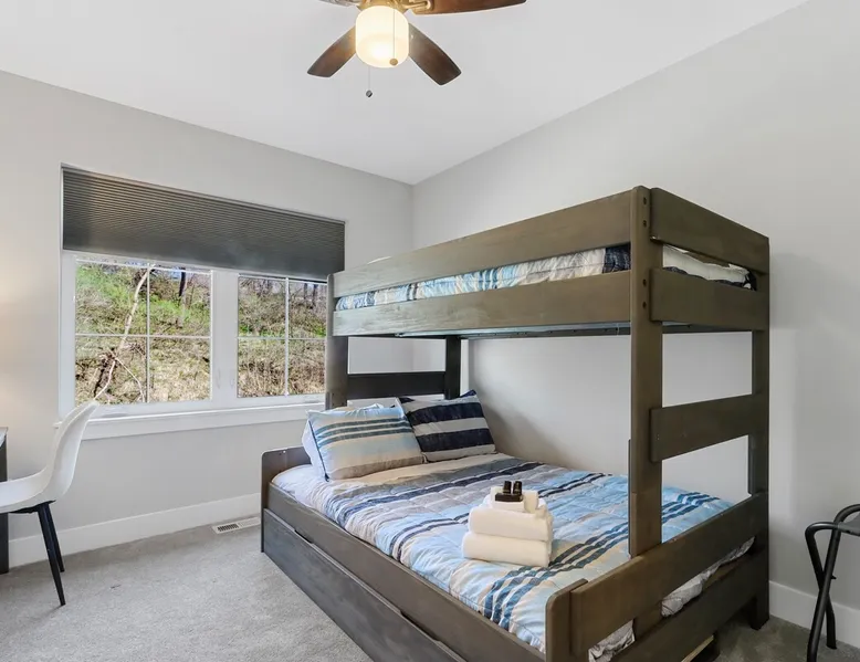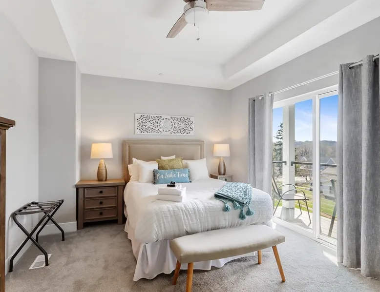 Check out this newly constructed, contemporary townhome just a quick jaunt from the Fontana lakefront on Geneva Lake's west side. Four bedrooms (4th bedroom/rec room with full bath and twin daybed with trundle (two twins) for additional space), three and a half baths make this the perfect spot for families of all sizes looking for an upscale Wisconsin getaway. Enjoy some of the convenient comforts of home with a laundry room and fully-equipped gourmet kitchen. The space A screened-in porch, two private balconies and an open-concept living area abundant with natural light provide the perfect social settings to make lasting memories with friends and family. Professionally decorated that compliments the real stone gas fireplace! As the end unit townhome, Abandon View Escape offers additional privacy and even a lake view. Notable Geneva Lake destinations within walking distance include the Fontana public beach and boat launch, the Abbey resort, Gordy's boat rental and restaurant and Chuck's Lakeshore Inn. Wine Down is steps from Blue Haven Ice Cream, The Coffee Mill, Shell Convenience Store, Little Bar Pizza, and Kim Kasi's. Guests will enjoy being at the "quieter" end of Geneva Lake while still having easy access to all the downtown Lake Geneva attractions just twenty minutes away. Leave your worries behind and soak in the views! Other things to note *Please note: After your reservation is confirmed through Airbnb, we will request your email address and send an electronic guest rental agreement. Signing the agreement is required to finalize your booking and receive check-in instructions. *Bunk Room sleeps 4-1 on top bunk, 2 on bottom, and 1 on bottom pull out trundle *Basement bedroom/rec room is a twin daybed with twin trundle (two twins) *Parking available on-site for three vehicles *Security camera outside facing street/ parking area off garage for guest safety *Please keep in mind, all toiletry and startup supplies are meant to last 2-3 days. If your stay is longer, you may need to purchase more. We want to make sure you are as satisfied as possible with your vacation. If you experience any issues at all during your stay, please call us! We strive for a 5 star stay! Additional Fees: Early Check-In – $75 (based on availability) Late Check-Out – $75 (based on availability) *Lost and Found – If you left something behind, please contact us. While Geneva Lakes Vacations isn’t responsible for items left after a stay, we’ll do our best to locate and return them. Guests cover shipping. Once located, returns may take up to 4 weeks.