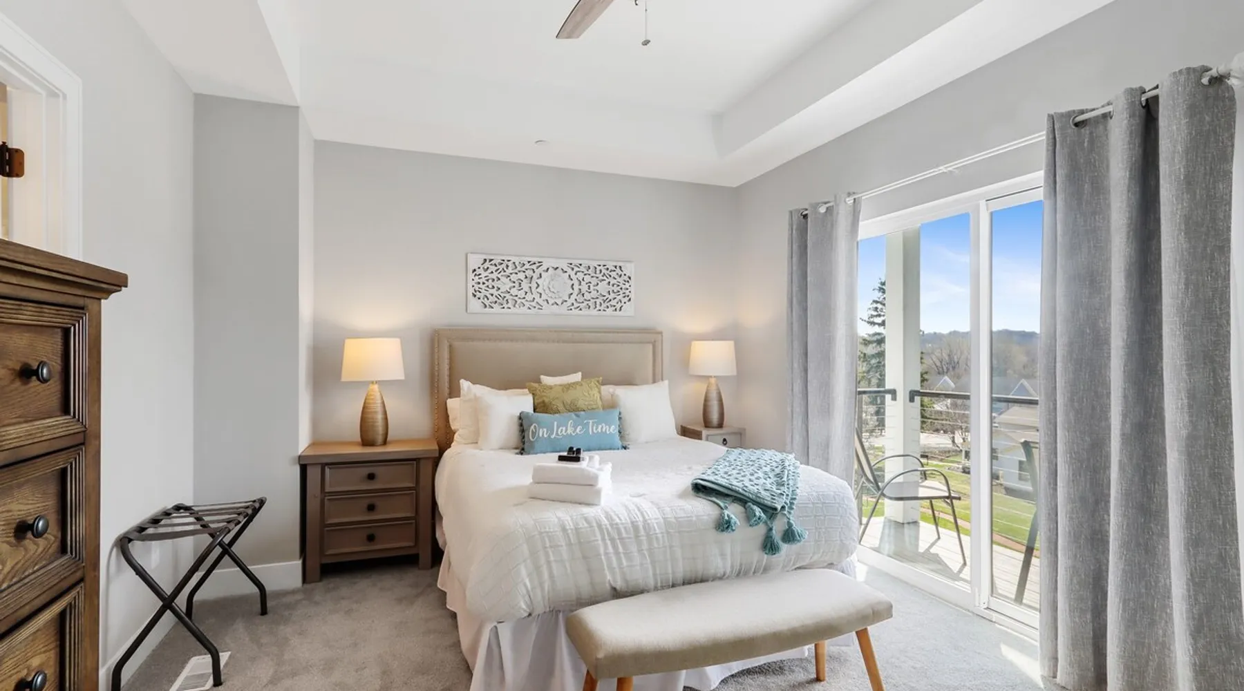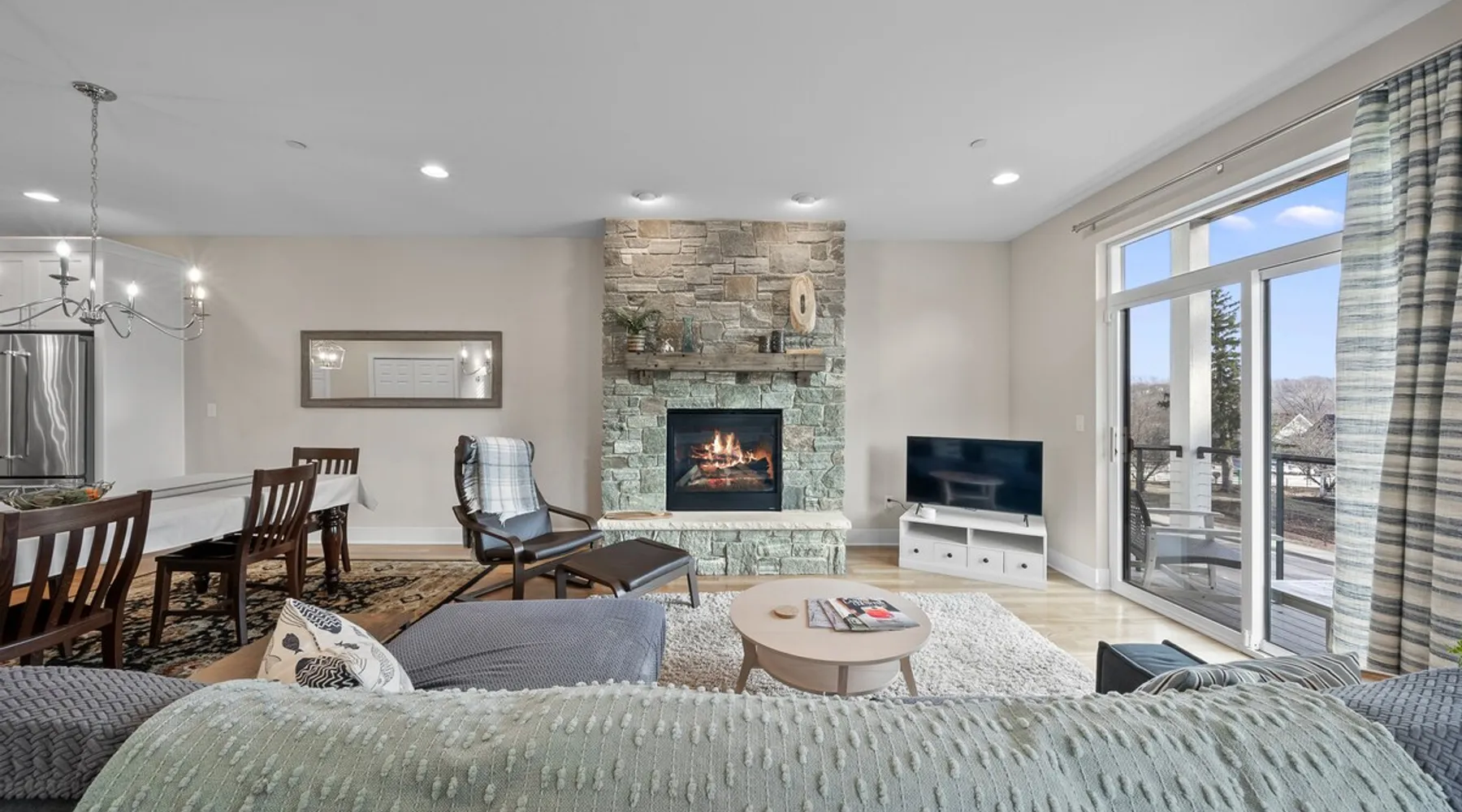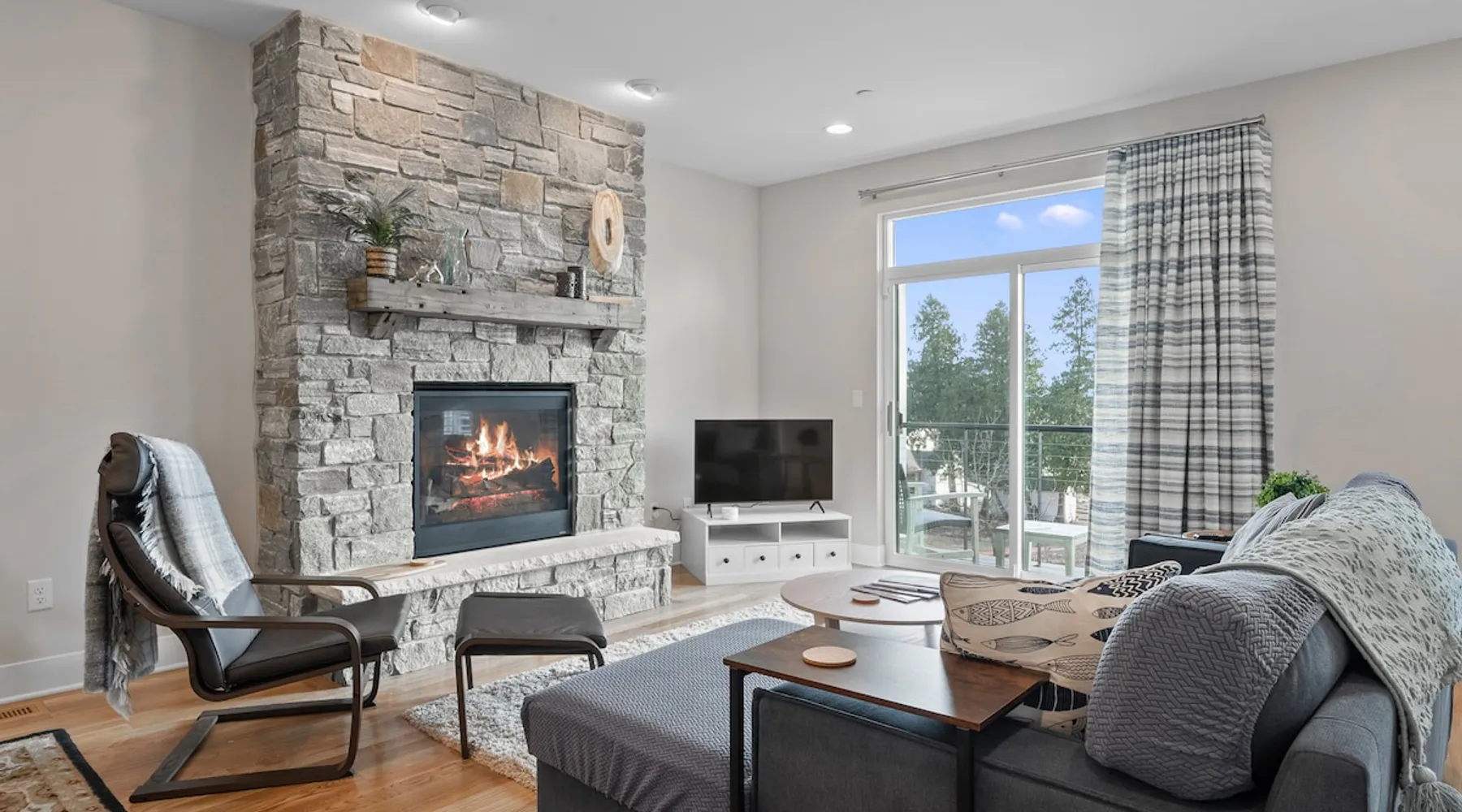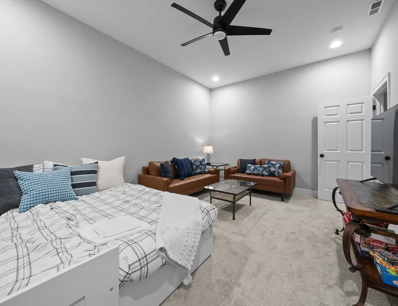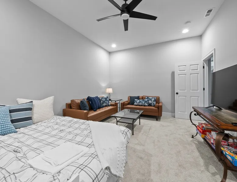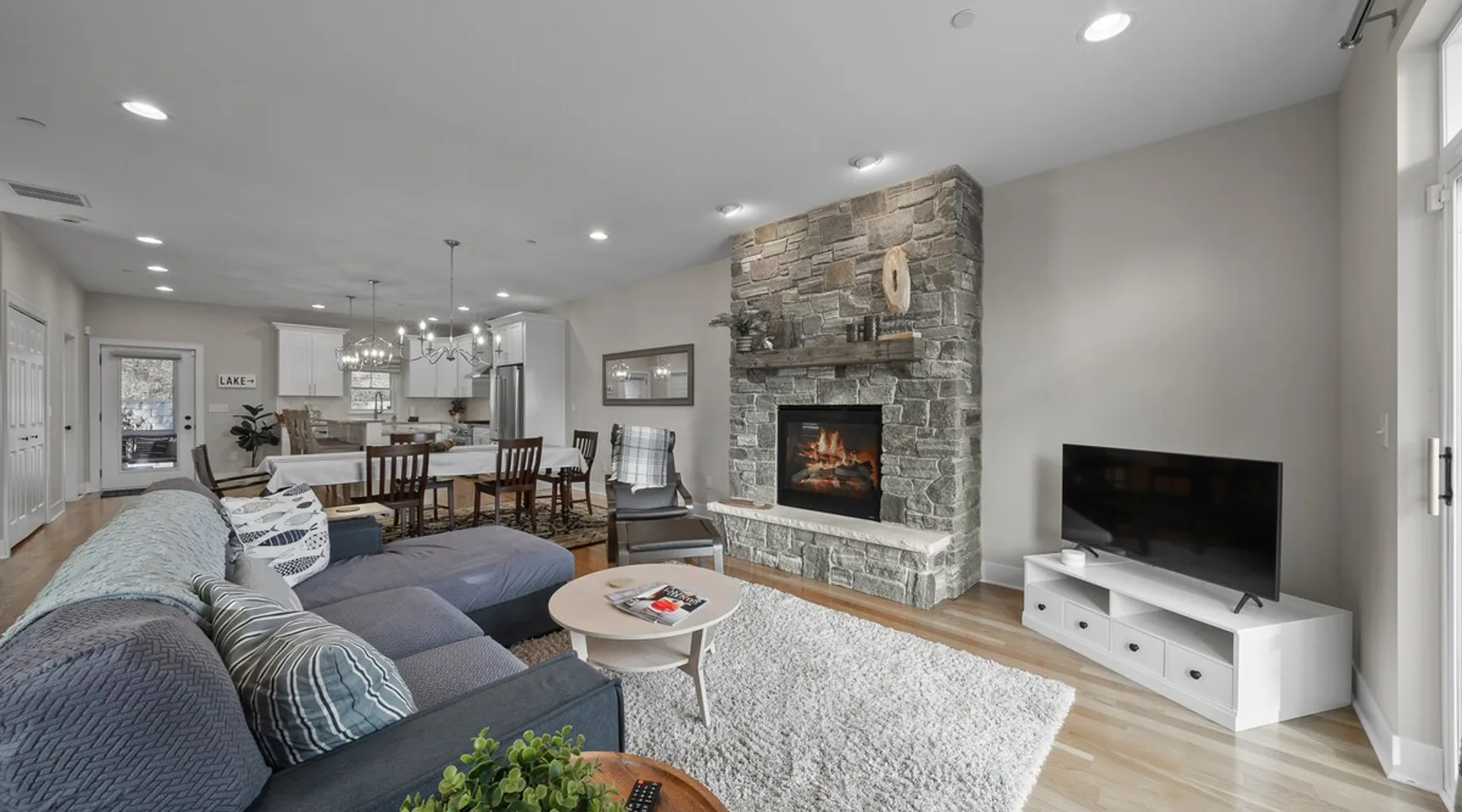 Check out this newly constructed, contemporary townhome just a quick jaunt from the Fontana lakefront on Geneva Lake's west side. Four bedrooms (4th bedroom/rec room with full bath and twin daybed with trundle (two twins) for additional space), three and a half baths make this the perfect spot for families of all sizes looking for an upscale Wisconsin getaway. Enjoy some of the convenient comforts of home with a laundry room and fully-equipped gourmet kitchen. The space A screened-in porch, two private balconies and an open-concept living area abundant with natural light provide the perfect social settings to make lasting memories with friends and family. Professionally decorated that compliments the real stone gas fireplace! As the end unit townhome, Abandon View Escape offers additional privacy and even a lake view. Notable Geneva Lake destinations within walking distance include the Fontana public beach and boat launch, the Abbey resort, Gordy's boat rental and restaurant and Chuck's Lakeshore Inn. Wine Down is steps from Blue Haven Ice Cream, The Coffee Mill, Shell Convenience Store, Little Bar Pizza, and Kim Kasi's. Guests will enjoy being at the "quieter" end of Geneva Lake while still having easy access to all the downtown Lake Geneva attractions just twenty minutes away. Leave your worries behind and soak in the views! Other things to note *Please note: After your reservation is confirmed through Airbnb, we will request your email address and send an electronic guest rental agreement. Signing the agreement is required to finalize your booking and receive check-in instructions. *Bunk Room sleeps 4-1 on top bunk, 2 on bottom, and 1 on bottom pull out trundle *Basement bedroom/rec room is a twin daybed with twin trundle (two twins) *Parking available on-site for three vehicles *Security camera outside facing street/ parking area off garage for guest safety *Please keep in mind, all toiletry and startup supplies are meant to last 2-3 days. If your stay is longer, you may need to purchase more. We want to make sure you are as satisfied as possible with your vacation. If you experience any issues at all during your stay, please call us! We strive for a 5 star stay! Additional Fees: Early Check-In – $75 (based on availability) Late Check-Out – $75 (based on availability) *Lost and Found – If you left something behind, please contact us. While Geneva Lakes Vacations isn’t responsible for items left after a stay, we’ll do our best to locate and return them. Guests cover shipping. Once located, returns may take up to 4 weeks.