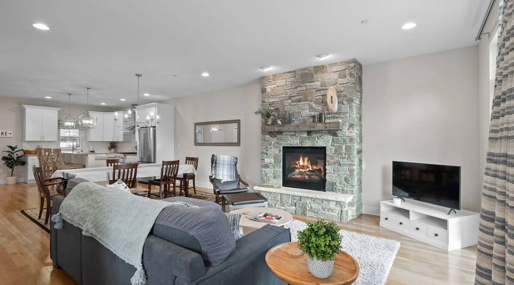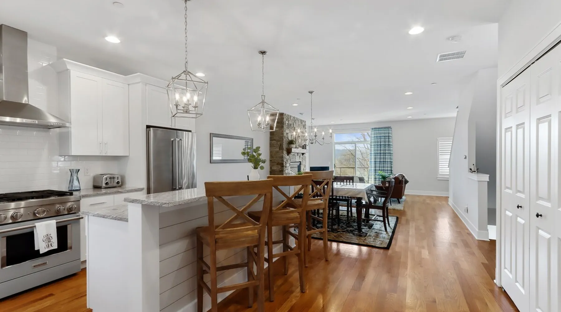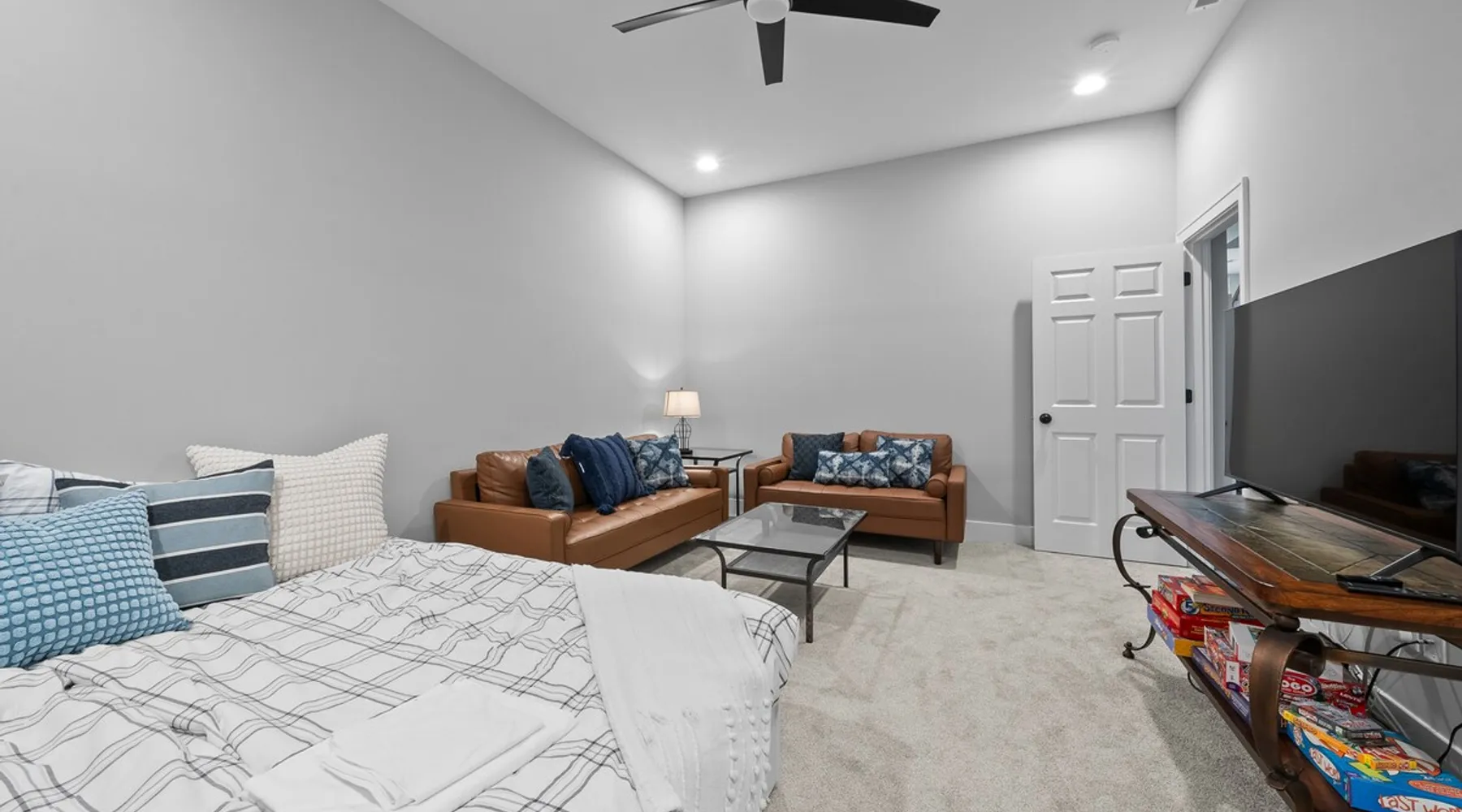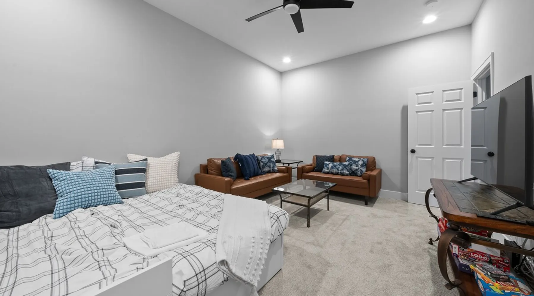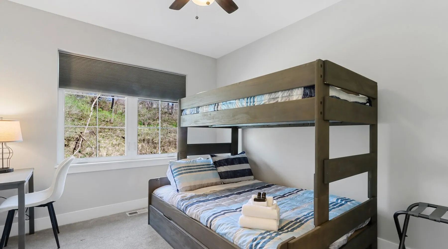 Check out this newly constructed, contemporary townhome just a quick jaunt from the Fontana lakefront on Geneva Lake's west side. Four bedrooms (4th bedroom/rec room with full bath and twin daybed with trundle (two twins) for additional space), three and a half baths make this the perfect spot for families of all sizes looking for an upscale Wisconsin getaway. Enjoy some of the convenient comforts of home with a laundry room and fully-equipped gourmet kitchen. The space A screened-in porch, two private balconies and an open-concept living area abundant with natural light provide the perfect social settings to make lasting memories with friends and family. Professionally decorated that compliments the real stone gas fireplace! As the end unit townhome, Abandon View Escape offers additional privacy and even a lake view. Notable Geneva Lake destinations within walking distance include the Fontana public beach and boat launch, the Abbey resort, Gordy's boat rental and restaurant and Chuck's Lakeshore Inn. Wine Down is steps from Blue Haven Ice Cream, The Coffee Mill, Shell Convenience Store, Little Bar Pizza, and Kim Kasi's. Guests will enjoy being at the "quieter" end of Geneva Lake while still having easy access to all the downtown Lake Geneva attractions just twenty minutes away. Leave your worries behind and soak in the views! Other things to note *Please note: After your reservation is confirmed through Airbnb, we will request your email address and send an electronic guest rental agreement. Signing the agreement is required to finalize your booking and receive check-in instructions. *Bunk Room sleeps 4-1 on top bunk, 2 on bottom, and 1 on bottom pull out trundle *Basement bedroom/rec room is a twin daybed with twin trundle (two twins) *Parking available on-site for three vehicles *Security camera outside facing street/ parking area off garage for guest safety *Please keep in mind, all toiletry and startup supplies are meant to last 2-3 days. If your stay is longer, you may need to purchase more. We want to make sure you are as satisfied as possible with your vacation. If you experience any issues at all during your stay, please call us! We strive for a 5 star stay! Additional Fees: Early Check-In – $75 (based on availability) Late Check-Out – $75 (based on availability) *Lost and Found – If you left something behind, please contact us. While Geneva Lakes Vacations isn’t responsible for items left after a stay, we’ll do our best to locate and return them. Guests cover shipping. Once located, returns may take up to 4 weeks.