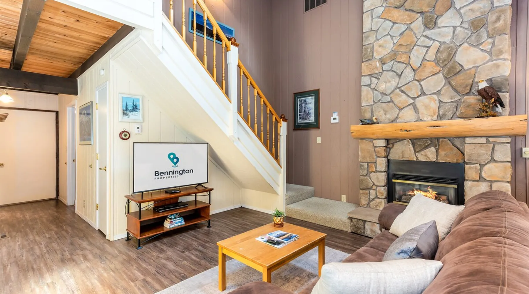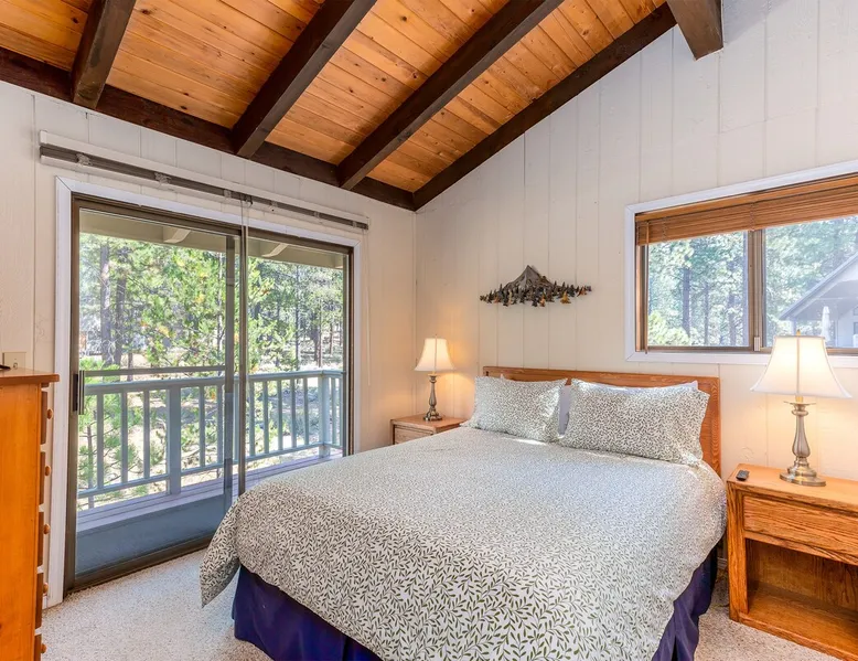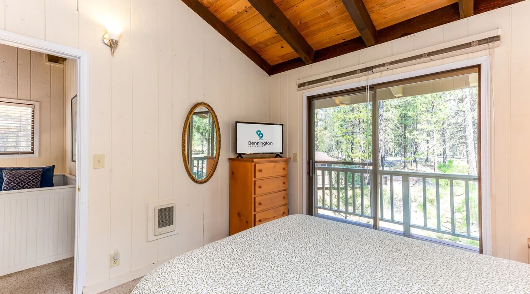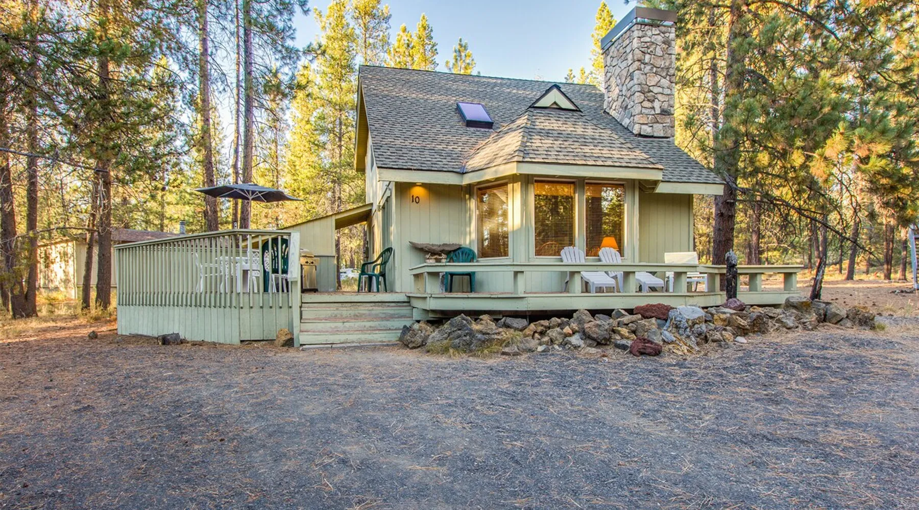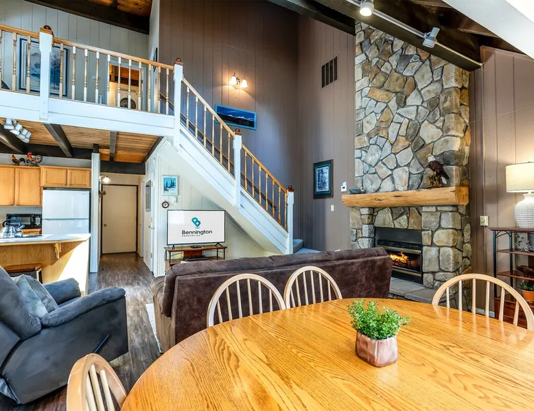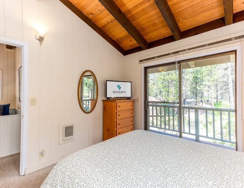 Your cabin in the woods awaits you. Near Village Mall, restaurants and shops. Gas fireplace to keep you cozy during the cold months, large wrap around deck to enjoy during the summer. Air conditioning. New Smart TVs. The space Your cabin in the woods awaits. This great home is nestled among the trees, a short walk from the shops, restaurants, and fun at the Sunriver Village, providing the perfect getaway for couples and young families to enjoy. A cozy gas fireplace in the living room with a new smart TV plus cable and DVD player, vaulted ceilings with exposed wooden beams and skylights, and a large wrap-around deck with a private hot tub and patio seating create a charming atmosphere for your vacation. This home has 2 comfortable queen bedrooms that both have new smart TVs for streaming, and 2 full bathrooms - one of each on the main floor and upstairs. An additional guest will sleep well on the twin daybed found in the loft at the top of the stairs. The kitchen is clean and well-stocked, and the adjacent dining table set against the large bay windows seats 6. A gas BBQ is ready and waiting for you to grill your meals and dine out on the deck. Central A/C will keep you cool and comfortable during a warm summer day. When you are ready to explore Sunriver, head out on one of the 2 adult bikes provided with this vacation rental. The fun at Fort Rock Park, acres of green fairways at the 2 award-winning Sunriver golf courses, horseback riding, and lazy summertime floats along the Deschutes River are all accessible within a few miles of 10 Deer Lane. Family reunion? Great! Book this home along with our 1 and 8 Deer Lane homes for room for the whole family. This home welcomes dogs, 2 max, no other pets are allowed. Fees apply Guest access Home access information will be sent 7 - 10 days prior to arrival. All homes are set up for self check-in, no need to stop by the office, just go straight to the home. Other things to note AGE RESTRICTIONS: Guests must be 23 years or older to rent Bennington homes and the person reserving must occupy the home the whole reservation.